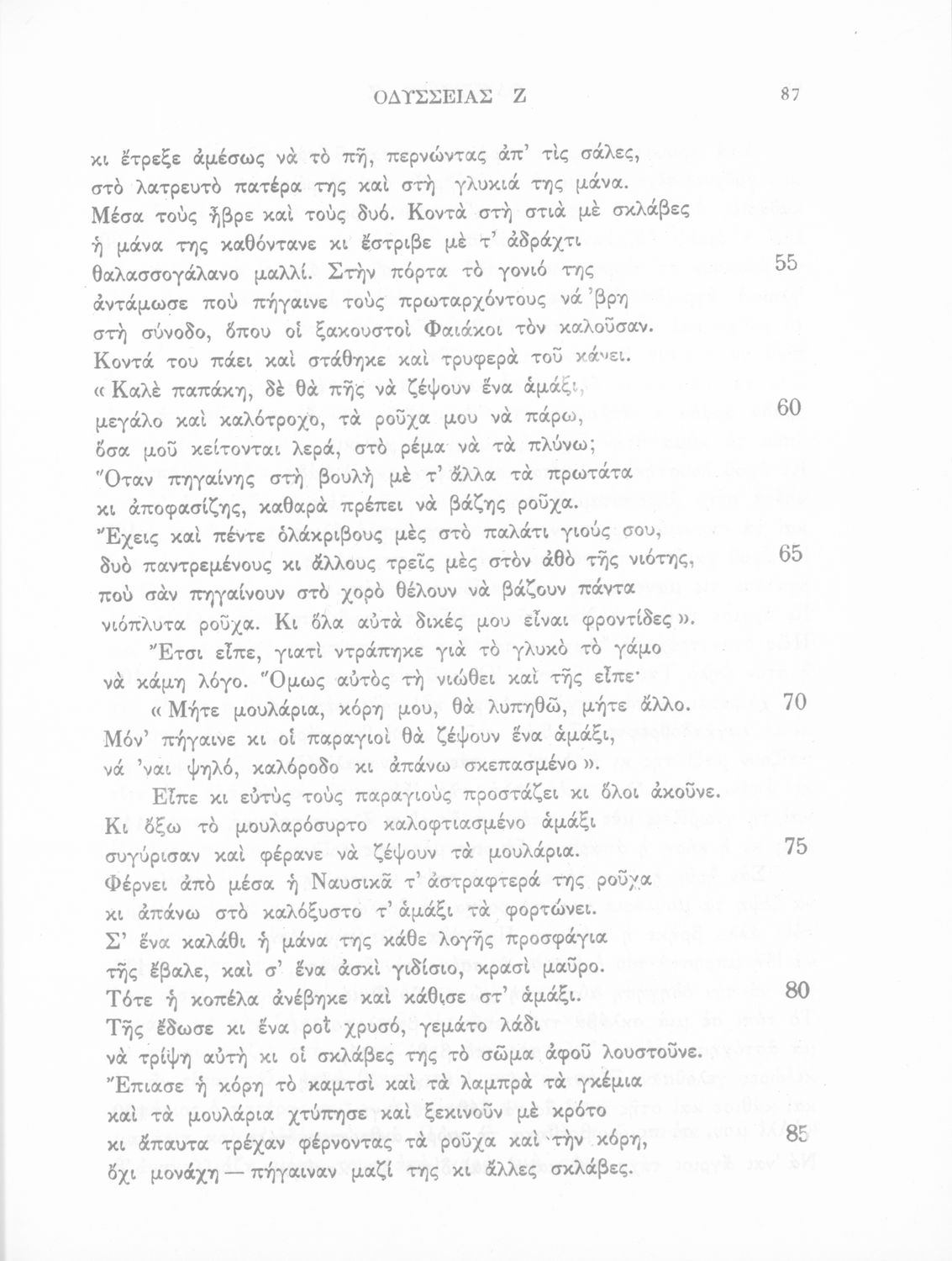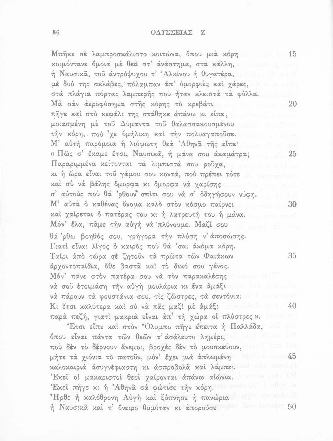 Παιδαγωγικό βοήθημα Αρχαίων Ελληνικών που περιλαμβάνει μετάφραση των ραψωδιών Ν-Ω της Οδύσσειας.