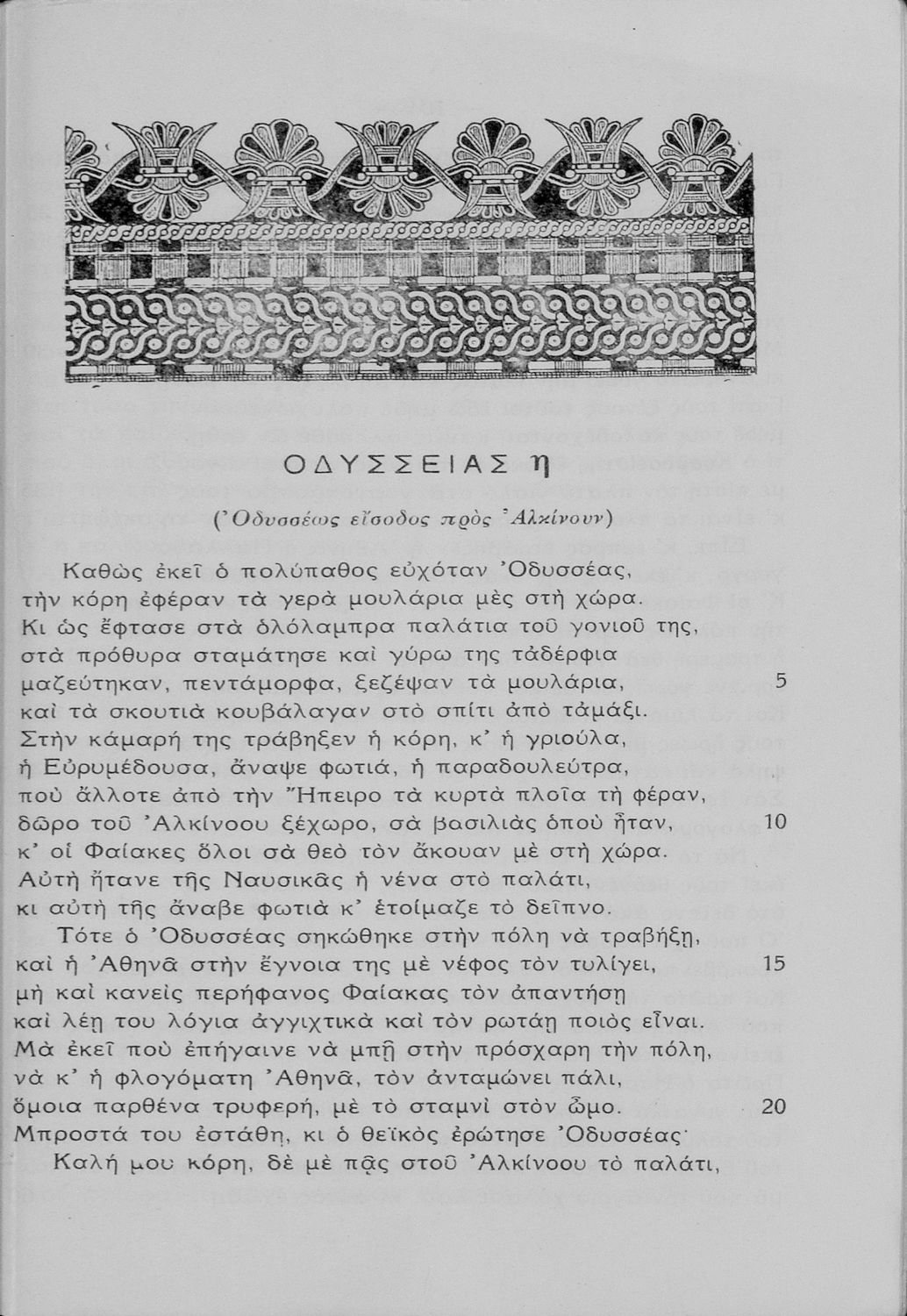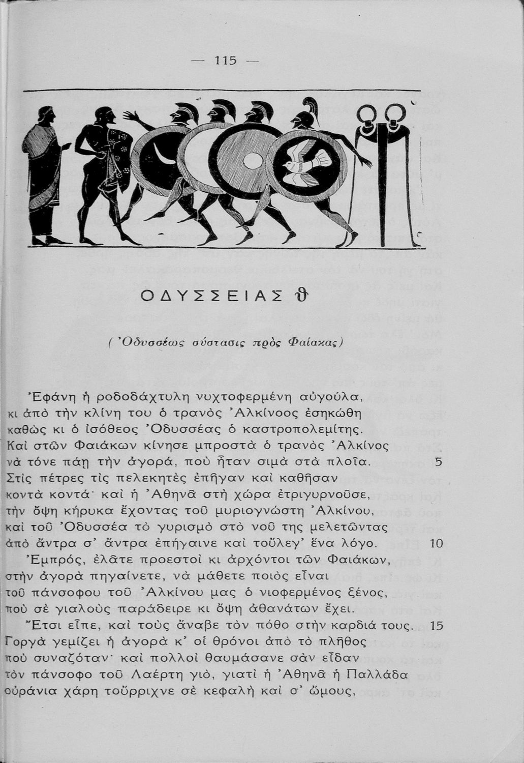Σχολικό εγχειρίδιο Αρχαίων Ελληνικών για τις τάξεις του Γυμνασίου το οποίο περιλαμβάνει τις ραψωδίες Α-Θ της Οδύσσειας και γλωσσικά και ερμηνευτικά σχόλια.