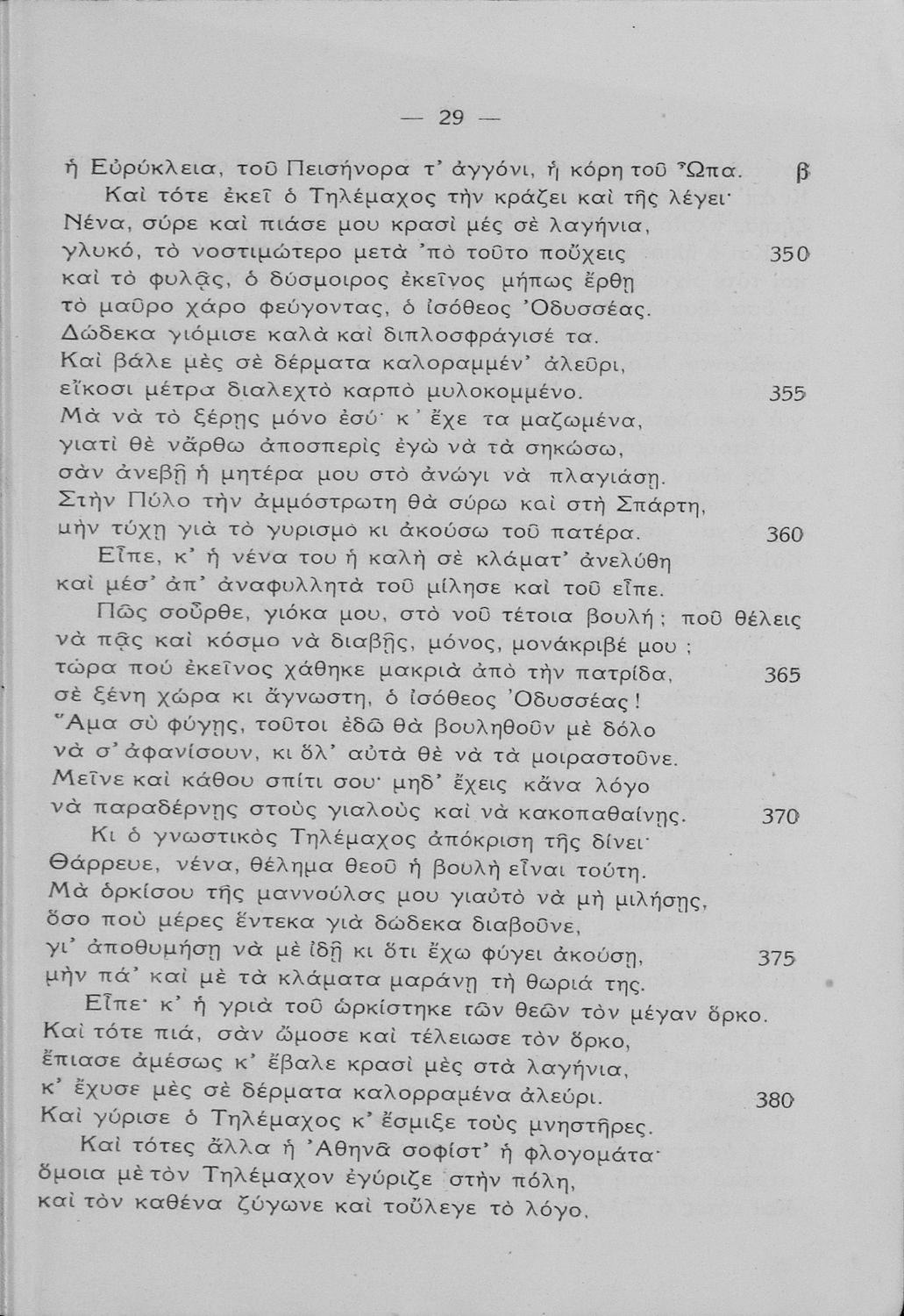 Ομήρου Οδύσσεια Μέρος 1ον (Α-Θ). Δια τας κυριωτέρας Τάξεις του Γυμνασίου και τας αντιστοίχους τάξεις των λοιπών Σχολείων.