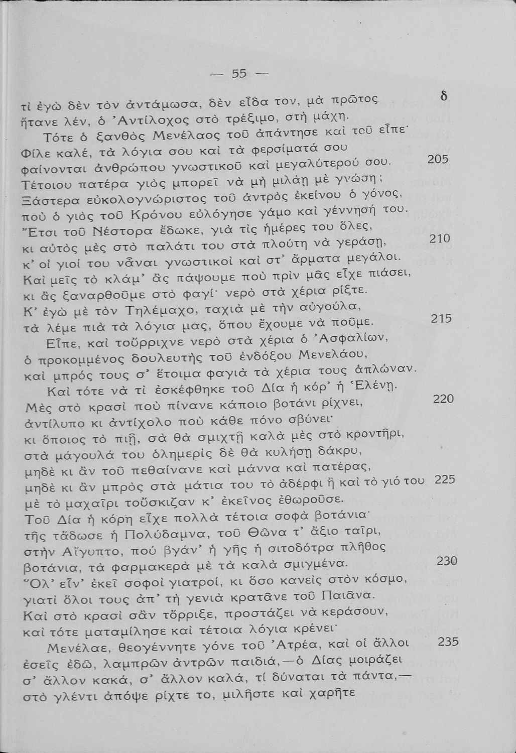 LDR 01407 2200217 4500 035 ## _a01-17265 040 ## _aΙνστιτούτο Εκπαιδευτικής Πολιτικής 041 ## _ael 100 ## _aΌμηρος _aΙ. Οικονομίδης (μετάφραση) 110 ## _a17265 245 0# _aΟμήρου Οδύσσεια Μέρος 1ον (Α-Θ). Δια τας κυριωτέρας Τάξεις του Γυμνασίου και τας αντιστοίχους τάξεις των λοιπών Σχολείων. 250 ## _a2η Έκδοση 260 ## _aΑθήνα _bΙωάννης Ν. Σιδέρης _c1935 300 ## _a142 _bΣκίτσα (ασπρόμαυρα) 520 ## _aΣχολικό εγχειρίδιο του Γυμνασίου για το μάθημα των Αρχαίων Ελληνικών. Περιέχει τις ραψωδίες της Οδύσσειας και ερμηνευτικά, πραγματολογικά σχόλια, καθώς κ και γραμματικές παρατηρήσεις του συγγραφέα. Εγκρίθηκε για μια πενταετία 1932-1937. 521 ## _aΓυμνάσιο 522 ## _aΕλλάδα 546 ## _aΚαθαρεύουσα 563 ## _aΣκληρό Εξώφυλλο 583 ## _a41091/31/7/1933 _c1933 650 #4 _aΑθήνα _aΙθάκη _aΜνηστήρες _aΝόστος _aΟδυσσέας _aΌμηρος _aΠηνελόπη