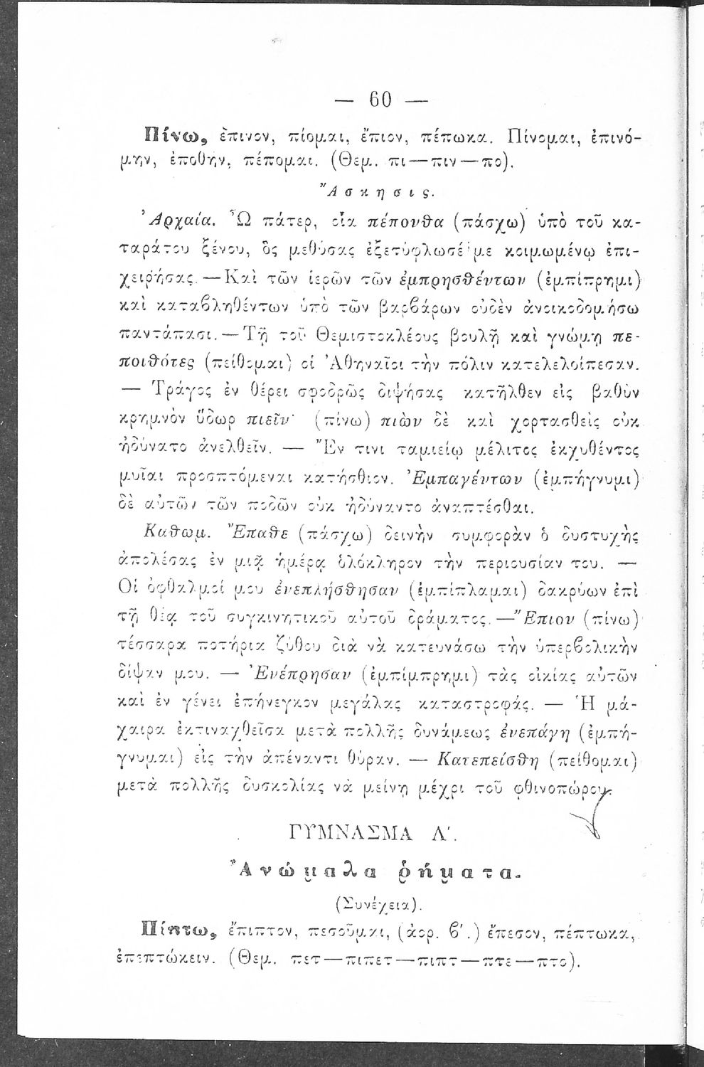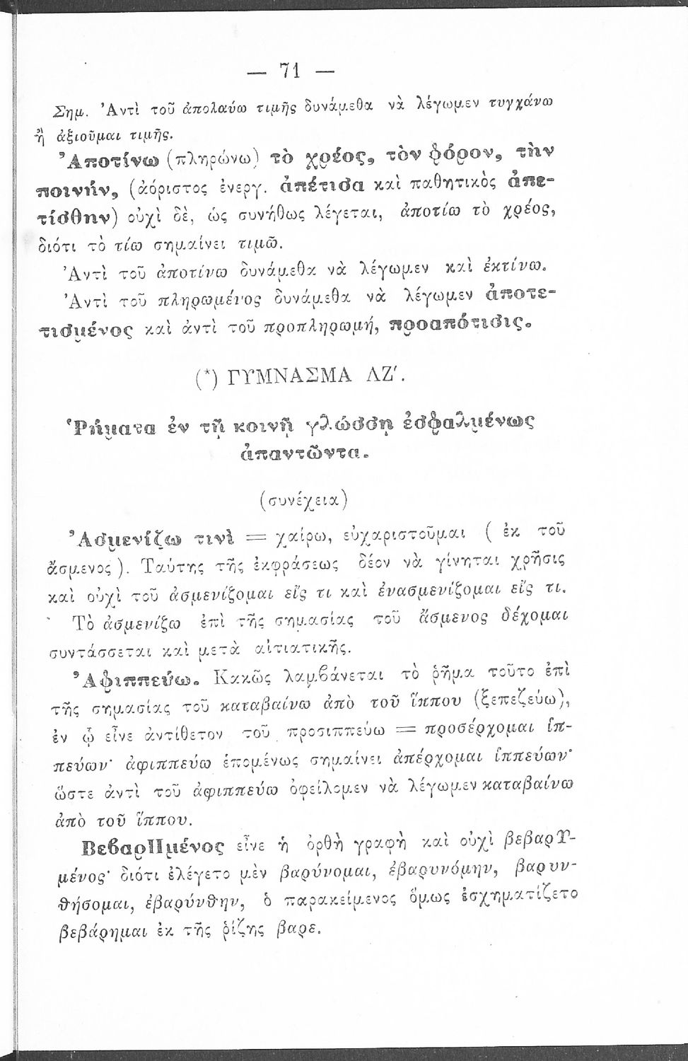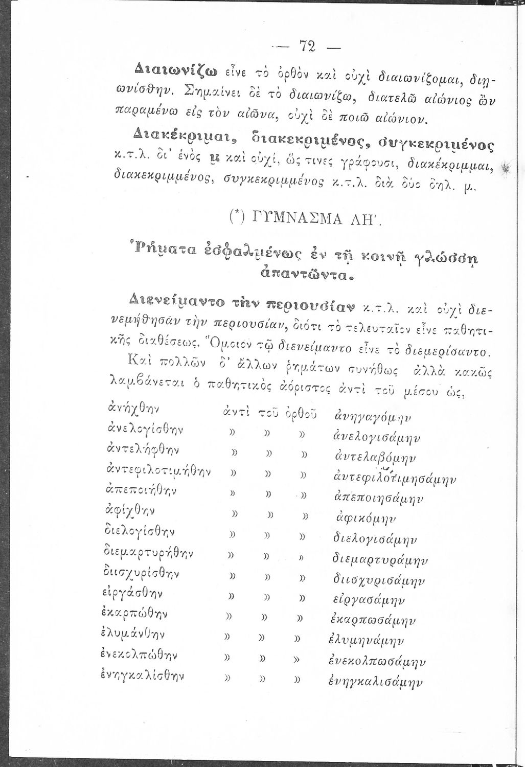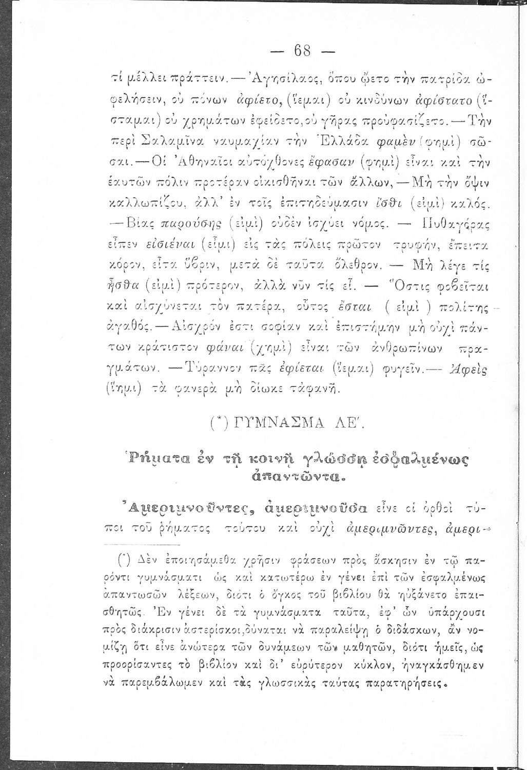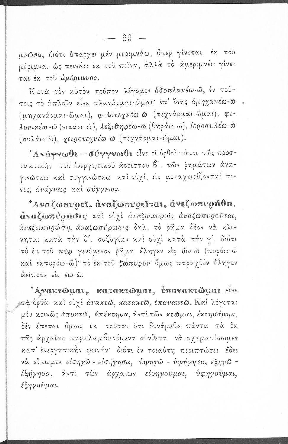 Σχολικό εγχειρίδιο Αρχαίων Ελληνικών Γυμνασίου που περιέχει τους κανόνες γραμματικής και είναι χωρισμένο σε φθογγολογικό, τυπολογικό και ετυμολογικό μέρος. Περιέχει και κατάλογο ανωμάλων ρημάτων.