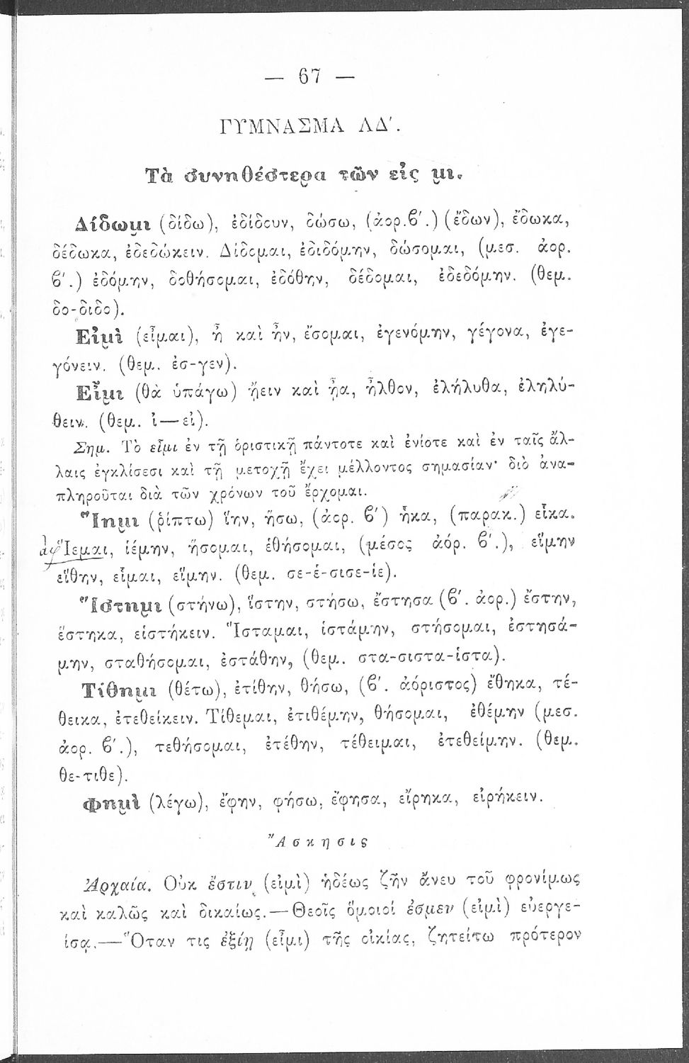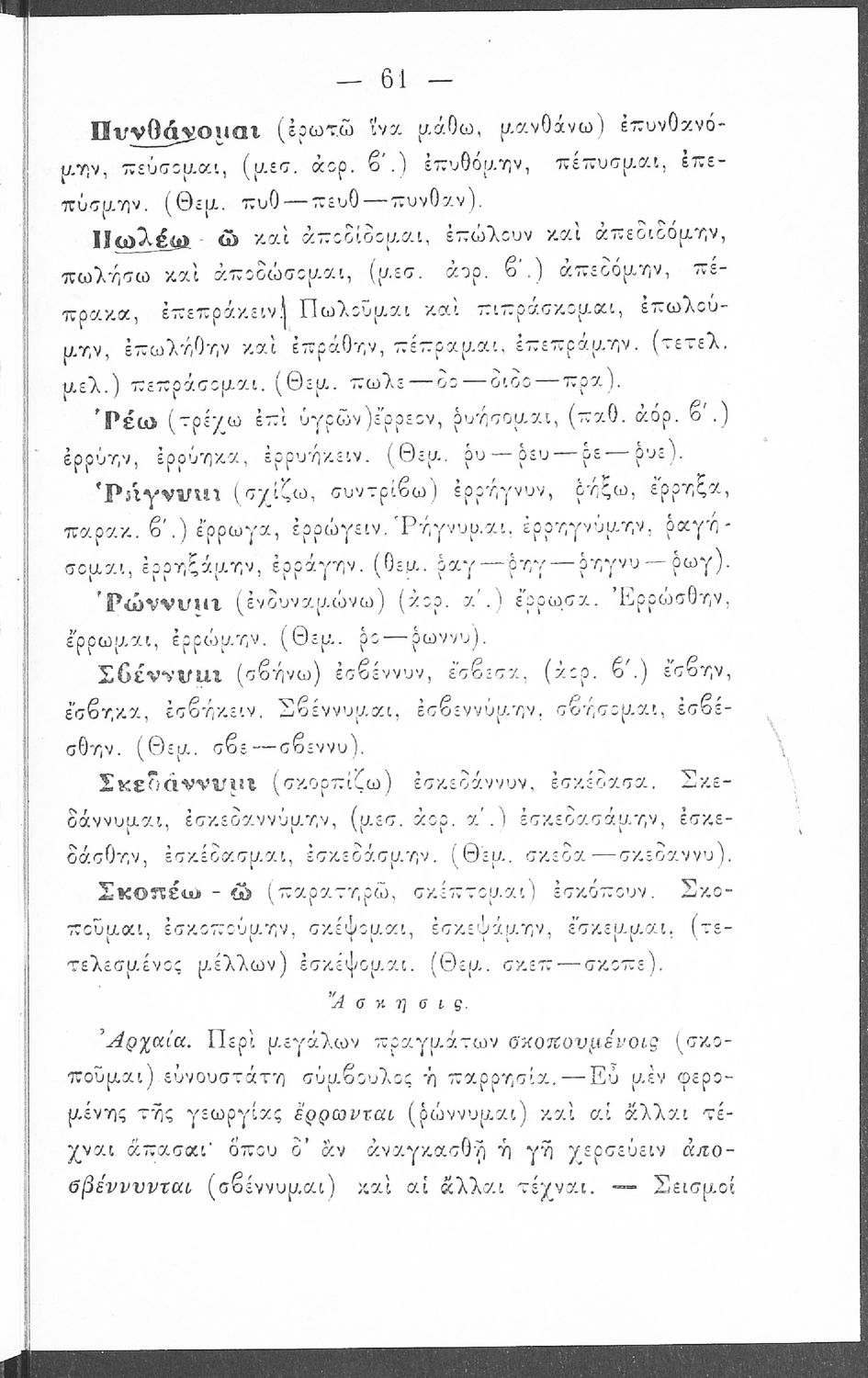 Σχολικό εγχειρίδιο Αρχαίων Ελληνικών που περιέχει τους κανόνες γραμματικής και είναι χωρισμένο σε φθογγολογικό, τυπολογικό και ετυμολογικό μέρος. Περιέχει και κατάλογο ανωμάλων ρημάτων.