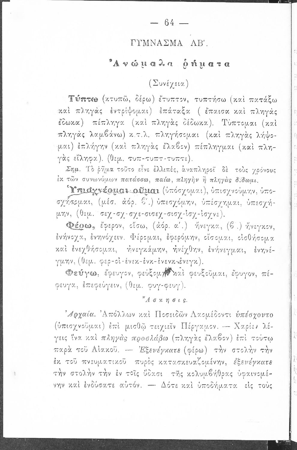 Μέρος δεύτερον των Ορθογραφικών ασκήσεων περιλαμβάνον τα περί ρημάτων παραγωγής και συνθέσεως μέρη της Γραμματικής