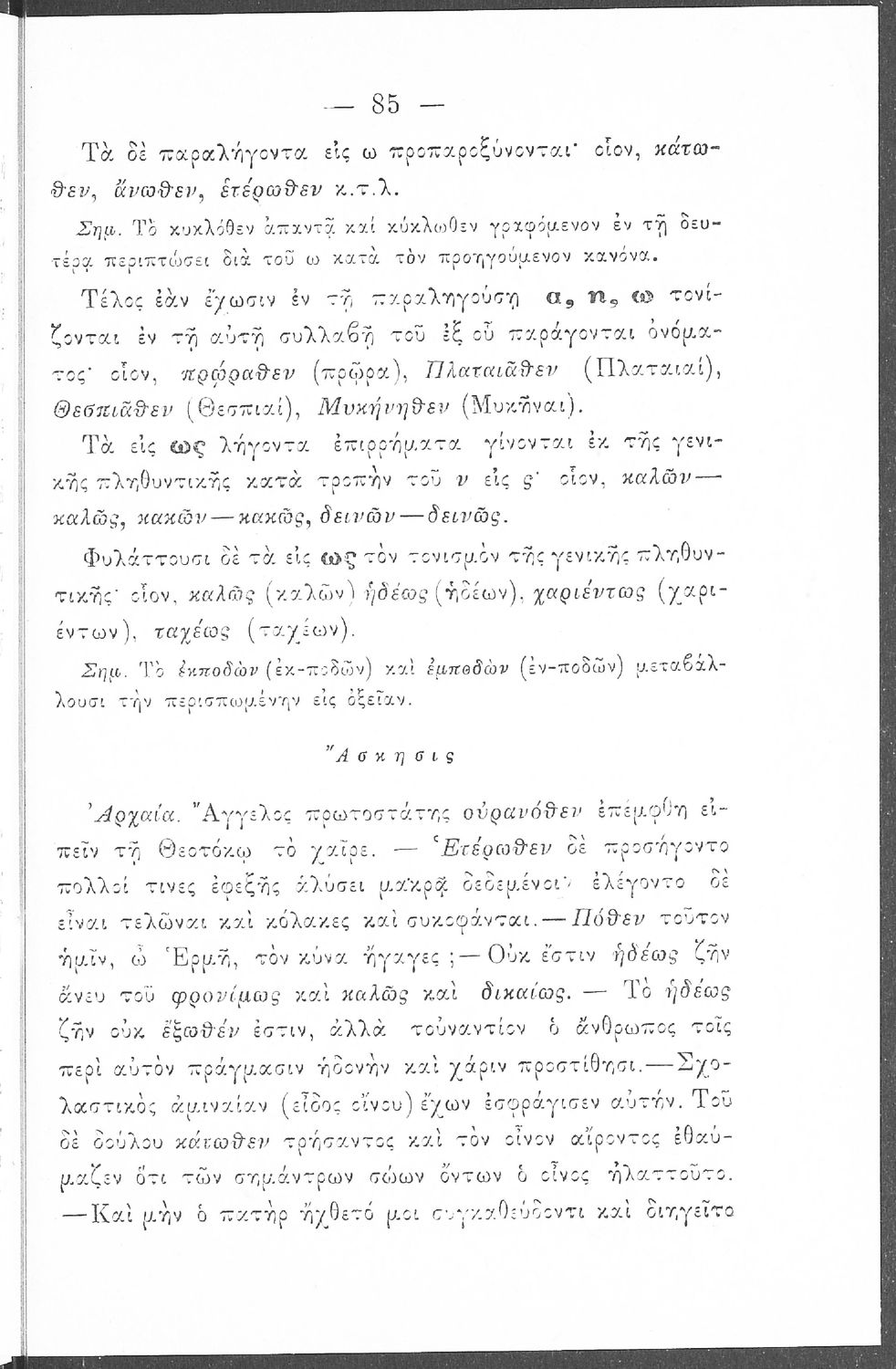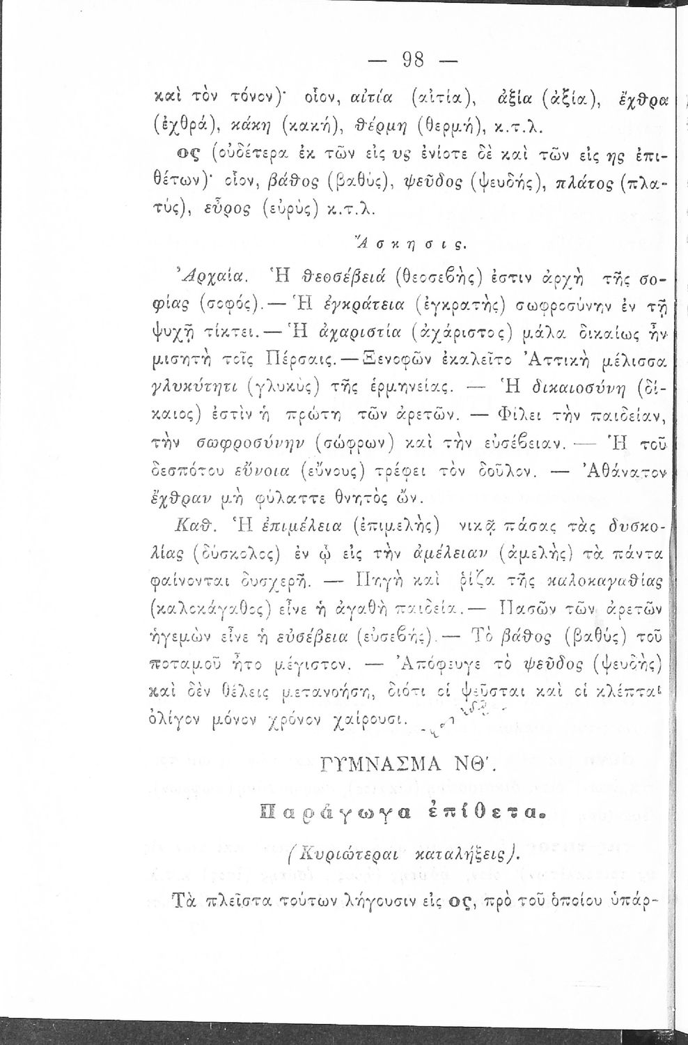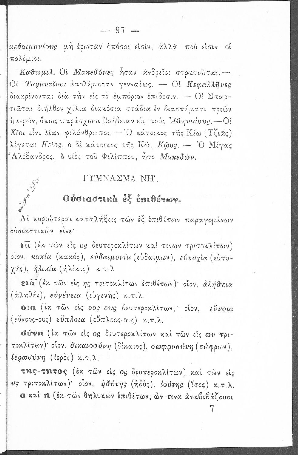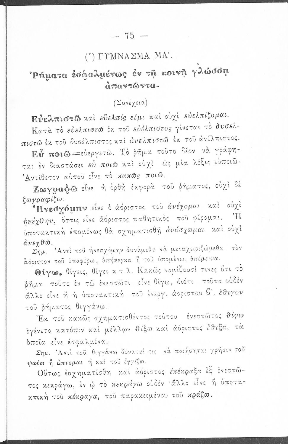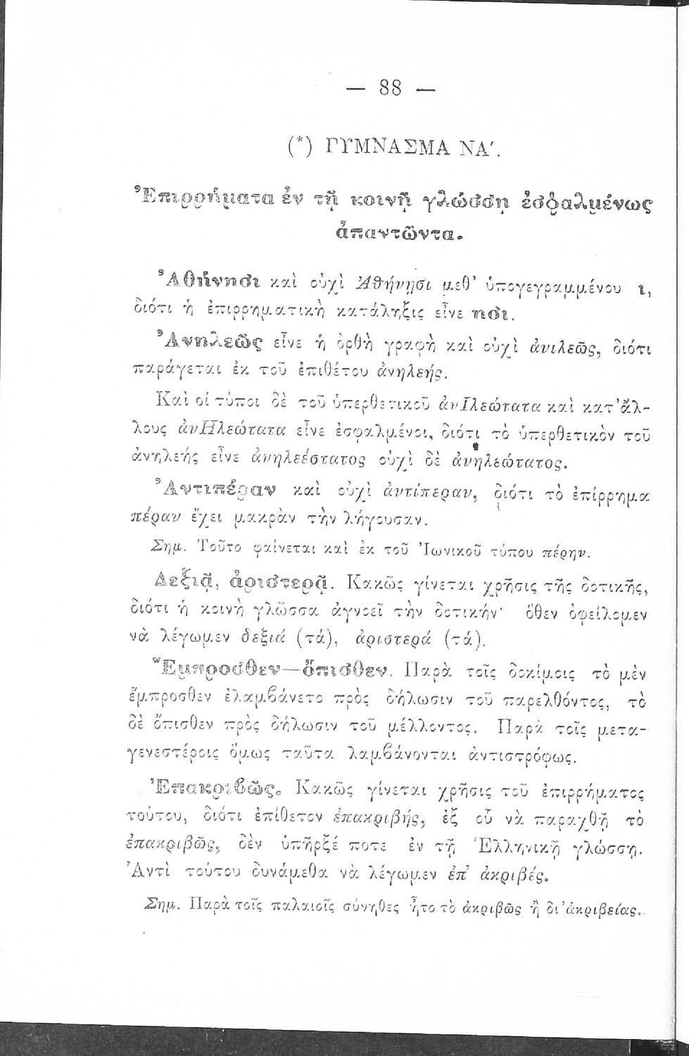 Σχολικό εγχειρίδιο Αρχαίων Ελληνικών που περιέχει τους κανόνες γραμματικής και είναι χωρισμένο σε φθογγολογικό, τυπολογικό και ετυμολογικό μέρος. Περιέχει και κατάλογο ανωμάλων ρημάτων.