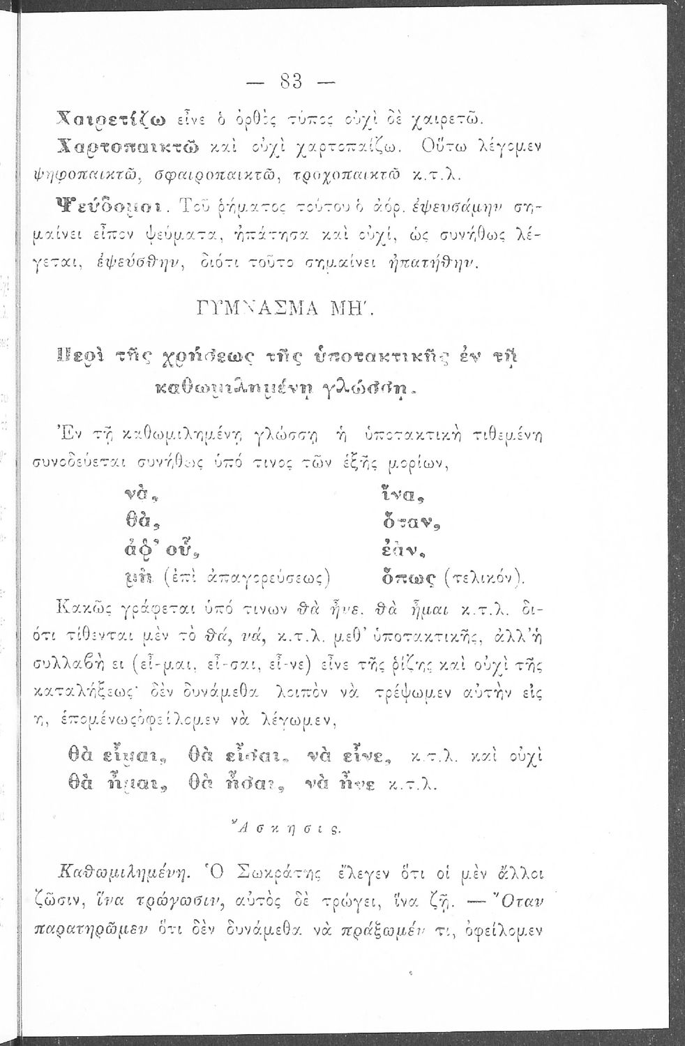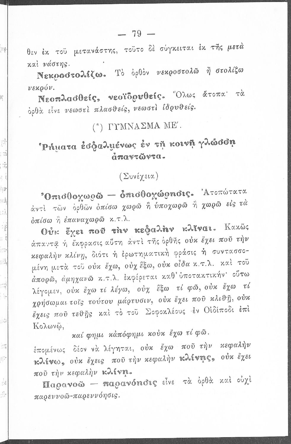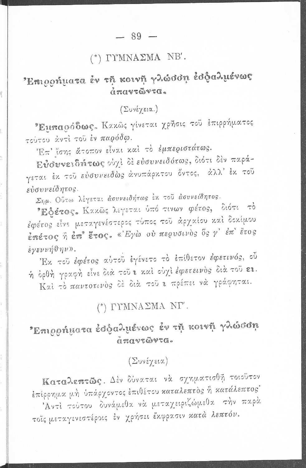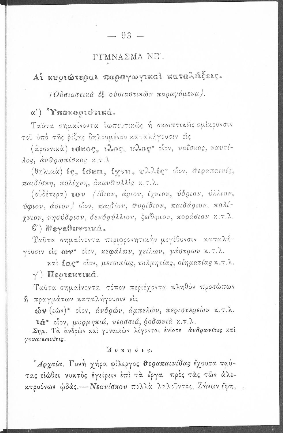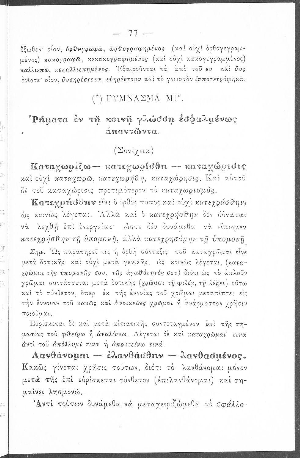 Σχολικό εγχειρίδιο Αρχαίων Ελληνικών που περιέχει τους κανόνες γραμματικής και είναι χωρισμένο σε φθογγολογικό, τυπολογικό και ετυμολογικό μέρος. Περιέχει και κατάλογο ανωμάλων ρημάτων.