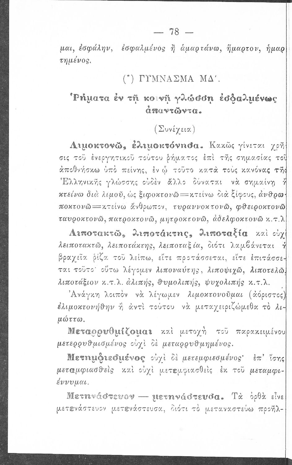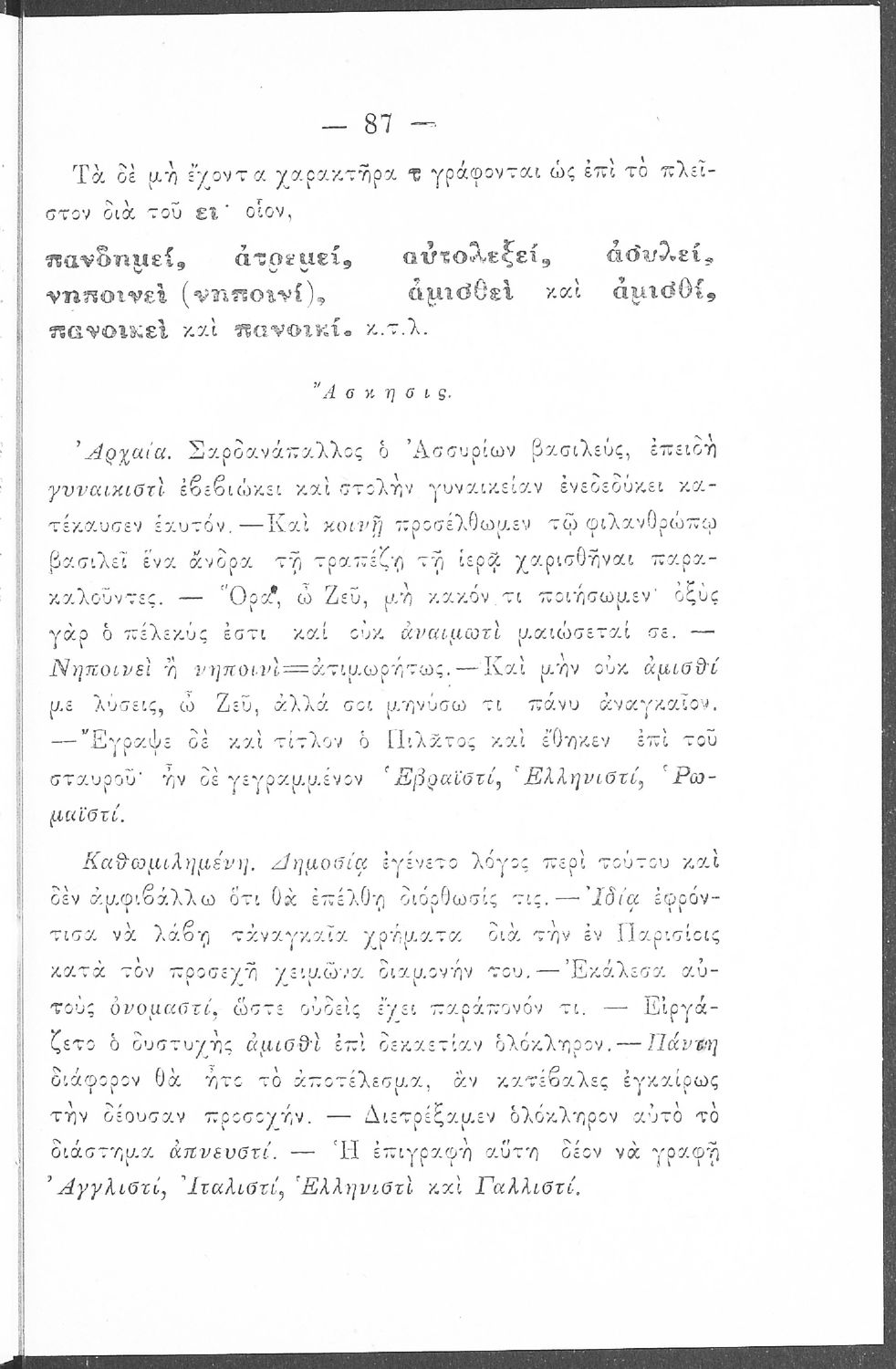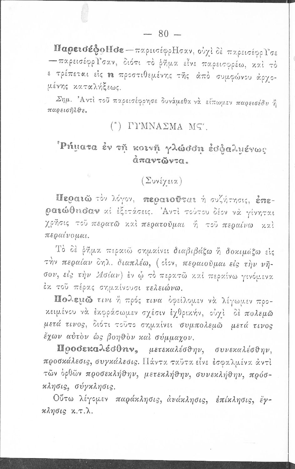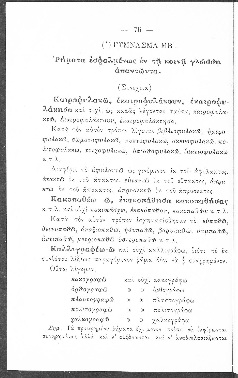 Μέρος δεύτερον των Ορθογραφικών ασκήσεων περιλαμβάνον τα περί ρημάτων παραγωγής και συνθέσεως μέρη της Γραμματικής