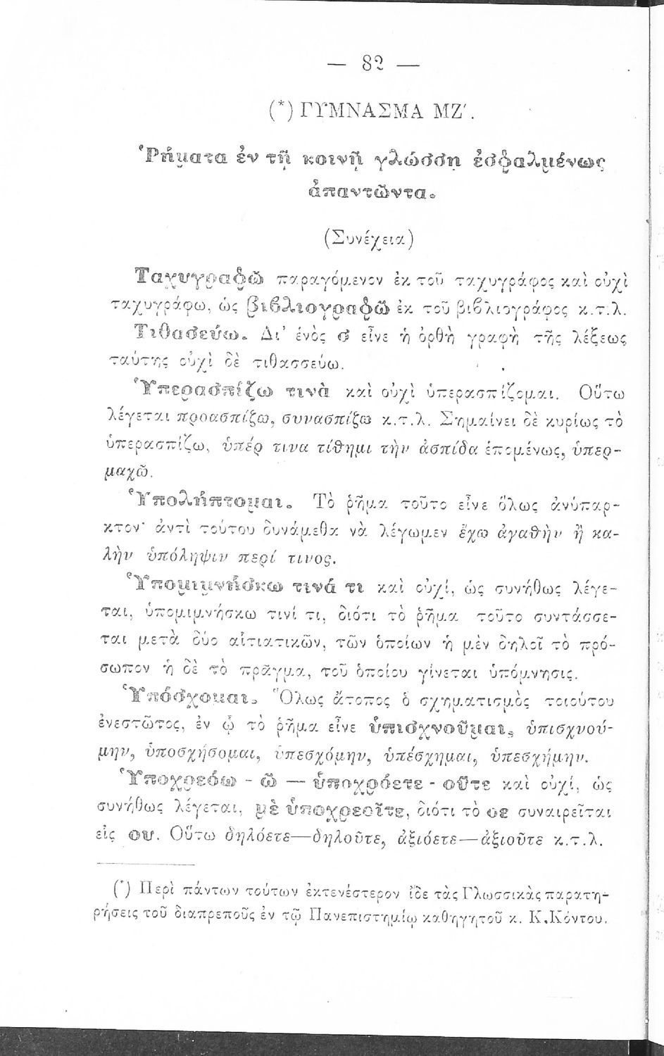 Μαθητικό βοήθημα Νέων Ελληνικών για τη Δευτεροβάθμια Εκπαίδευση. Σύστημα Ορθογραφίας πάνω σε φράσεις της Αρχαίας και της τότε καθομιλουμένης Γλώσσας με γλωσσικές παρατηρήσεις του Κόντου. Περιέχει ασκήσεις και ...