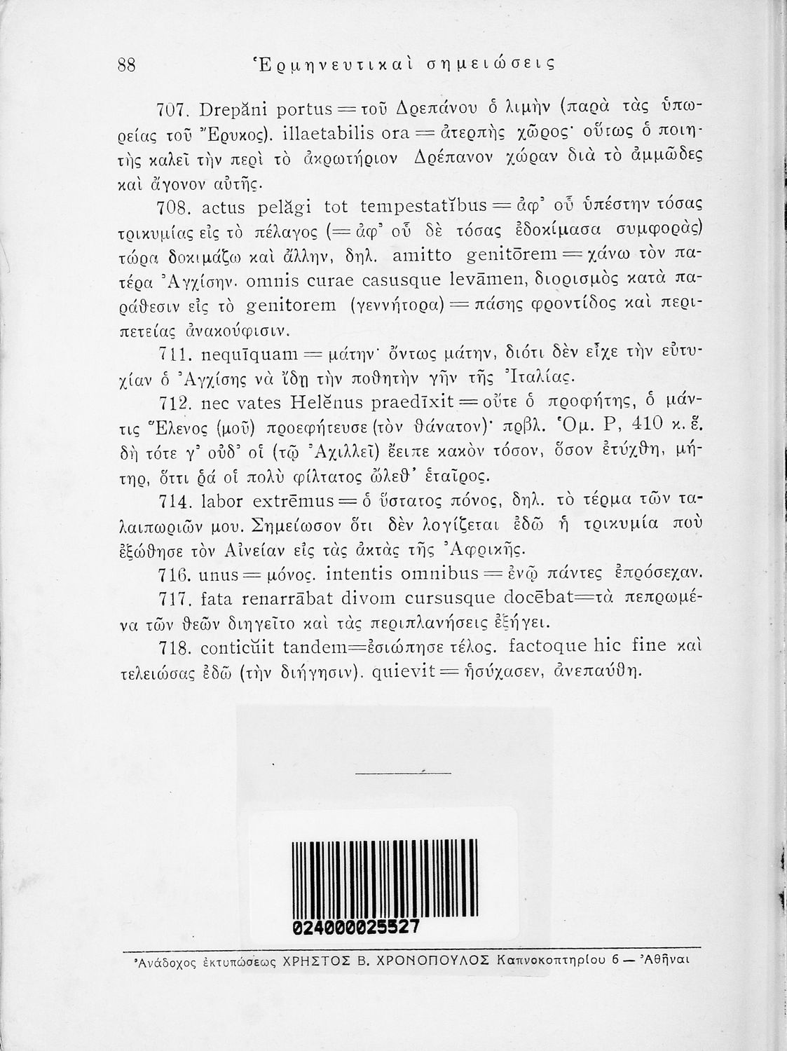 Τίτλος: Ουεργιλίου Αινειάς Εκλογαί δια την ΣΤ΄ τάξιν των Γυμνασίων παλαιού τύπου