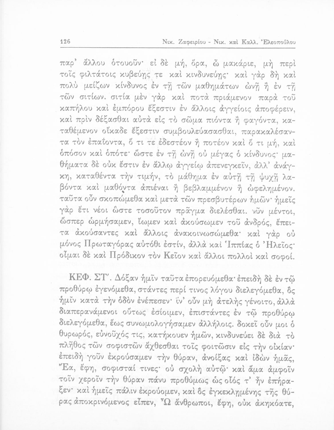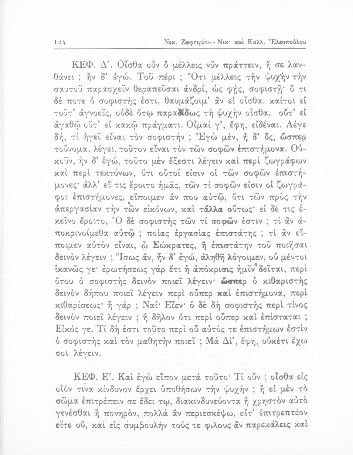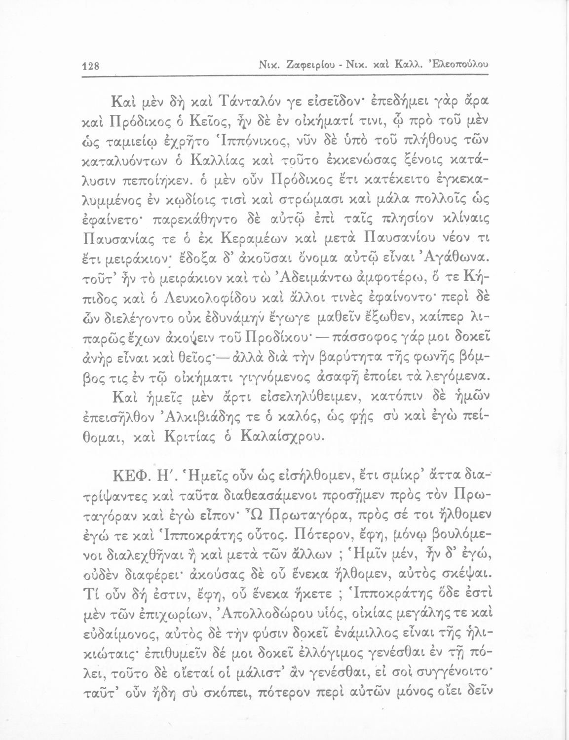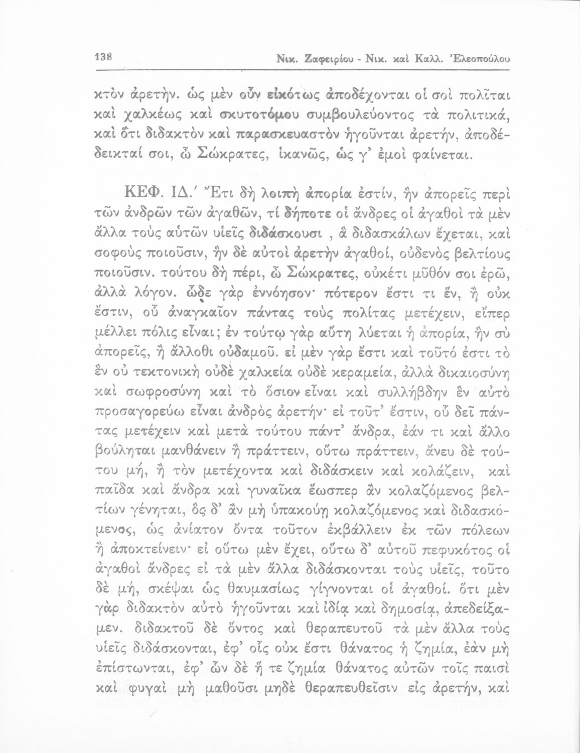 Πλάτων, Ν. Κοντόπουλος, Ν. Ζαφειρίου, Ν. Ελεόπουλος, Ε. Ελεοπούλου (σχόλια)