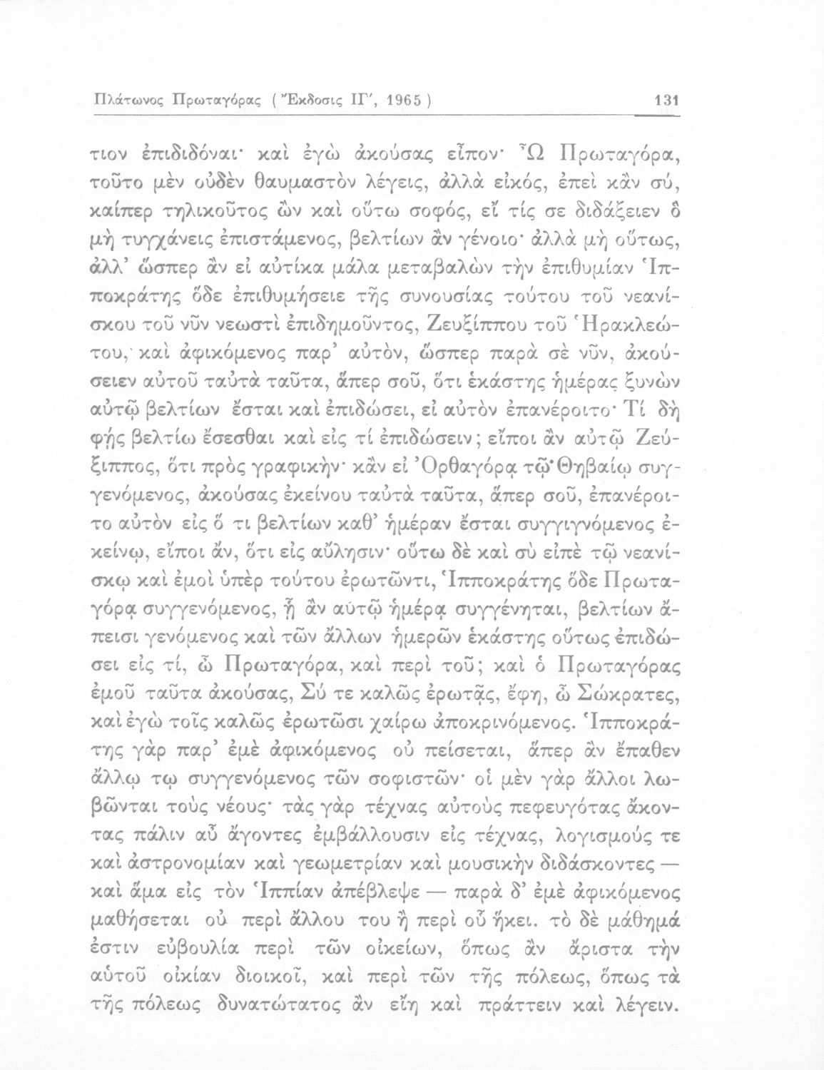 Σχολικό εγχειρίδιο για τις Τάξεις του Γυμνασίου για το μάθημα των Αρχαίων Ελληνικών. Περιλαμβάνει αποσπάσματα του αρχαίου κειμένου από τους διαλόγους του Πλάτωνα. Περιέχει μετάφραση ερμηνευτικά, πραγματολογικά