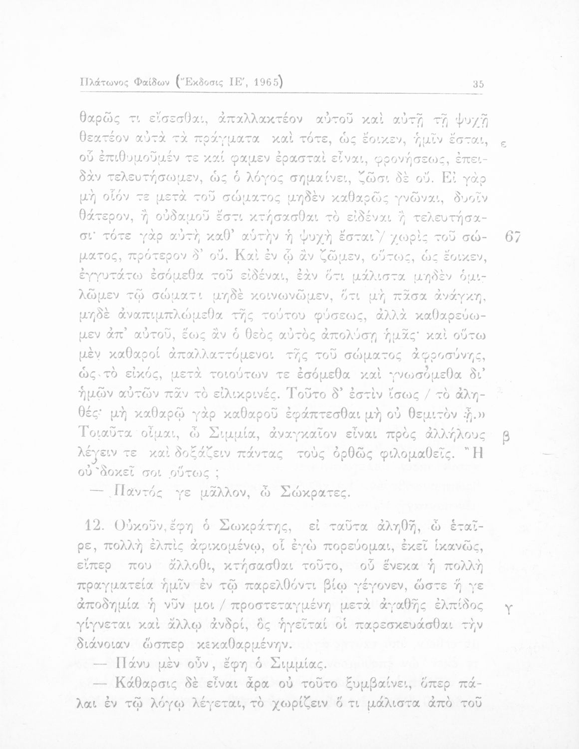 Σχολικό εγχειρίδιο Αρχαίων Ελληνικών για τη Γ΄ Λυκείου με κείμενο του Πλάτωνα. Το βιβλίο έχει εισαγωγές και ερμηνευτικά σχόλια.
