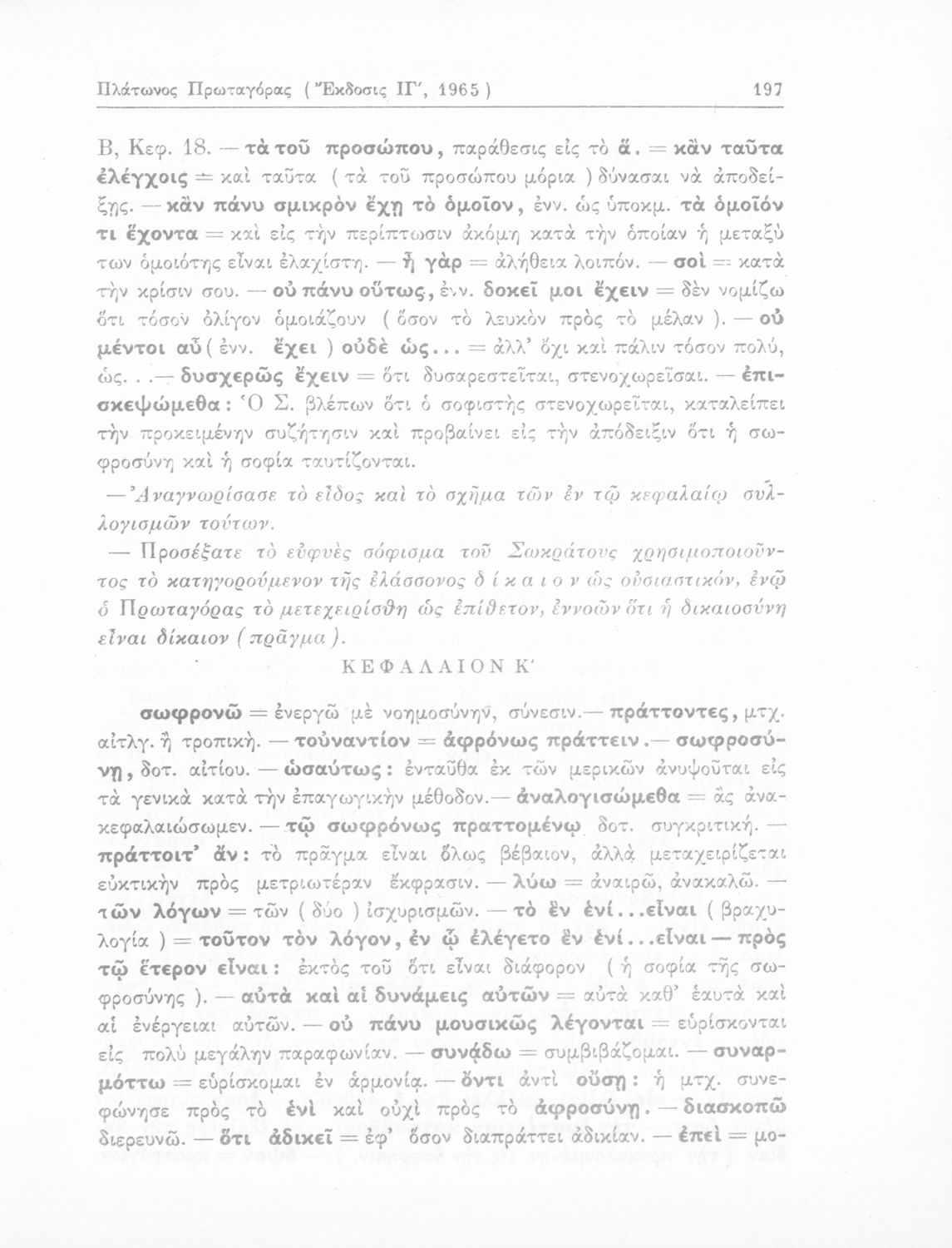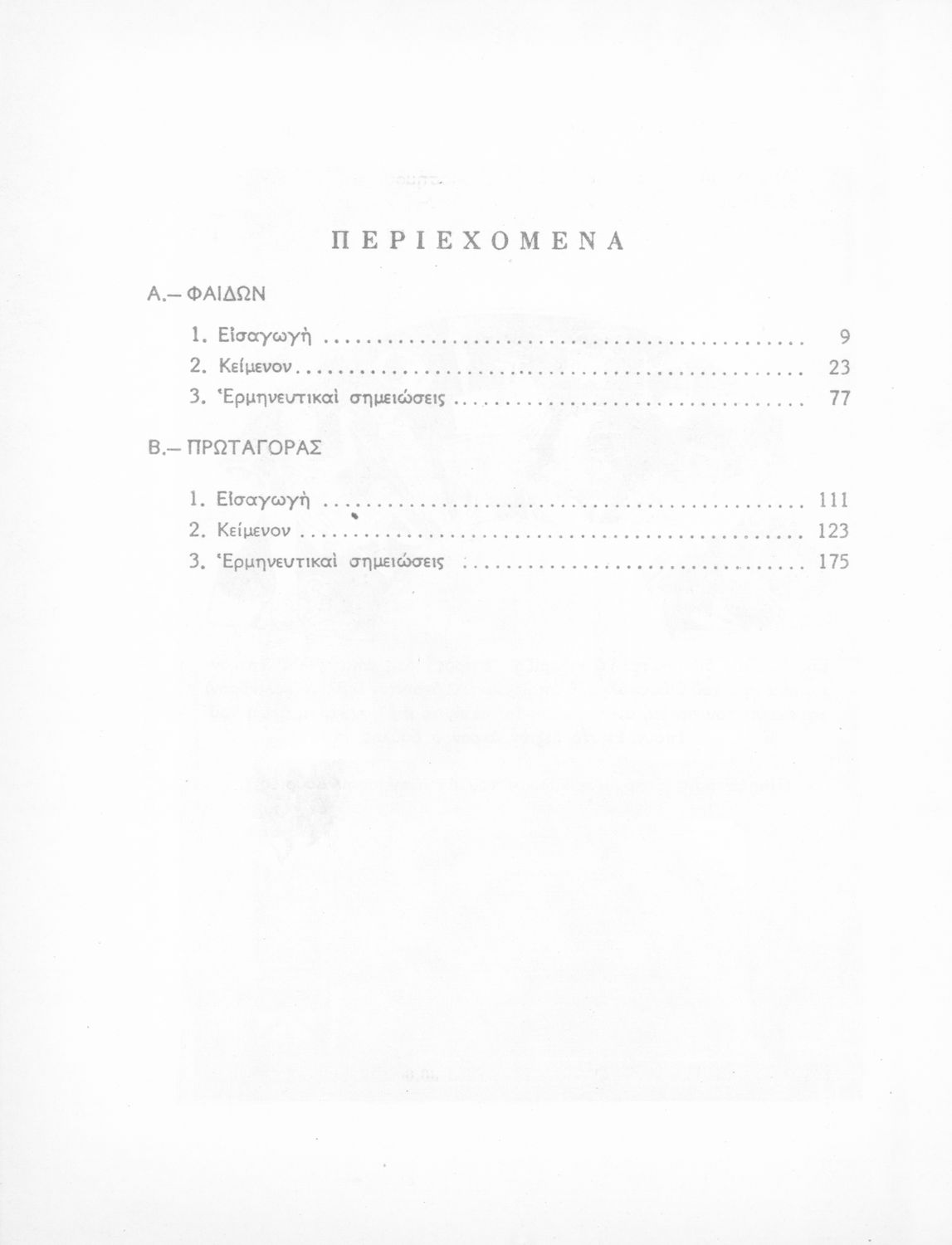 Σχολικό εγχειρίδιο για τις Τάξεις του Γυμνασίου για το μάθημα των Αρχαίων Ελληνικών. Περιλαμβάνει αποσπάσματα του αρχαίου κειμένου από τους διαλόγους του Πλάτωνα. Περιέχει μετάφραση ερμηνευτικά, πραγματολογικά
