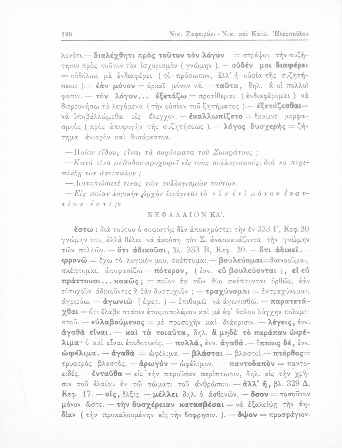 Πλάτων, Ν. Κοντόπουλος, Ν. Ζαφειρίου, Ν. Ελεόπουλος, Ε. Ελεοπούλου (σχόλια)