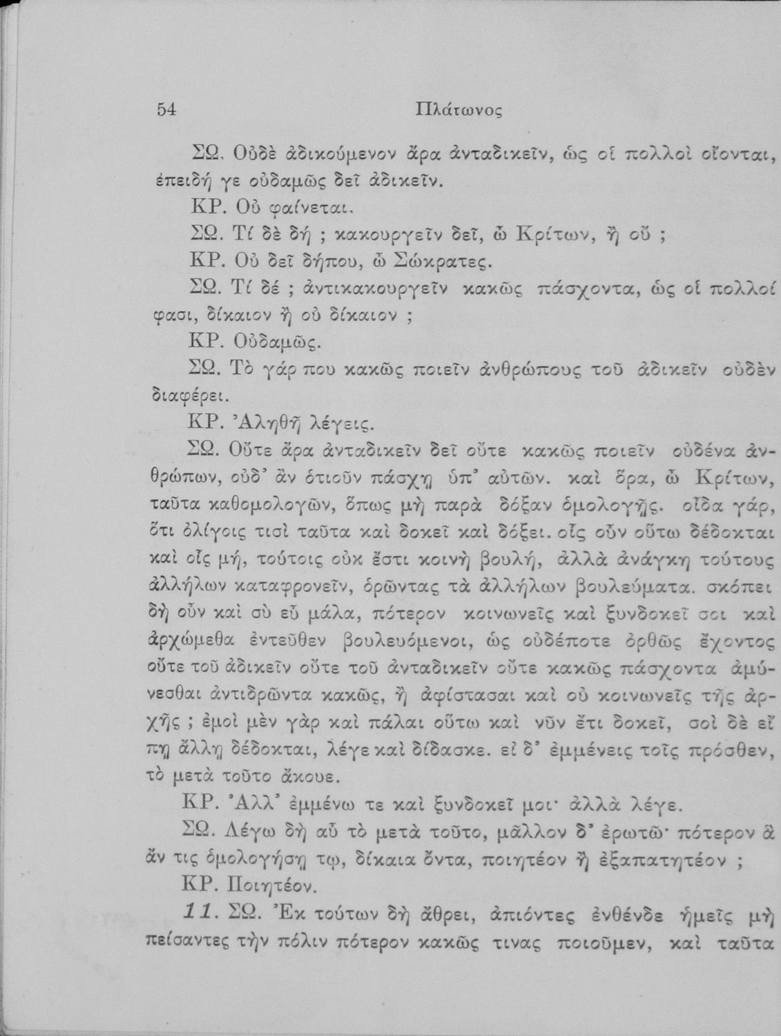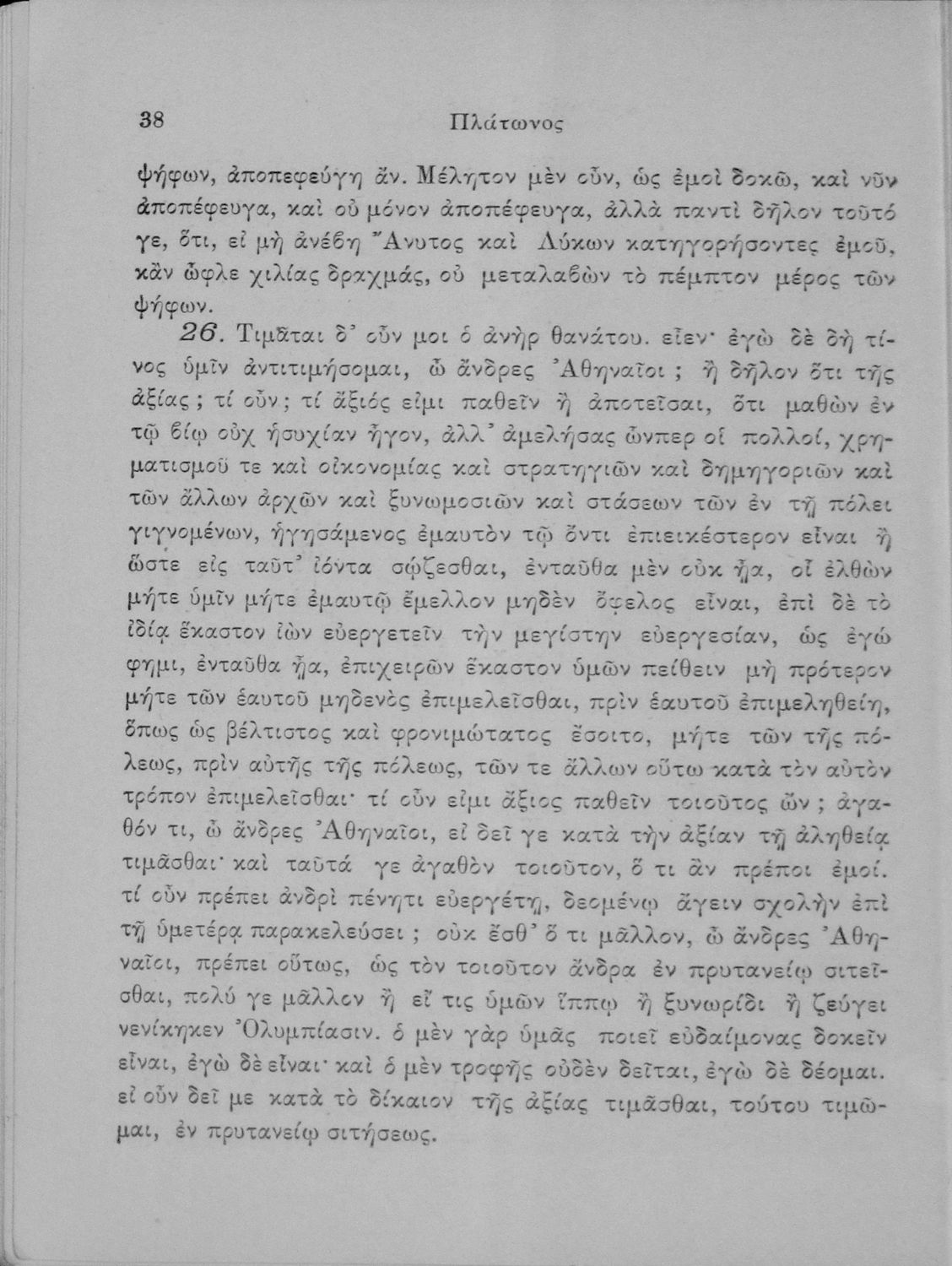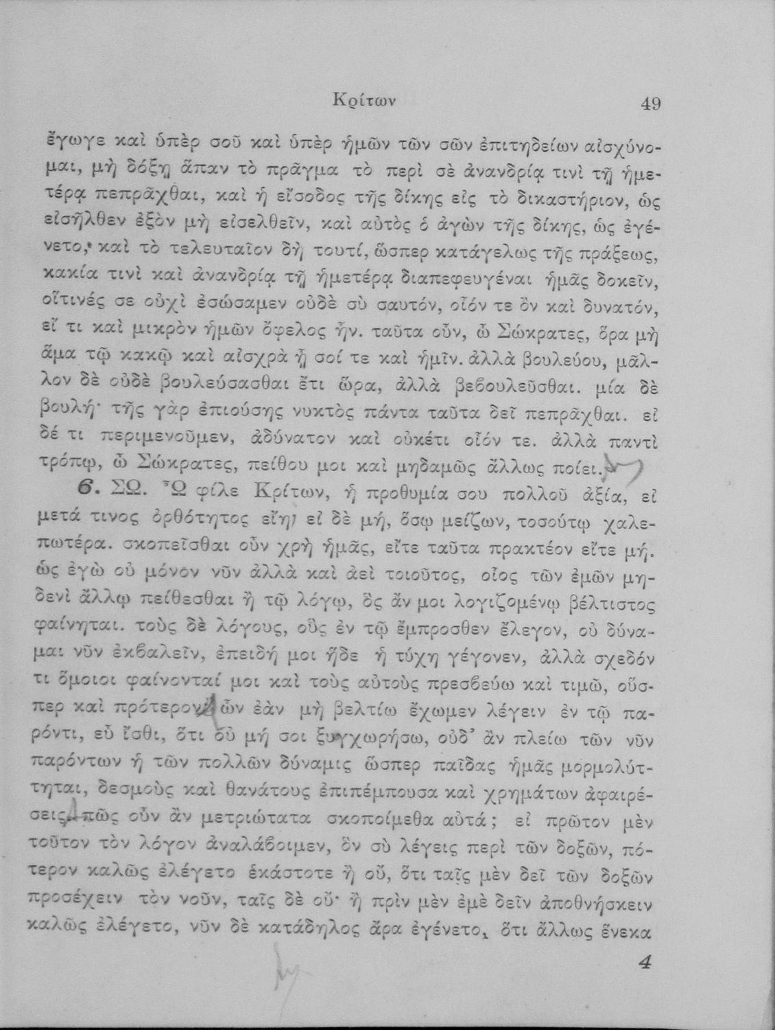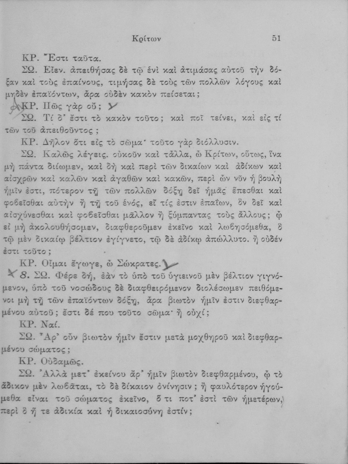 Σχολικό εγχειρίδιο Αρχαίων Ελληνικών για τις Ε΄ Εξαταξίου Γυμνασίου παλαιού τύπου και ΣΤ΄ Εξαταξίου Γυμνασίου νέου τύπου που περιλαμβάνει εισαγωγικά στοιχεία για τη ζωή και το έργο του Πλάτωνα και μικρό εισαγωγικό κείμενο που αφορά τους Διαλόγους Απολογία Σωκράτους και Κρίτων, το κείμενο και ερμηνευτικές σημειώσεις.