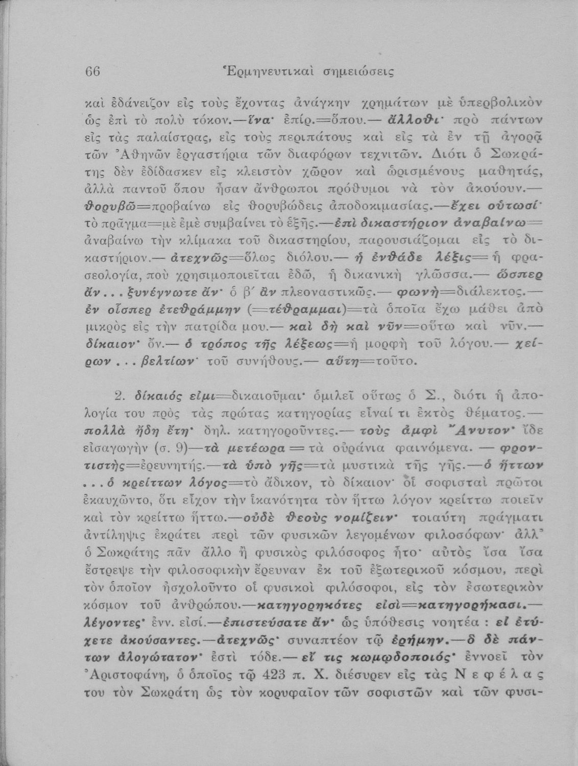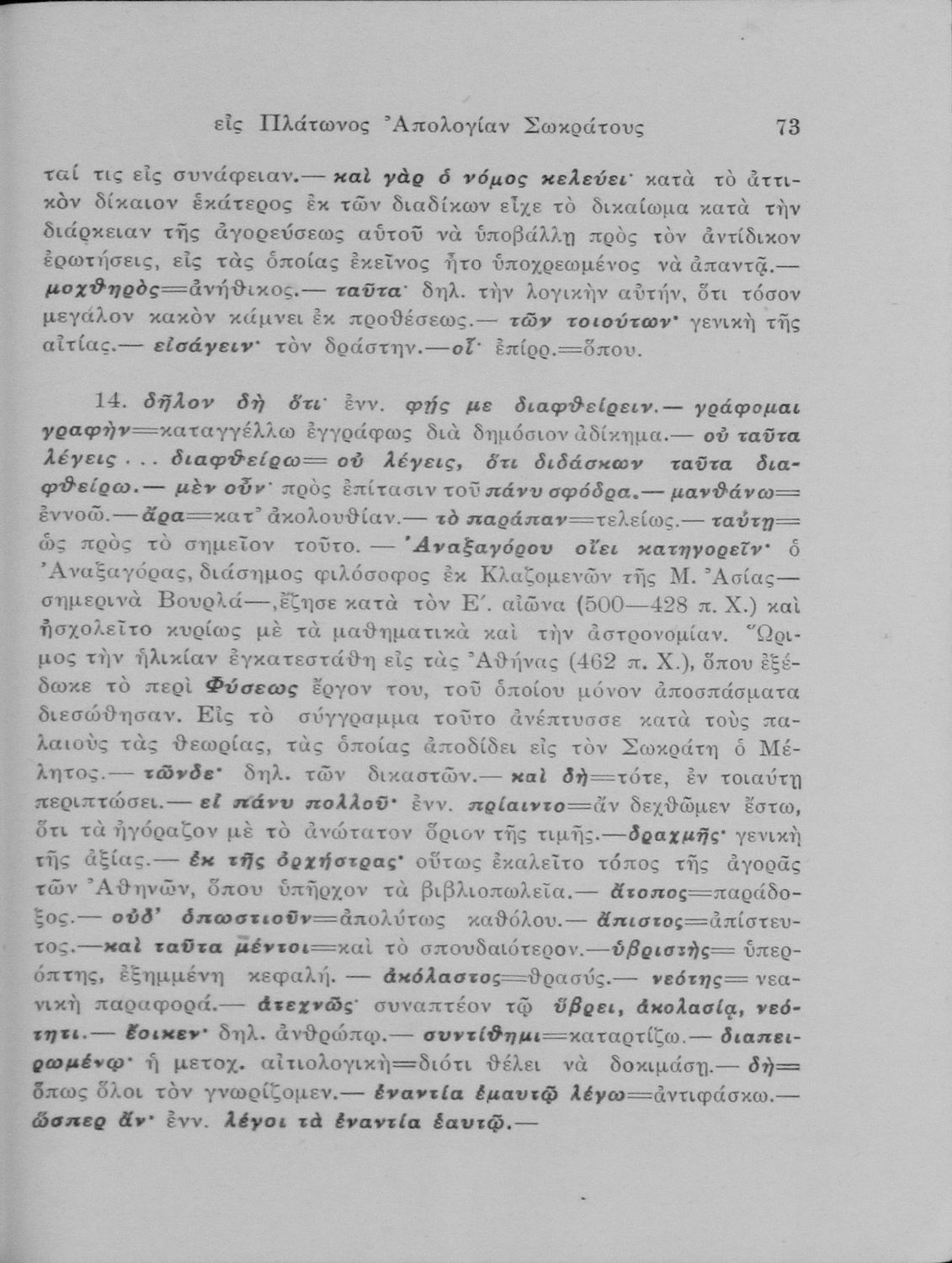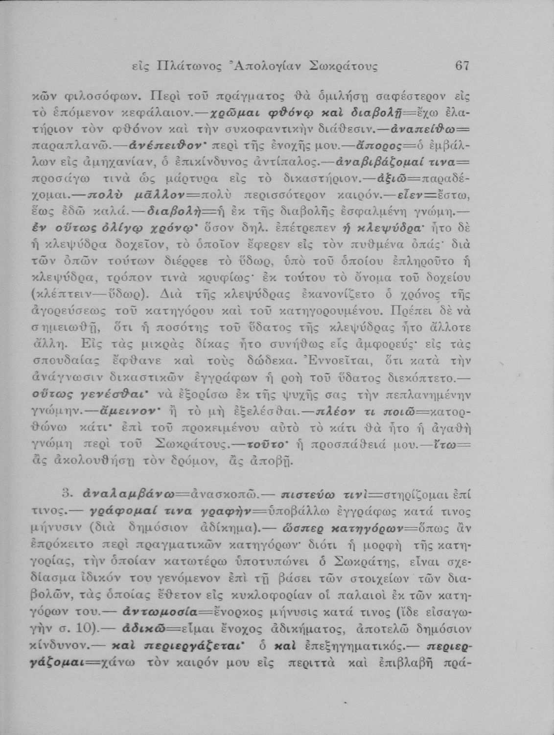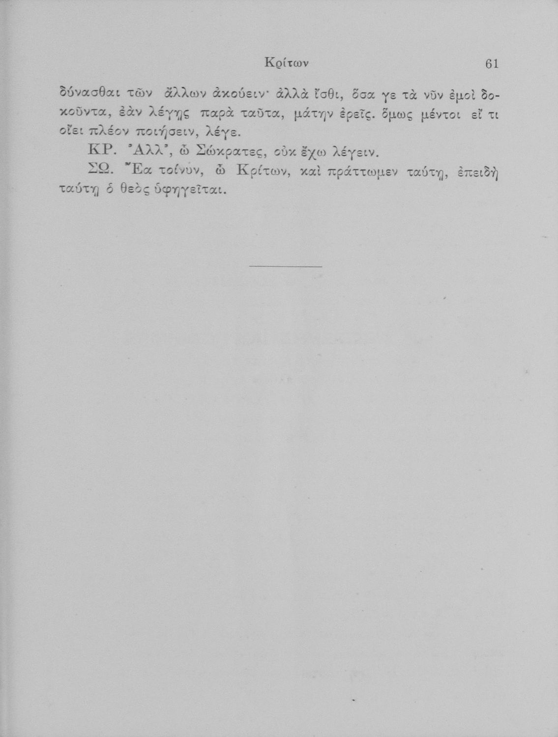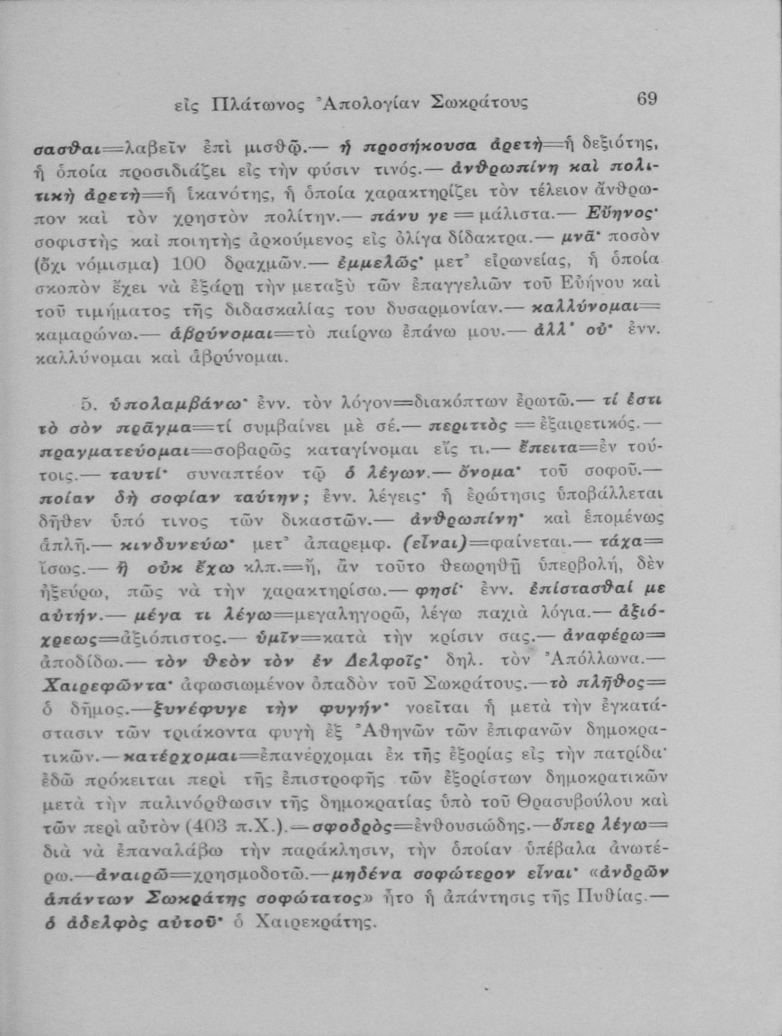 Σχολικό εγχειρίδιο Αρχαίων Ελληνικών για τις Ε΄ Εξαταξίου Γυμνασίου παλαιού τύπου και ΣΤ΄ Εξαταξίου Γυμνασίου νέου τύπου που περιλαμβάνει εισαγωγικά στοιχεία για τη ζωή και το έργο του Πλάτωνα και μικρό εισαγωγικό κείμενο που αφορά τους Διαλόγους Απολογία Σωκράτους και Κρίτων, το κείμενο και ερμηνευτικές σημειώσεις.
