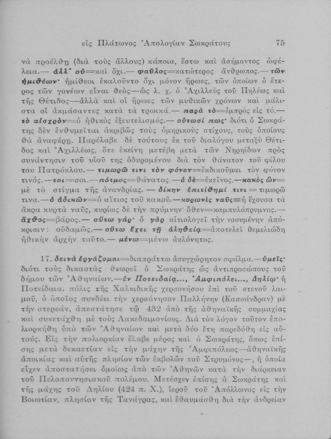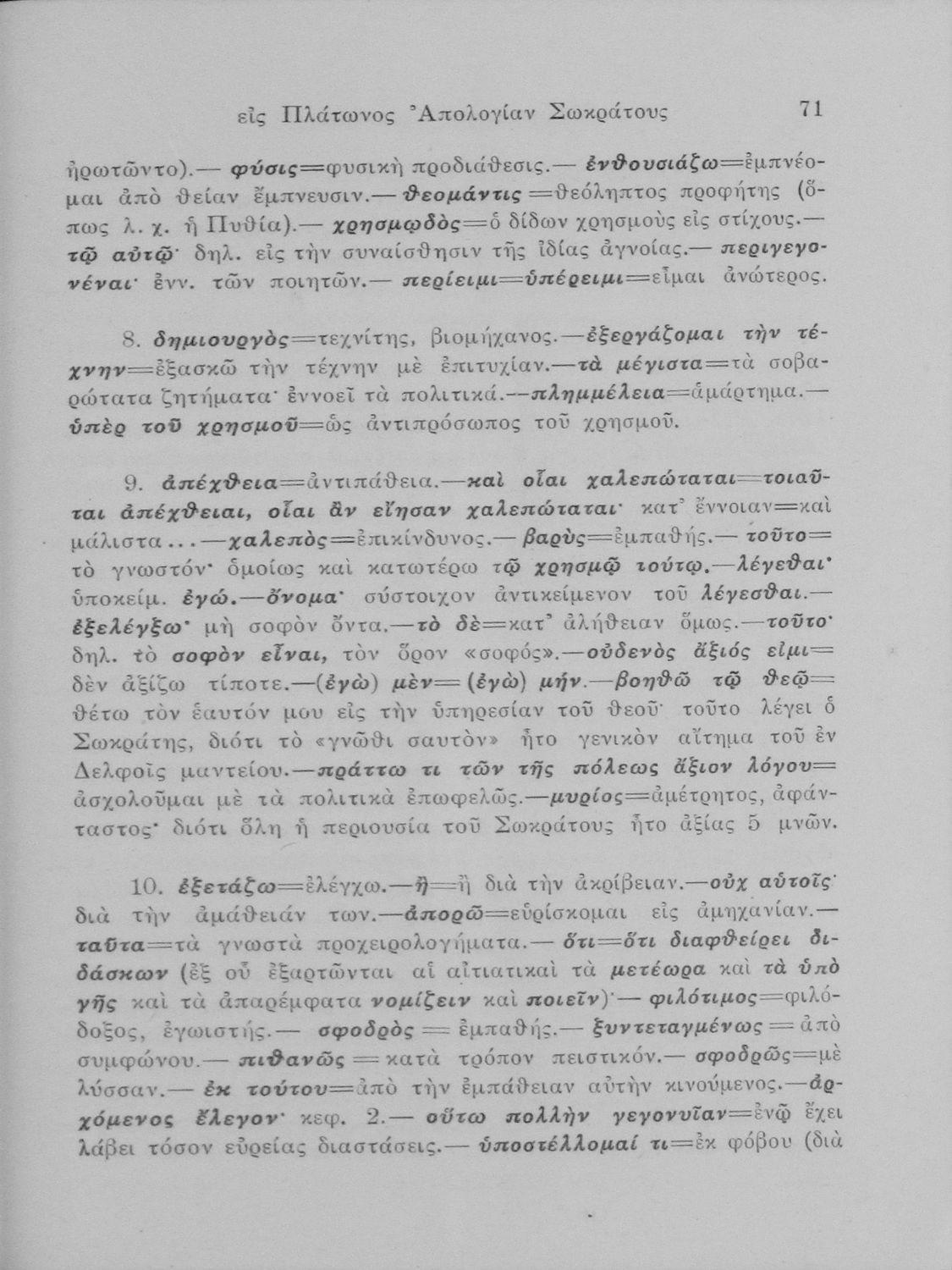 Σχολικό εγχειρίδιο Αρχαίων Ελληνικών Γυμνασίου που περιέχει τα έργα του Πλάτωνα Απολογία Σωκράτους και Κρίτων, ερμηνευτικά και πραγματολογικά σχόλια και λεξιλογικές παρατηρήσεις.