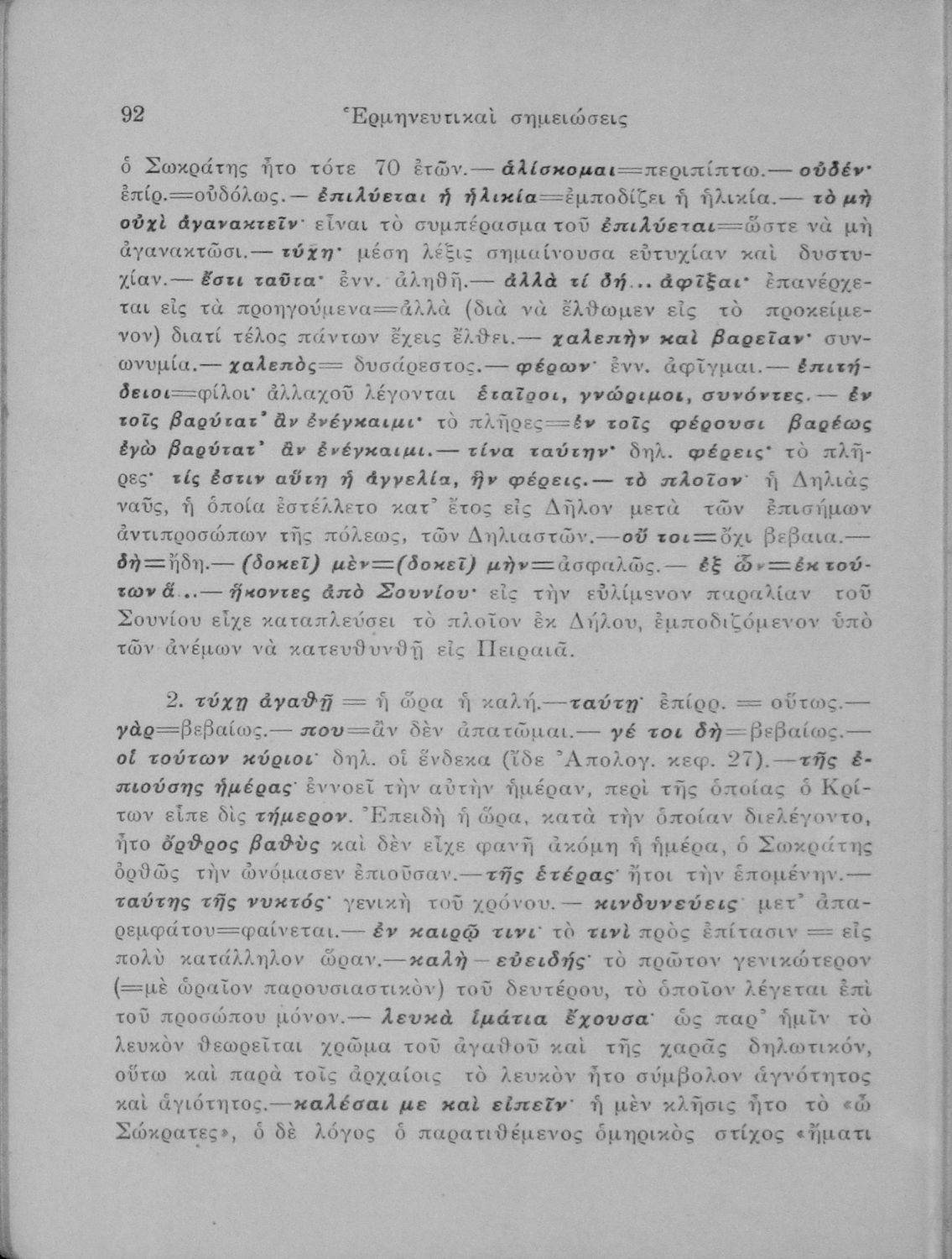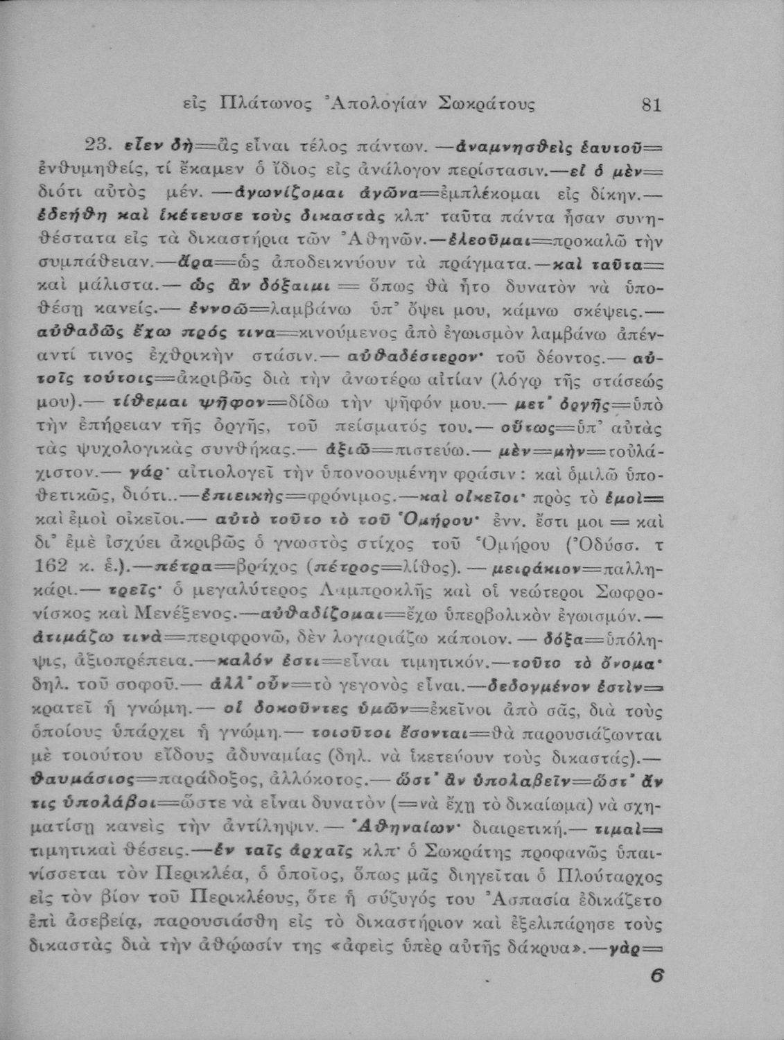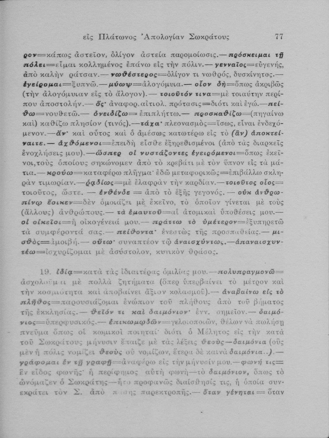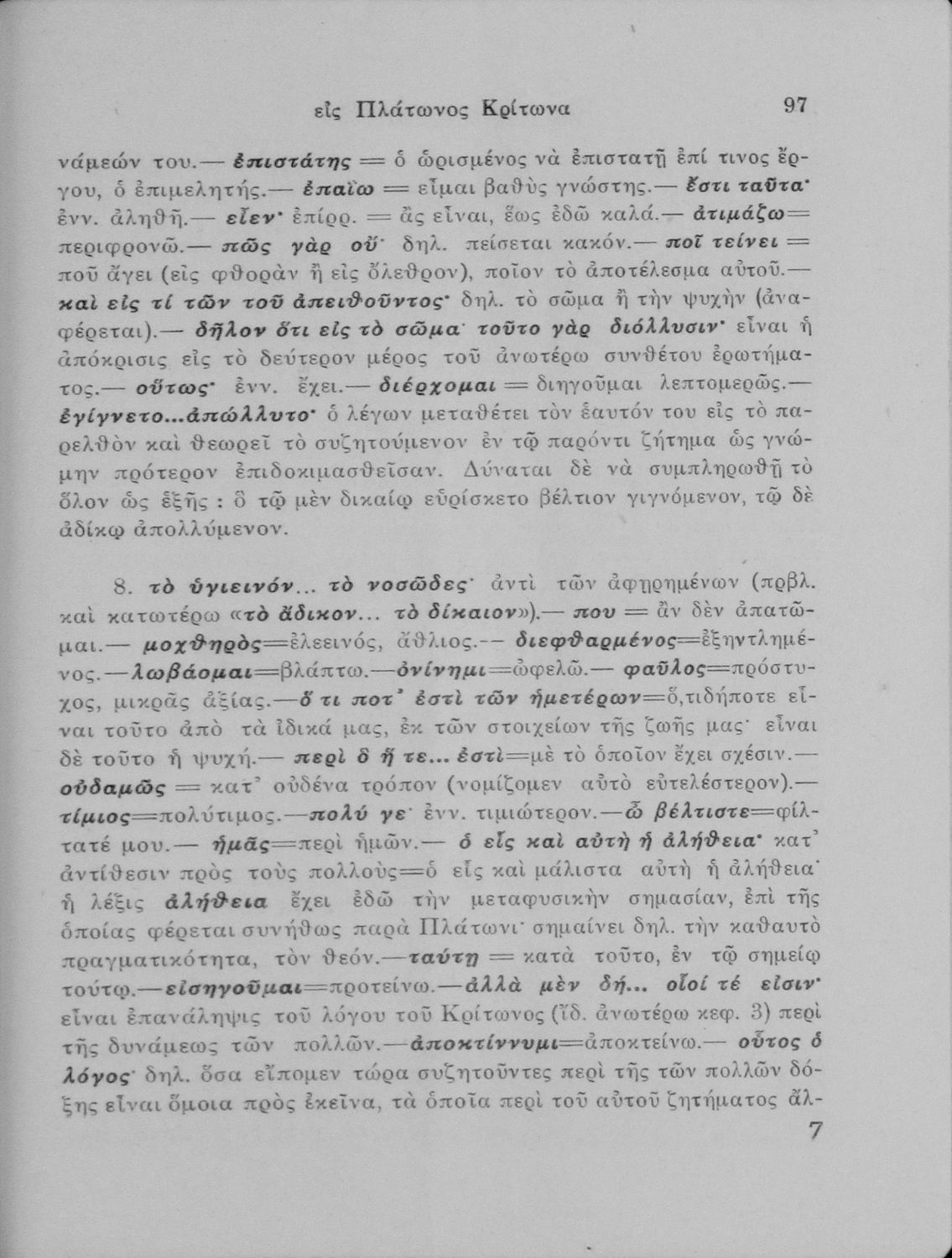 Σχολικό εγχειρίδιο Αρχαίων Ελληνικών για τις Ε΄ Εξαταξίου Γυμνασίου παλαιού τύπου και ΣΤ΄ Εξαταξίου Γυμνασίου νέου τύπου που περιλαμβάνει εισαγωγικά στοιχεία για τη ζωή και το έργο του Πλάτωνα και μικρό εισαγωγικό κείμενο που αφορά τους Διαλόγους Απολογία Σωκράτους και Κρίτων, το κείμενο και ερμηνευτικές σημειώσεις.