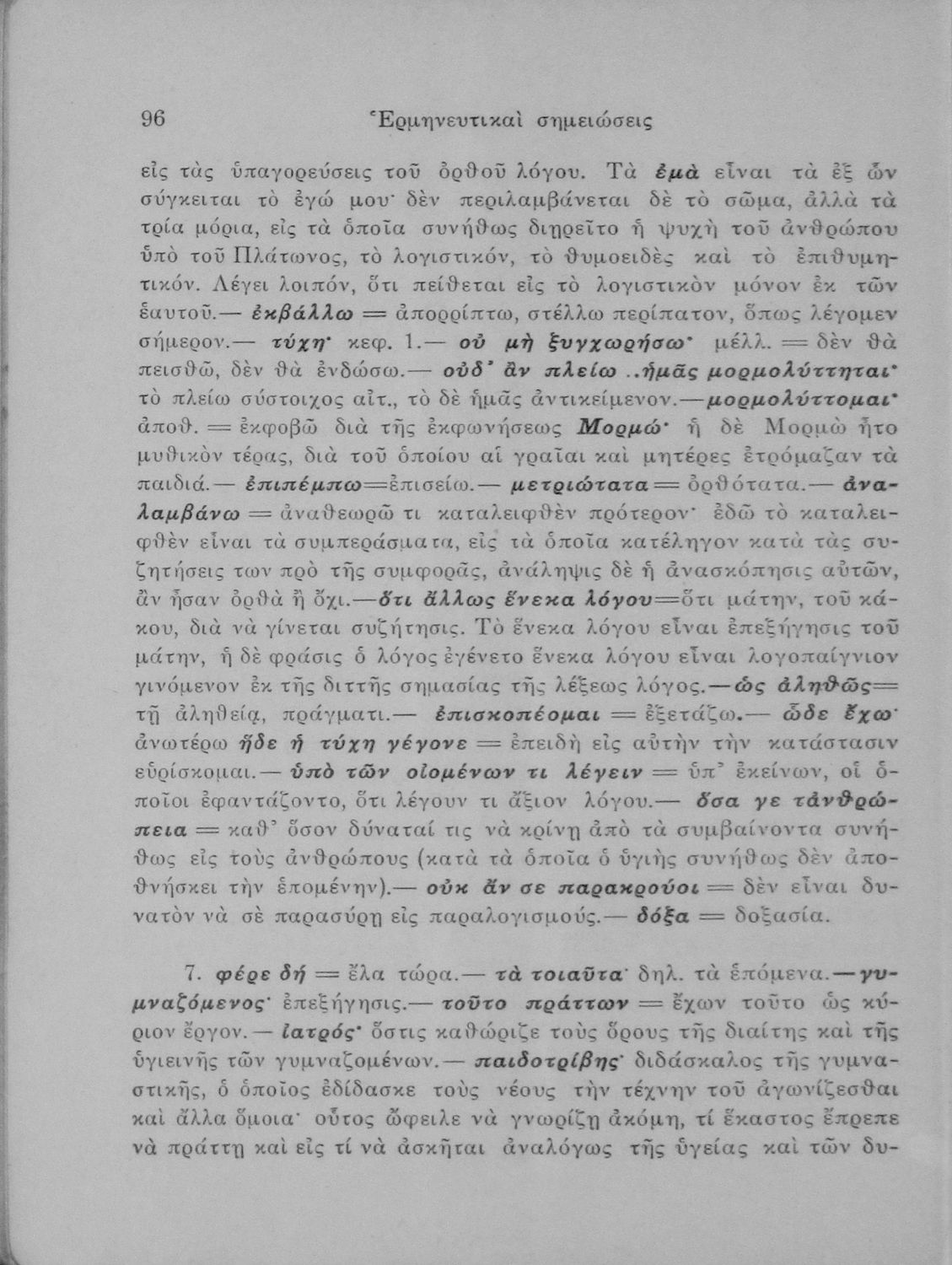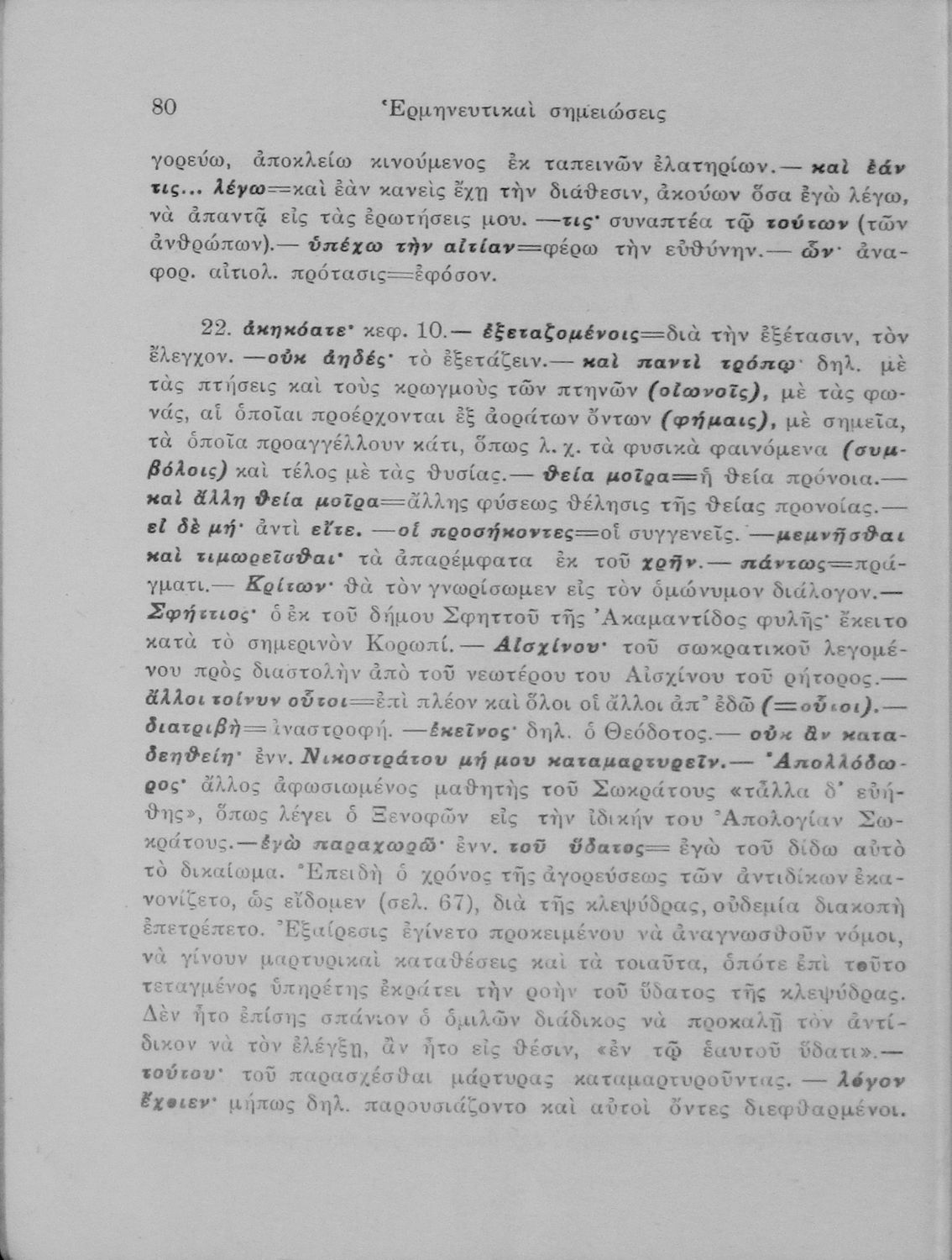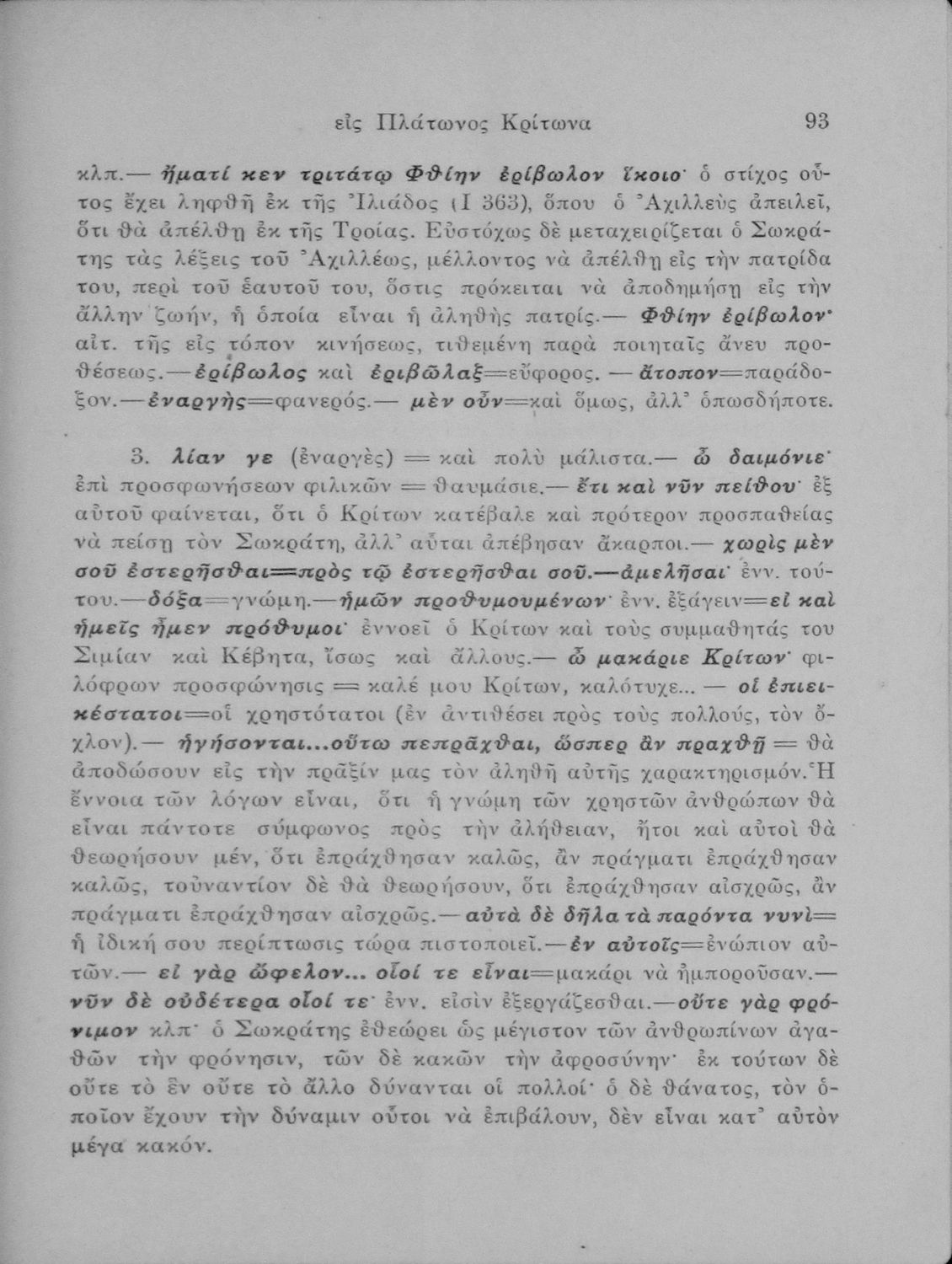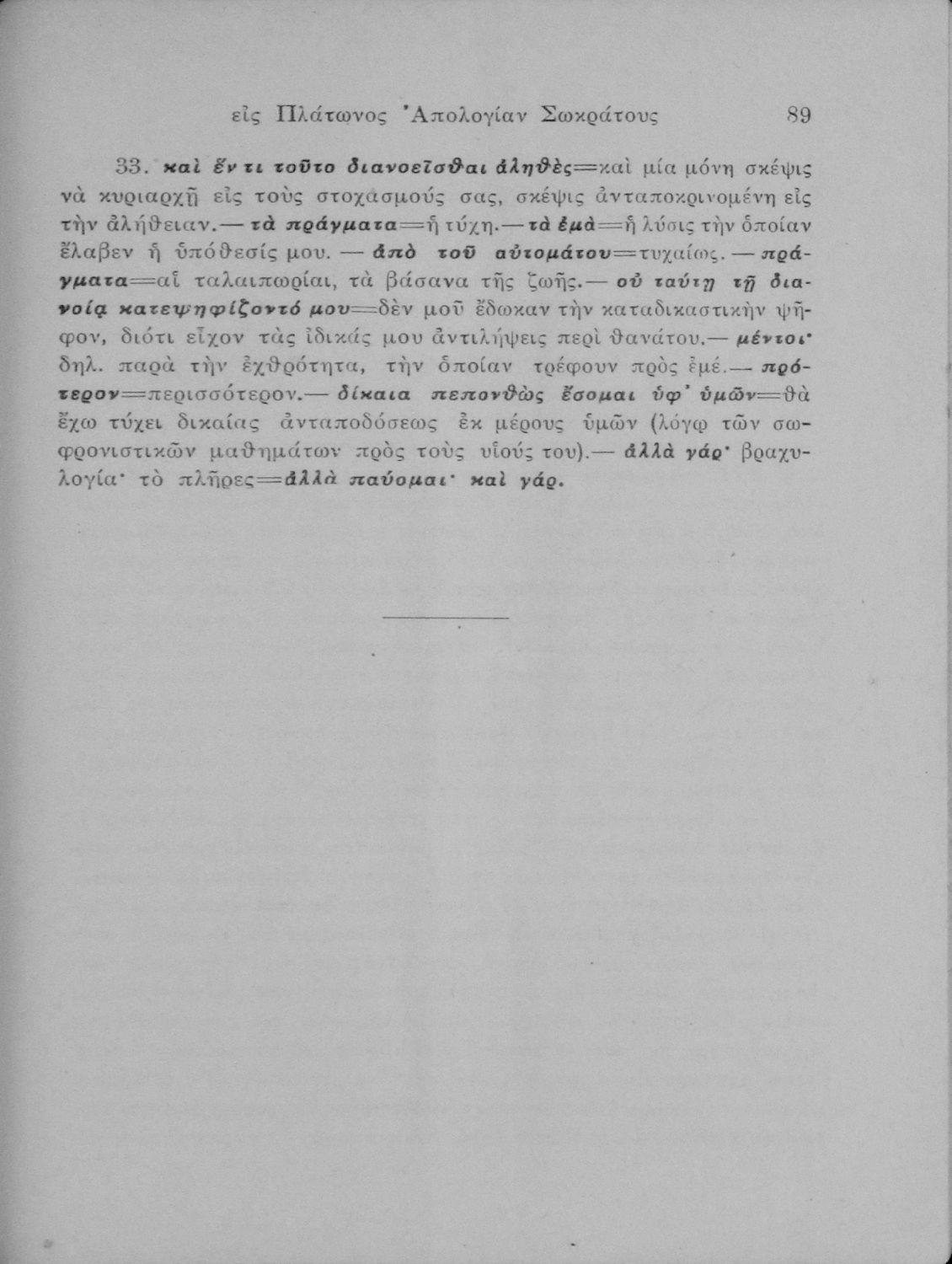 Σχολικό εγχειρίδιο Αρχαίων Ελληνικών για τις Ε΄ Εξαταξίου Γυμνασίου παλαιού τύπου και ΣΤ΄ Εξαταξίου Γυμνασίου νέου τύπου που περιλαμβάνει εισαγωγικά στοιχεία για τη ζωή και το έργο του Πλάτωνα και μικρό εισαγωγικό κείμενο που αφορά τους Διαλόγους Απολογία Σωκράτους και Κρίτων, το κείμενο και ερμηνευτικές σημειώσεις.