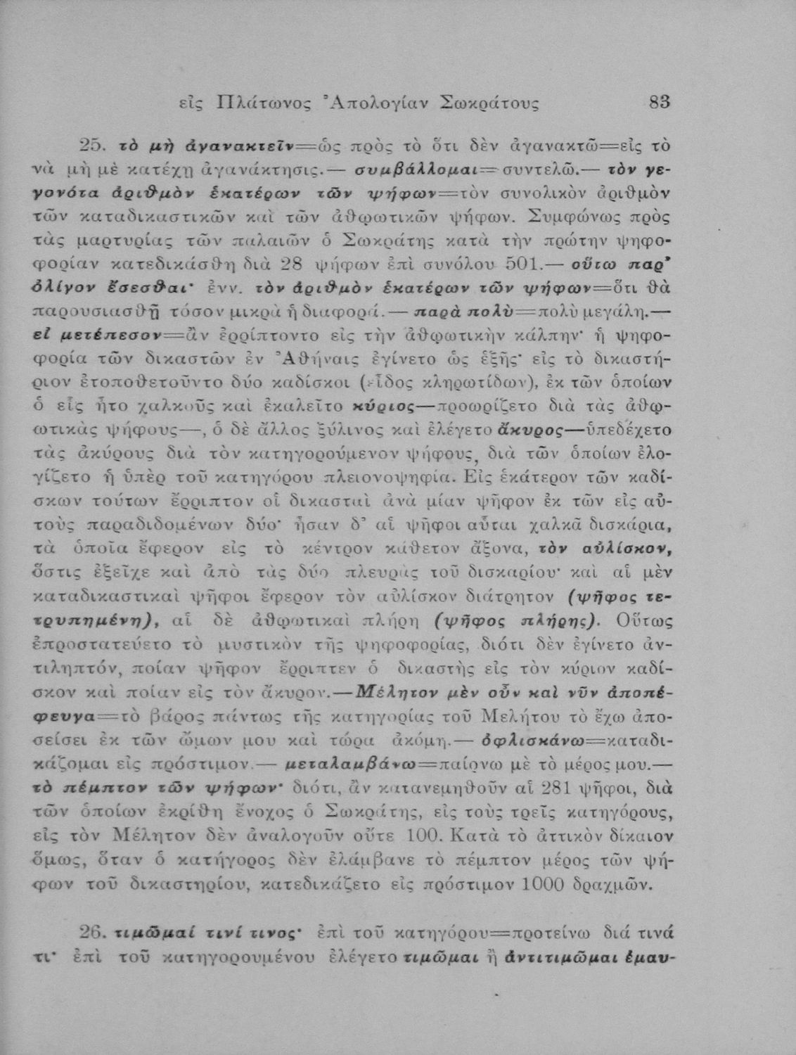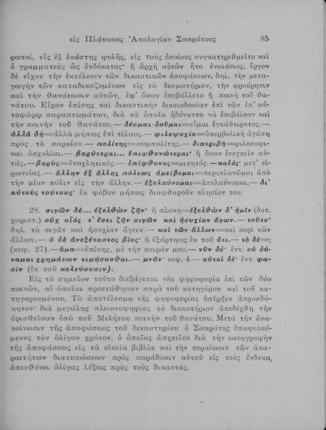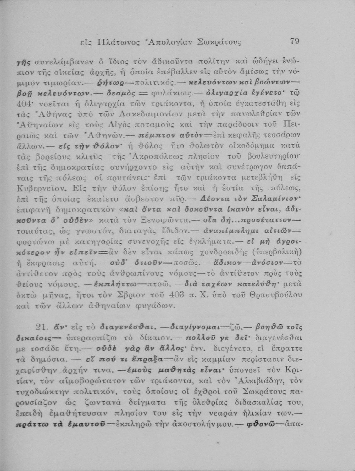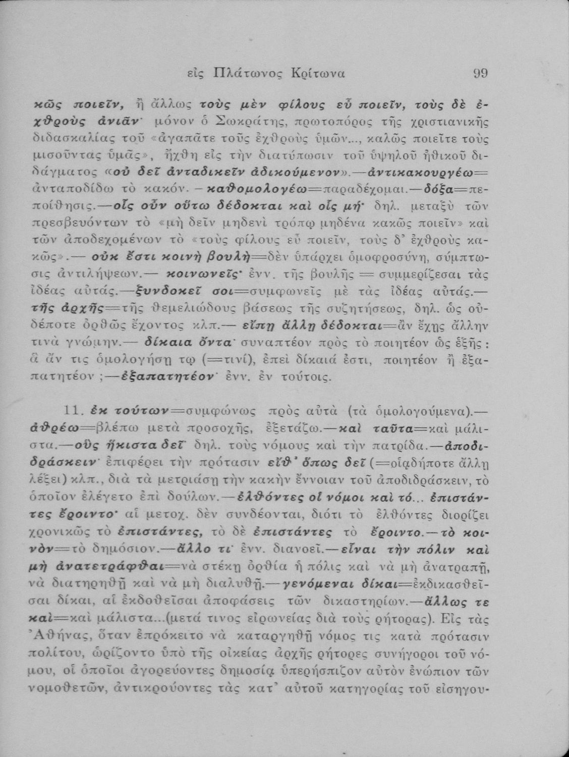 Σχολικό εγχειρίδιο Αρχαίων Ελληνικών Γυμνασίου που περιέχει τα έργα του Πλάτωνα Απολογία Σωκράτους και Κρίτων, ερμηνευτικά και πραγματολογικά σχόλια και λεξιλογικές παρατηρήσεις.