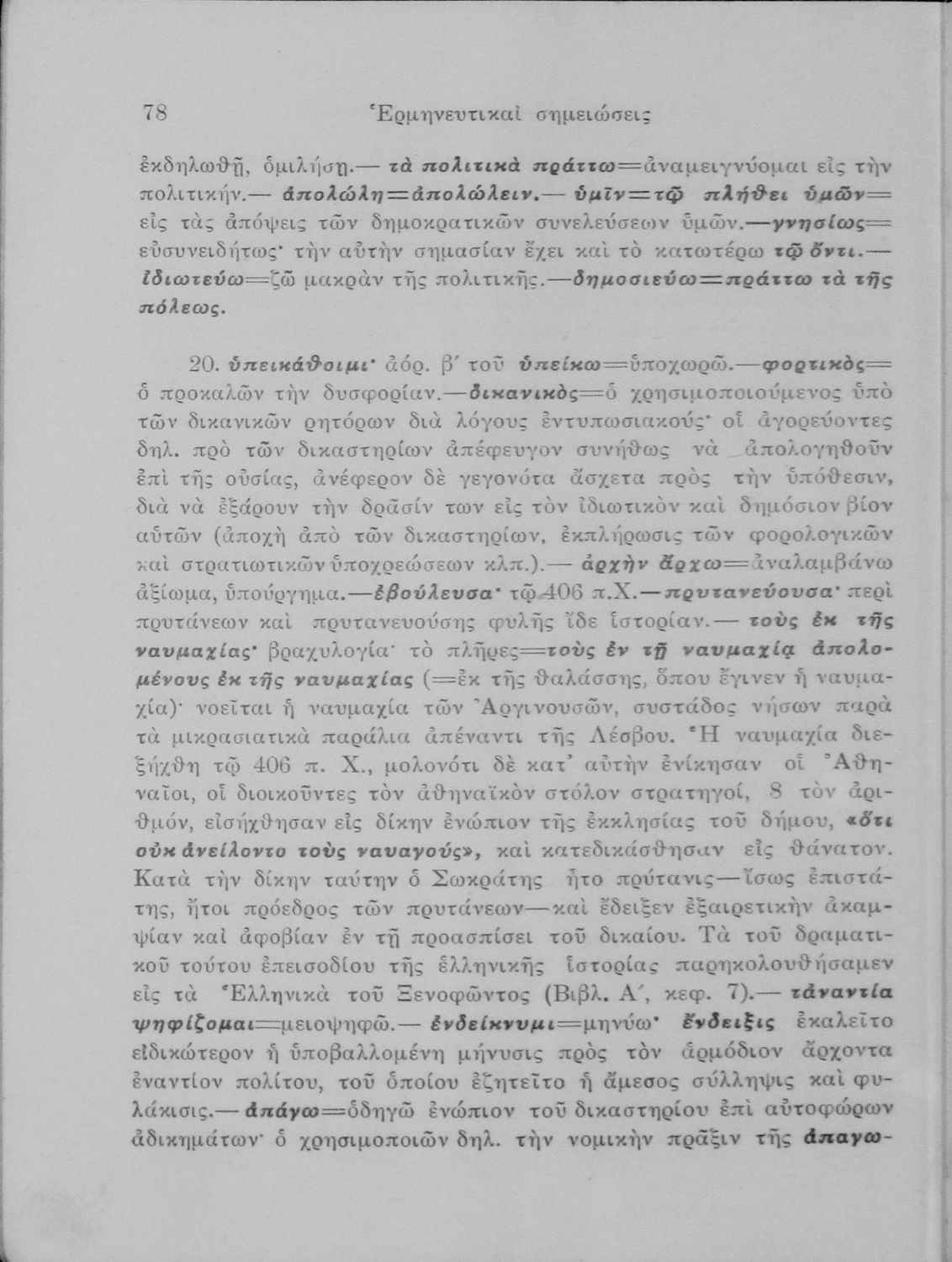Σχολικό εγχειρίδιο για το μάθημα των Αρχαίων Ελληνικών στο Γυμνάσιο. Περιέχει το αρχαίο κείμενο, καθώς και ερμηνευτικά, πραγματολογικά σχόλια και λεξιλογικές, γραμματικές παρατηρήσεις.
