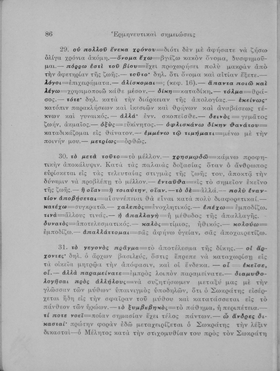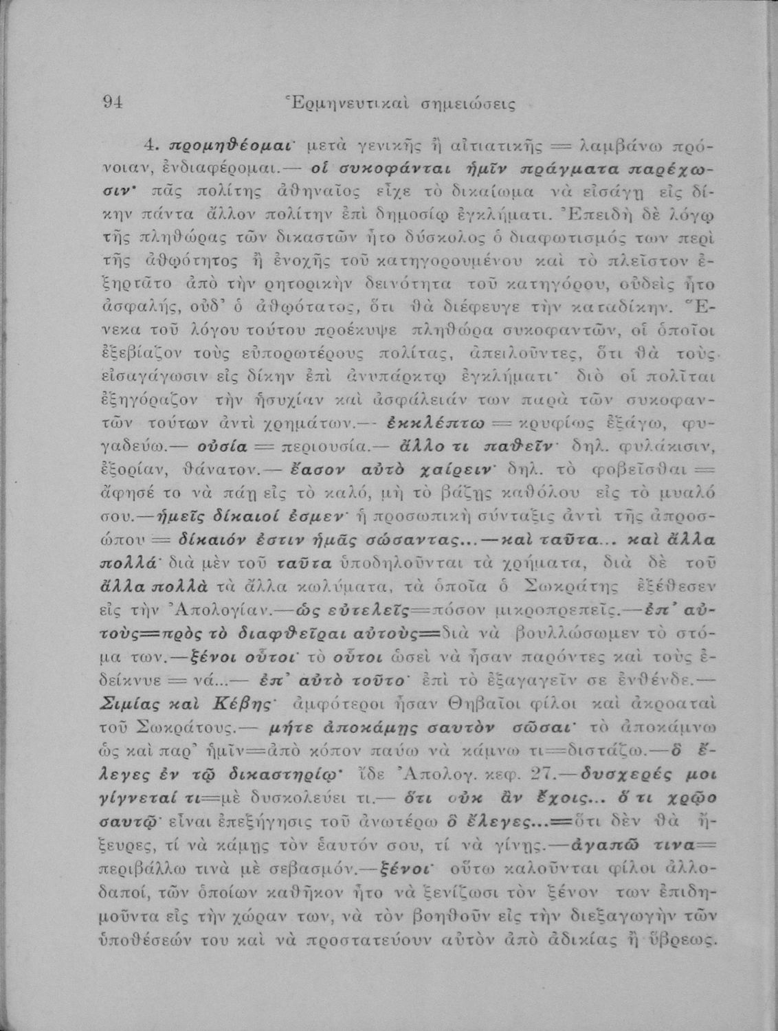 Μαθητικό βοήθημα Αρχαίων Ελληνικών Γυμνασίου που περιλαμβάνει τα κείμενα του Πλάτωνα Απολογία Σωκράτους, Κρίτων, Λάχης και πραγματολογικές παρατηρήσεις.