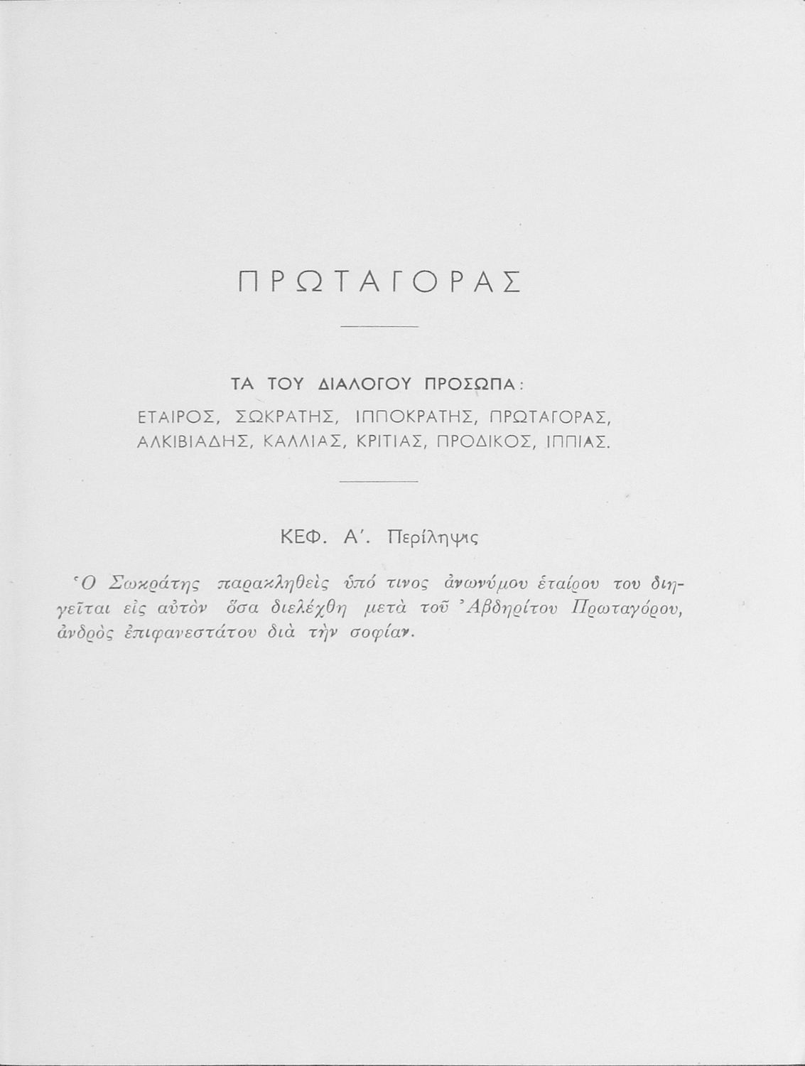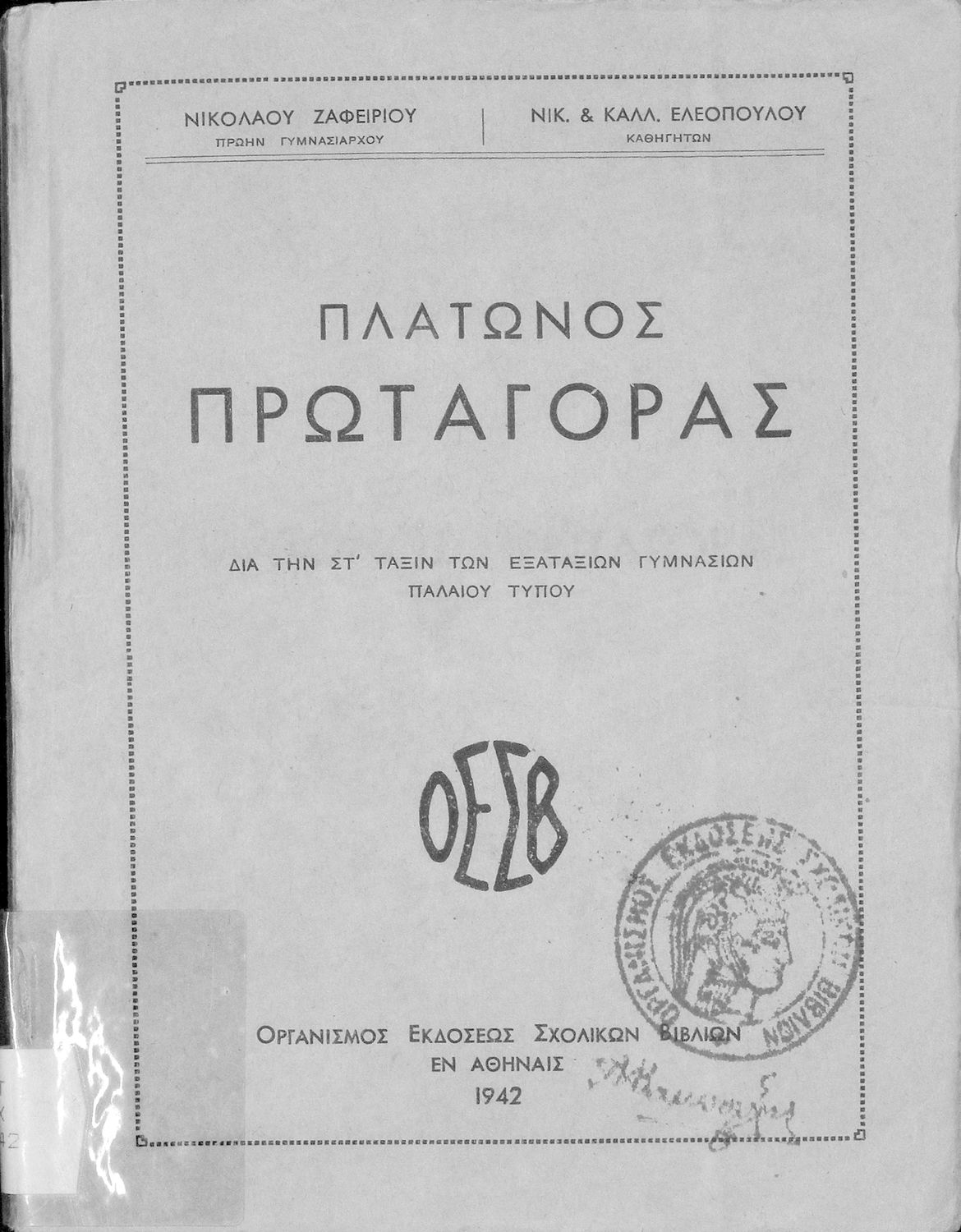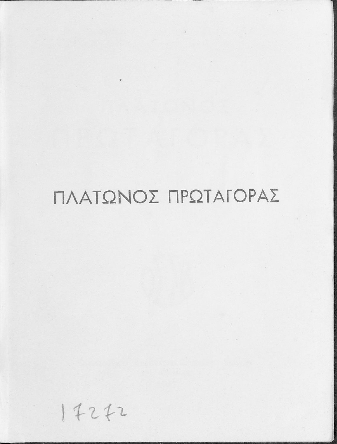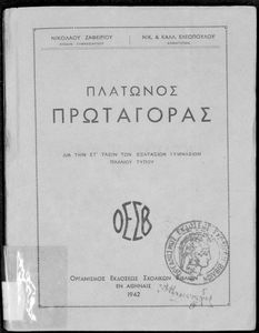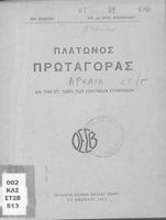 Τίτλος: Πλάτωνος Πρωταγόρας δια την ΣΤ΄ τάξιν των Εξαταξίων Γυμνασίων