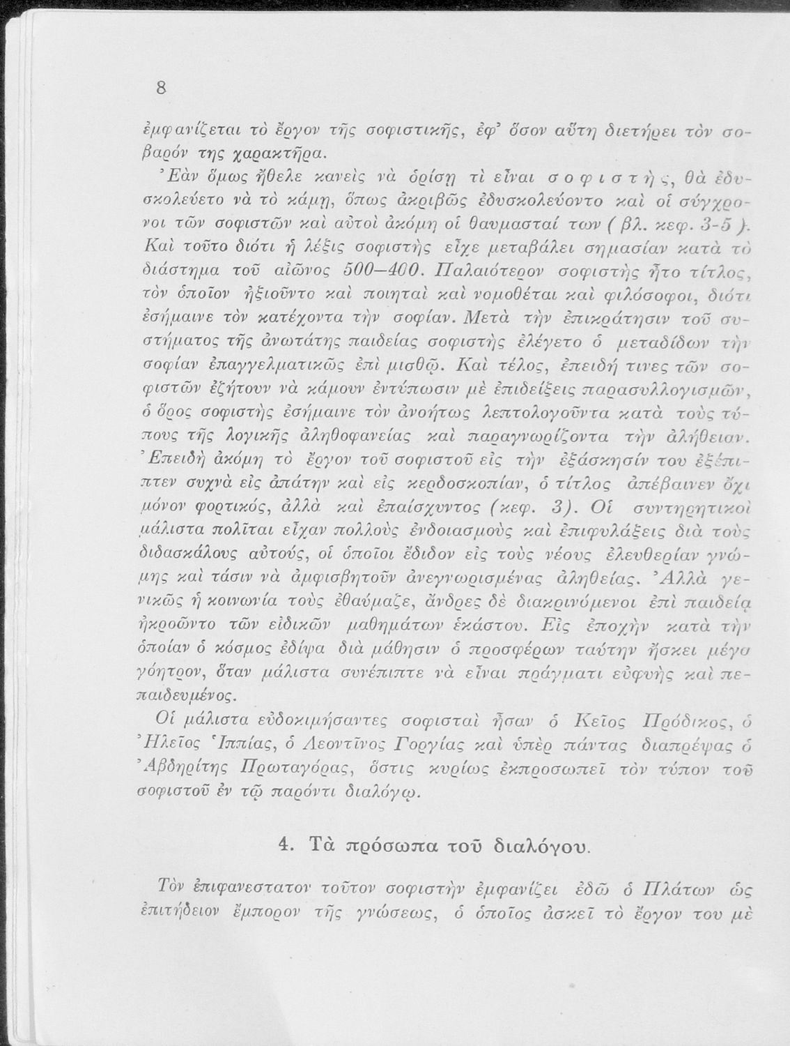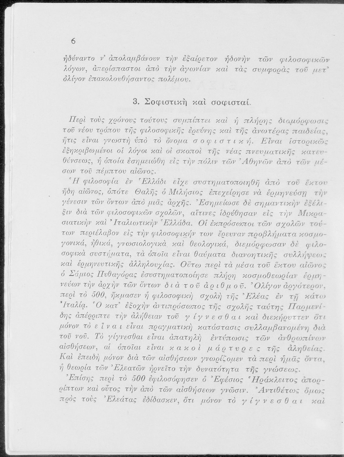 Σχολικό εγχειρίδιο Αρχαίων Ελληνικών για τη ΣΤ΄ τάξη των Εξαταξίων Γυμνασίων που περιλαμβάνει σύντομο βιογραφικό του Πλάτωνα, εισαγωγή στην προσωκρατική φιλοσοφία και στην φιλοσοφία του Πλάτωνα, αποσπάσματα ...