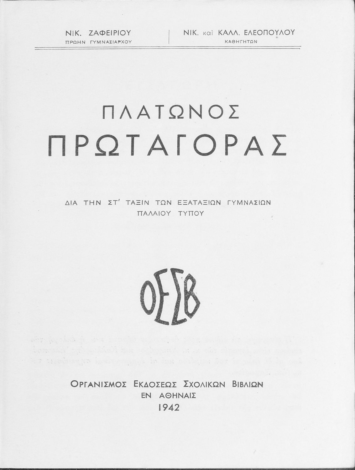Πλάτων, Νικ. Ζαφειρίου, Νικ. Ελεόπουλος, Καλλιρόη Ελεοπούλου