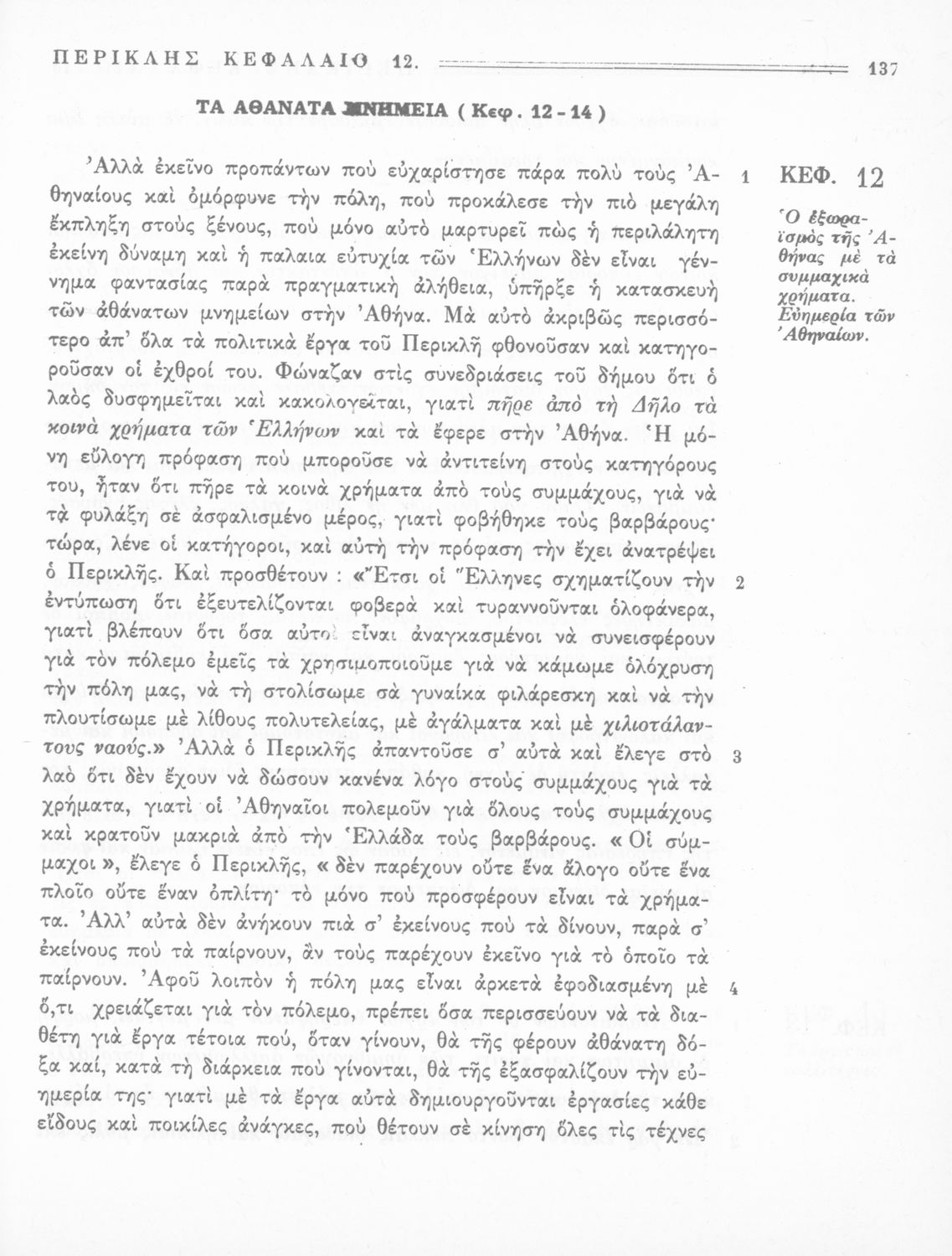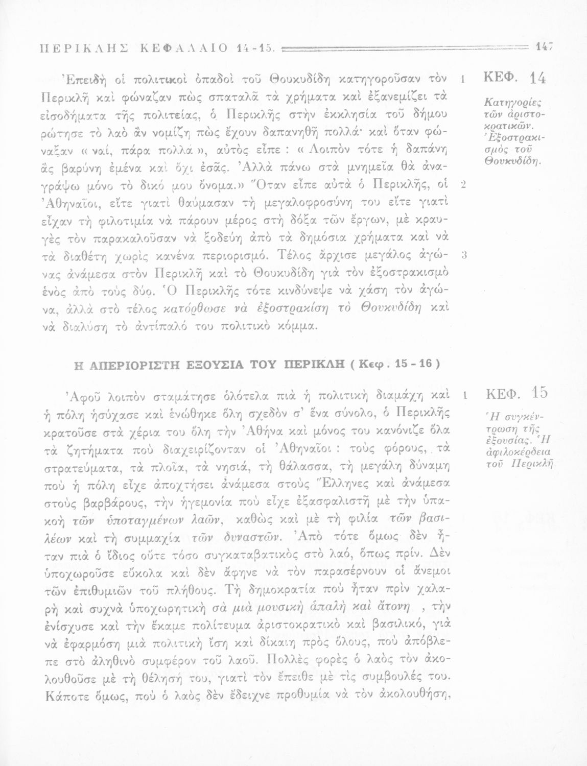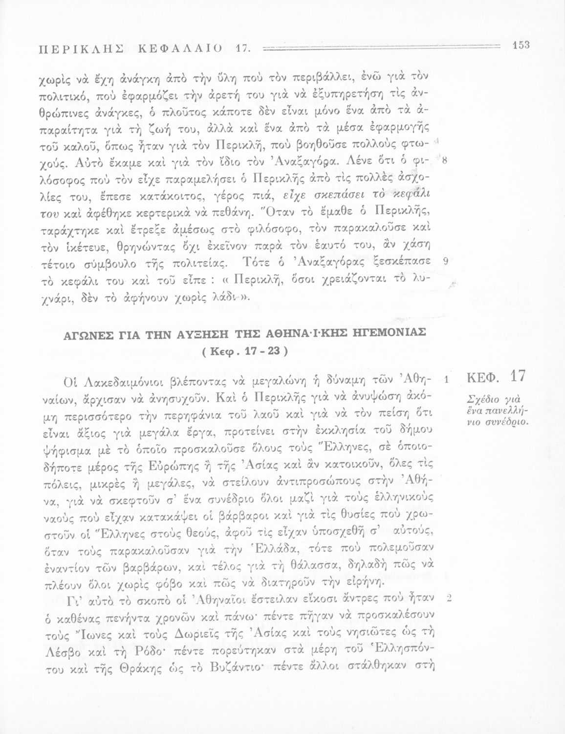 Σχολικό εγχειρίδιο Αρχαίων Ελληνικών Β΄ Γυμνασίου που περιέχει μετάφραση του έργο του Πλούταρχου Θεμιστοκλής και Περικλής, εισαγωγή και ερμηνευτικά σχόλια.