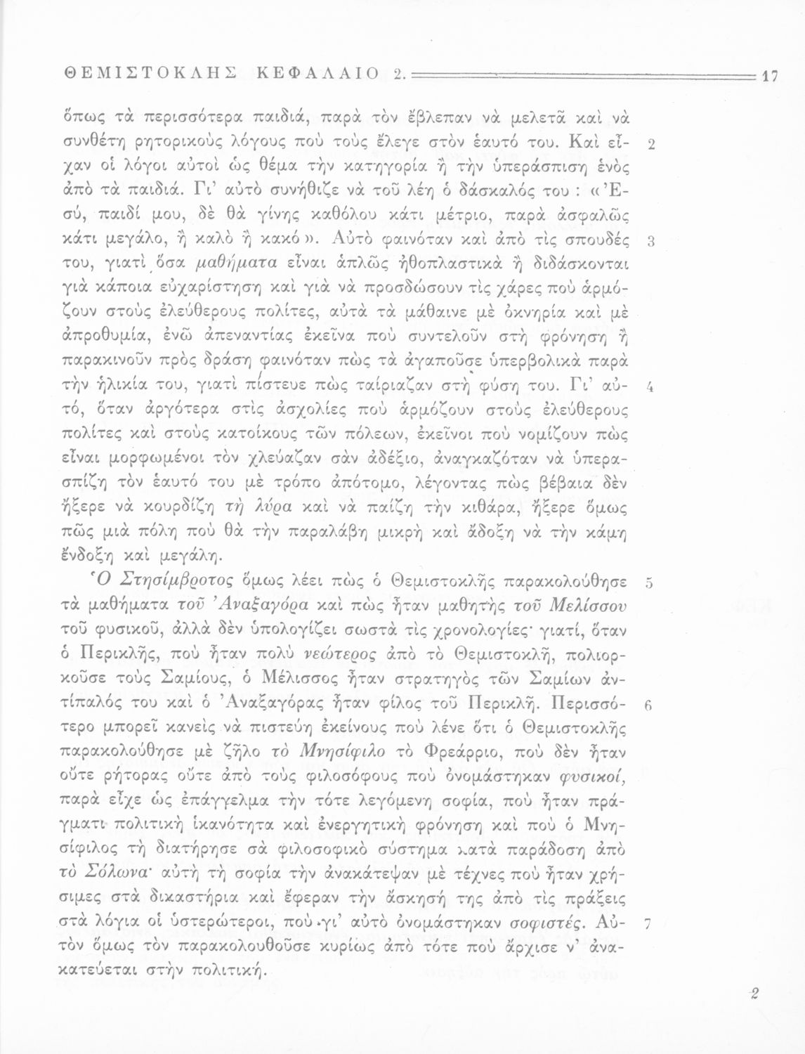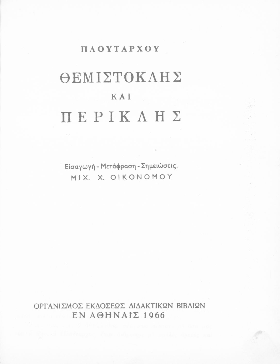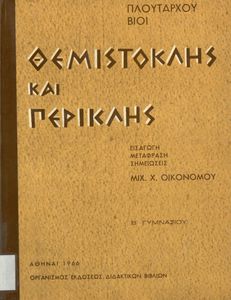 Σχολικό εγχειρίδιο Αρχαίων Ελληνικών Β΄ Γυμνασίου που περιέχει μετάφραση του έργο του Πλούταρχου Θεμιστοκλής και Περικλής, εισαγωγή και ερμηνευτικά σχόλια.