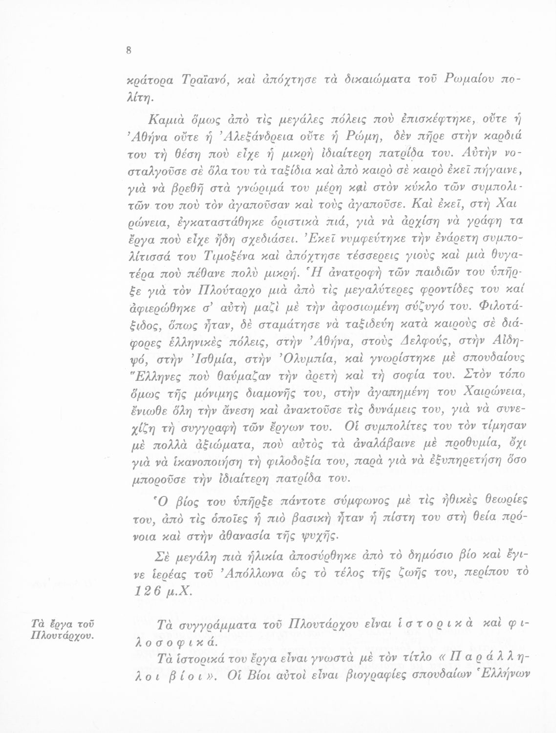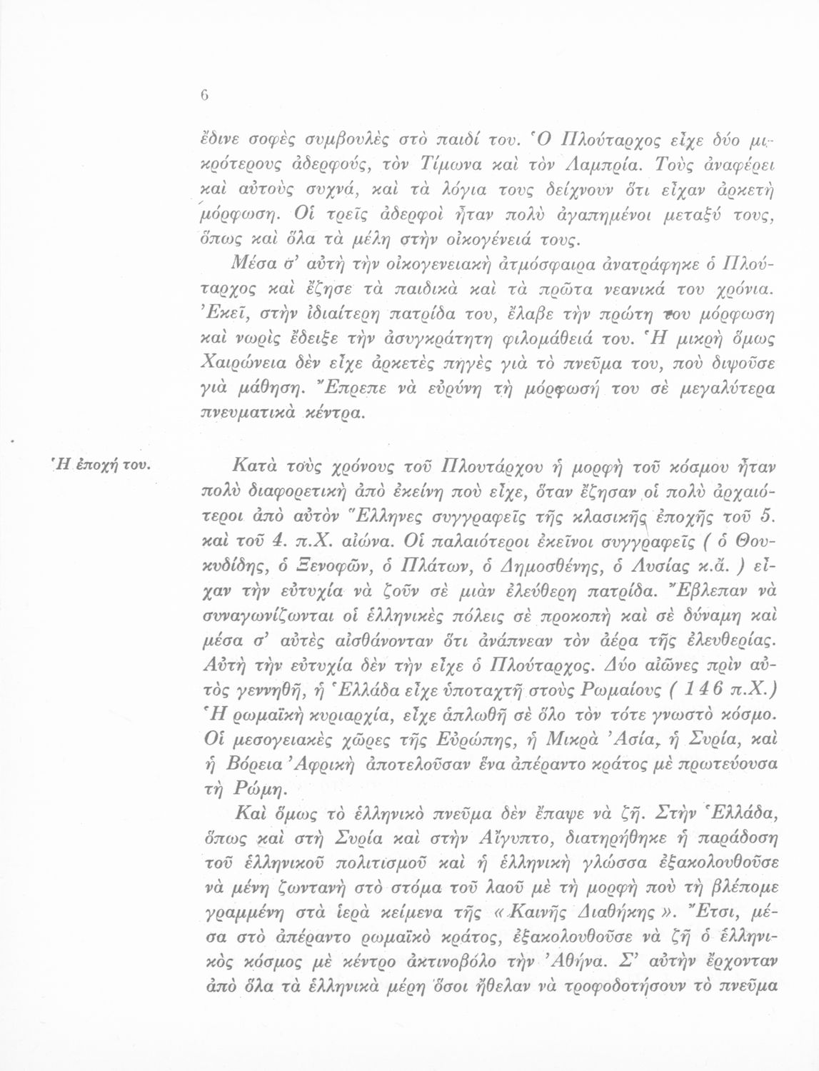 Σχολικό εγχειρίδιο Αρχαίων Ελληνικών. Αρχικά ένα εισαγωγικό σημείωμα αναφέρεται στη ζωή και το έργο του Πλουτάρχου. Ακολουθούν από το έργο του "Παράλληλοι Βίοι", σε μετάφραση, οι βιογραφίες του Σόλωνα, του ...