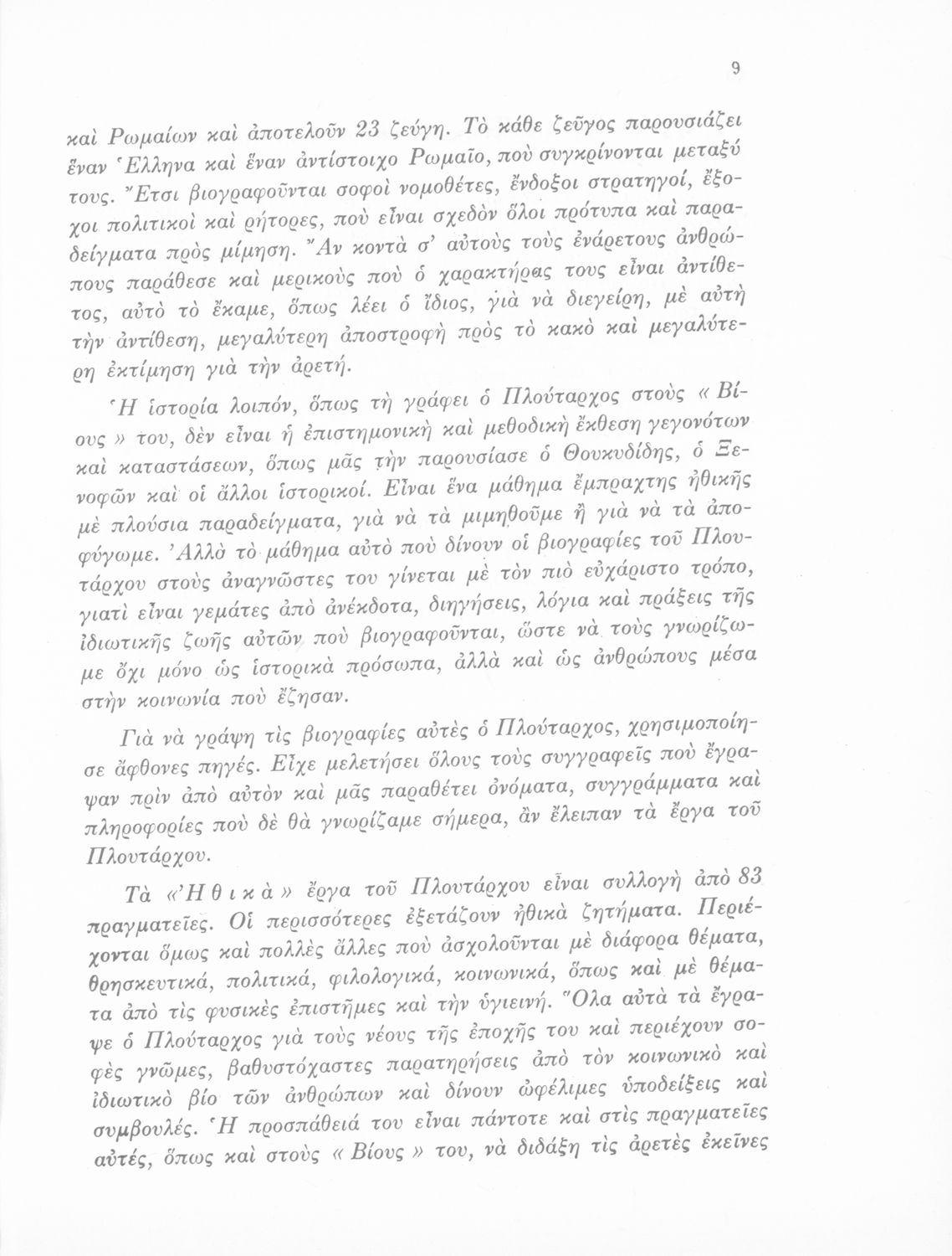 Σχολικό εγχειρίδιο Αρχαίων Ελληνικών για τις Β΄ Γυμνασίου και Γ΄ Αστικού Σχολείου που περιλαμβάνει αποσπάσματα από το έργο του Πλούταρχου Βίοι Παράλληλοι και ερμηνευτικά και πραγματολογικά σχόλια.
