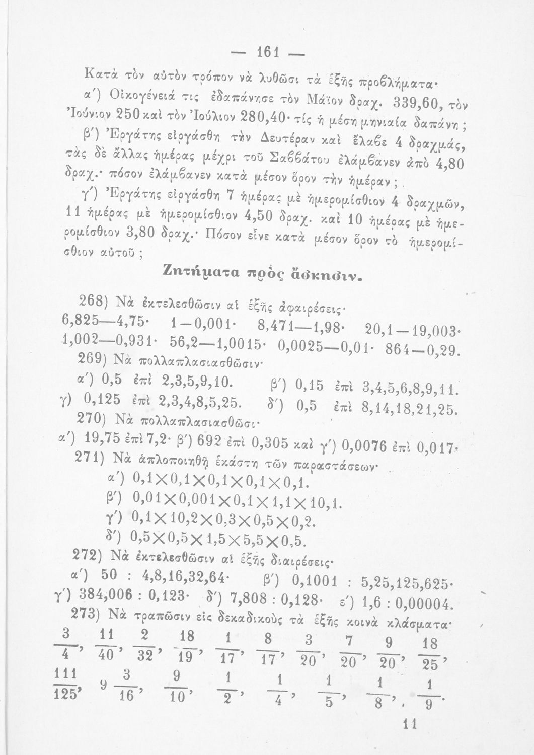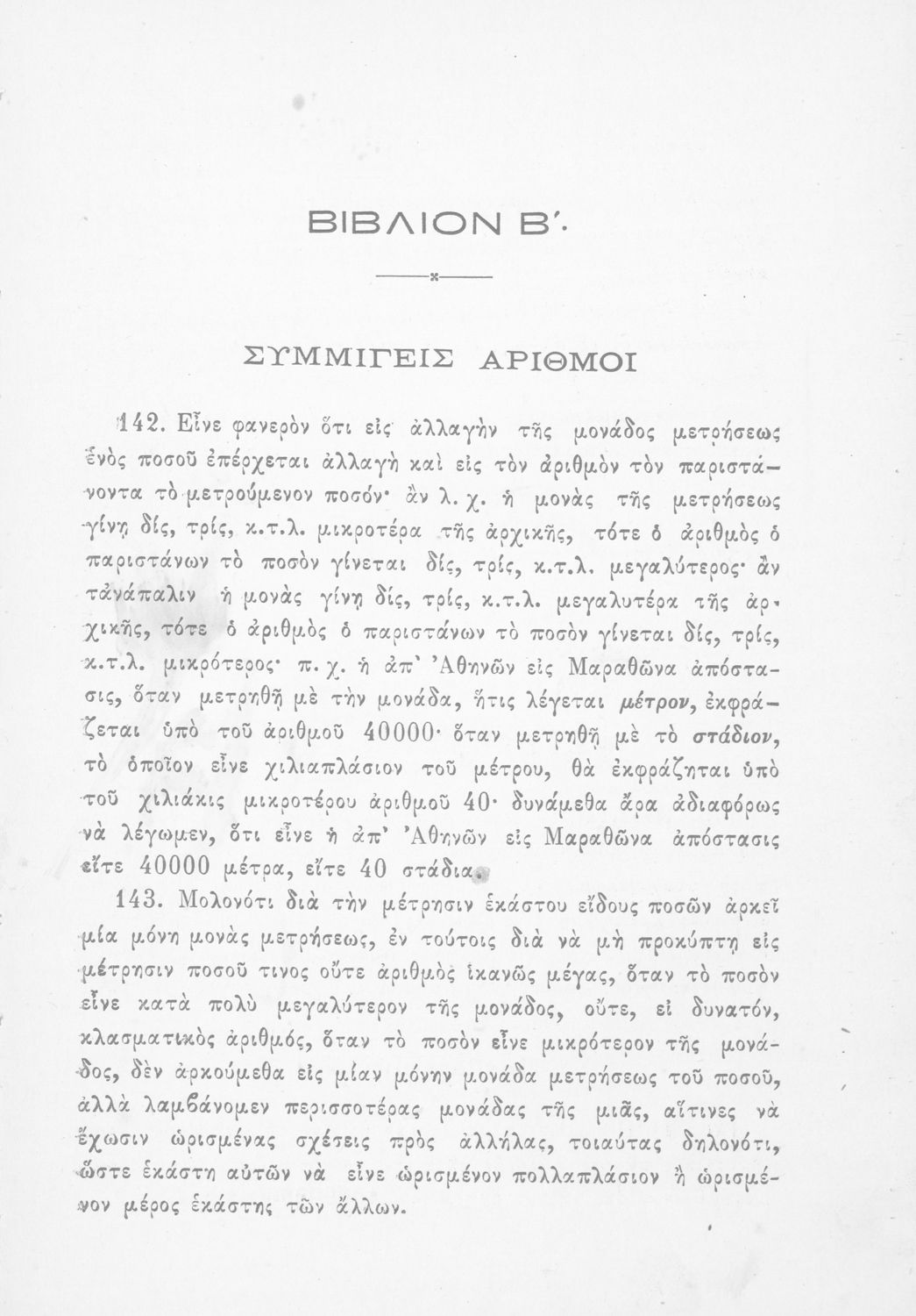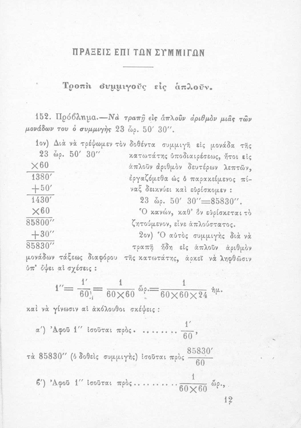 Σχολικό εγχειρίδιο Αριθμητικής για τα Ελληνικά και Αστικά Σχολεία και τα Παρθεναγωγεία που εστιάζει στις αριθμητικές πράξεις, τα κλάσματα, τους δεκαδικούς και συμμιγείς αριθμούς, και τις δυνάμεις. Περιέχει και