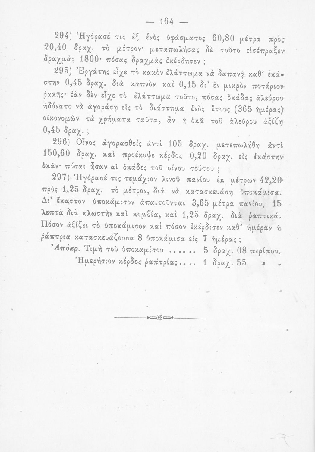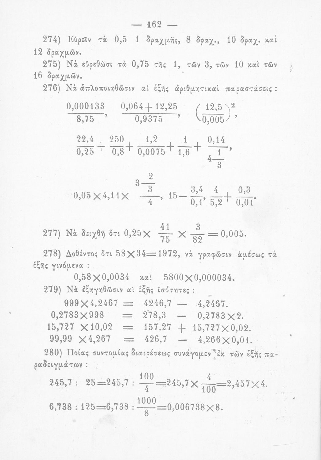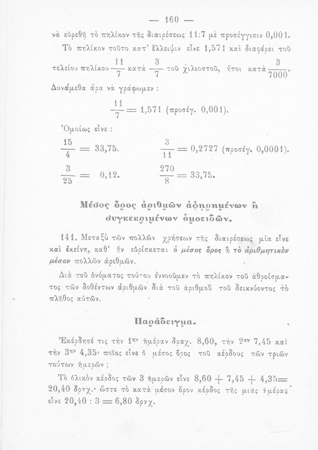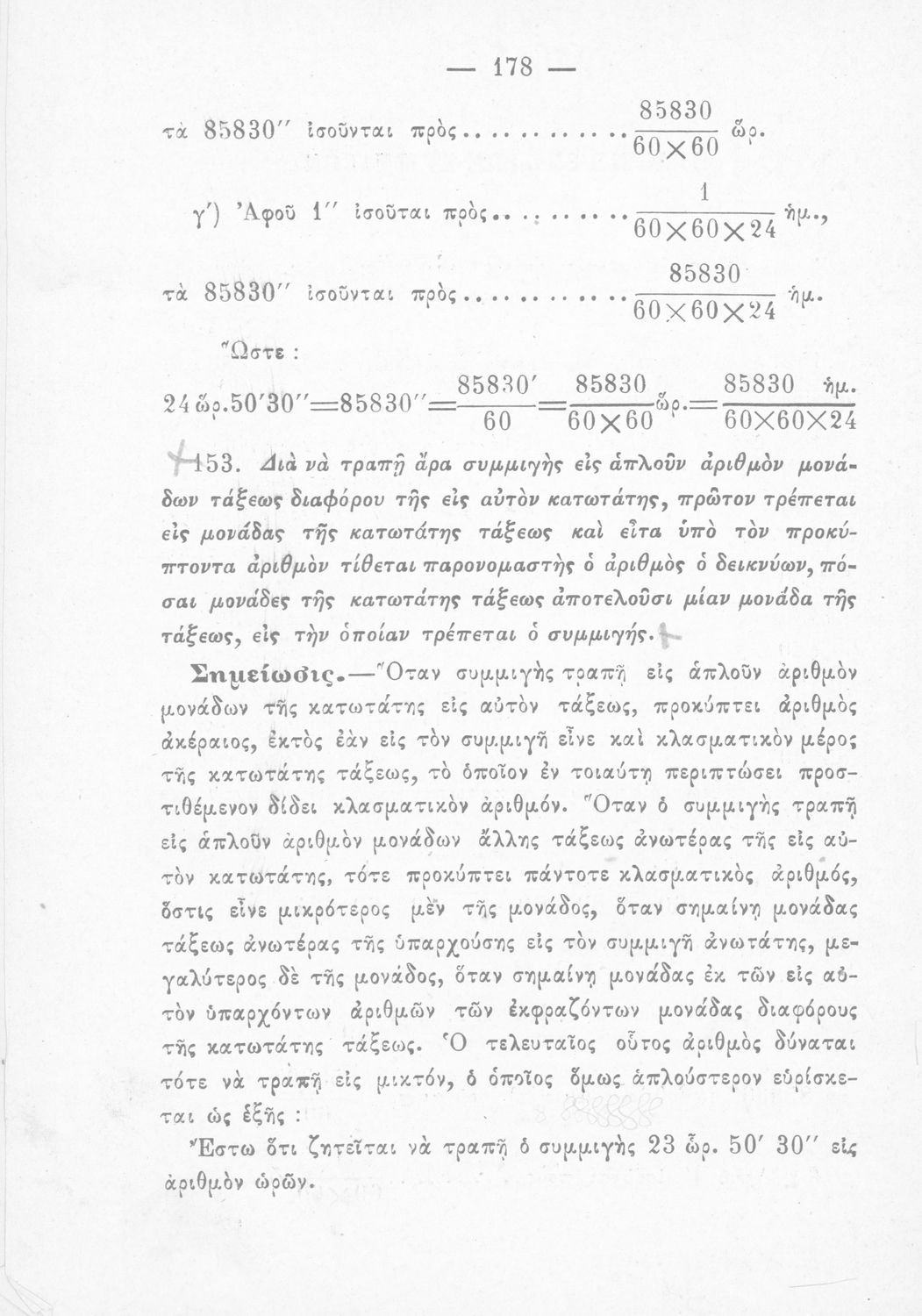 Σχολικό εγχειρίδιο Αριθμητικής για τα Ελληνικά και Αστικά Σχολεία και τα Παρθεναγωγεία που εστιάζει στις αριθμητικές πράξεις, τα κλάσματα, τους δεκαδικούς και συμμιγείς αριθμούς, και τις δυνάμεις. Περιέχει και