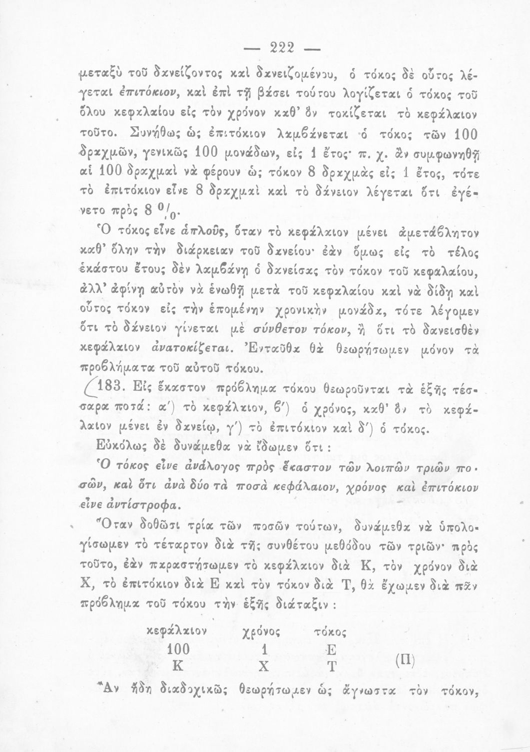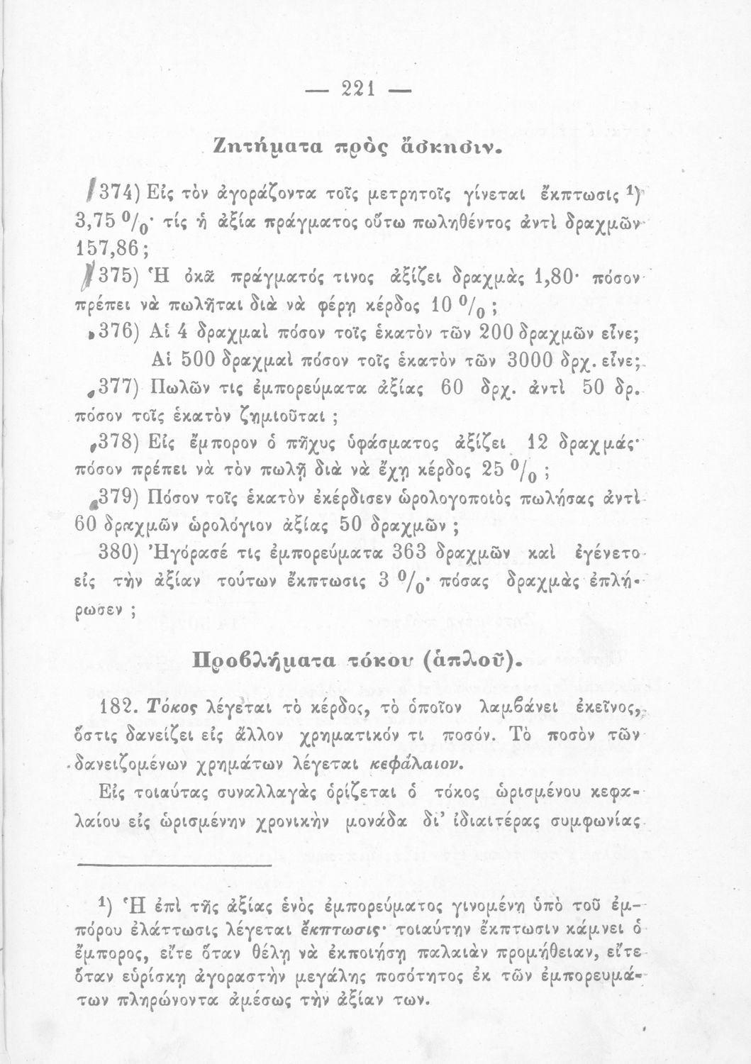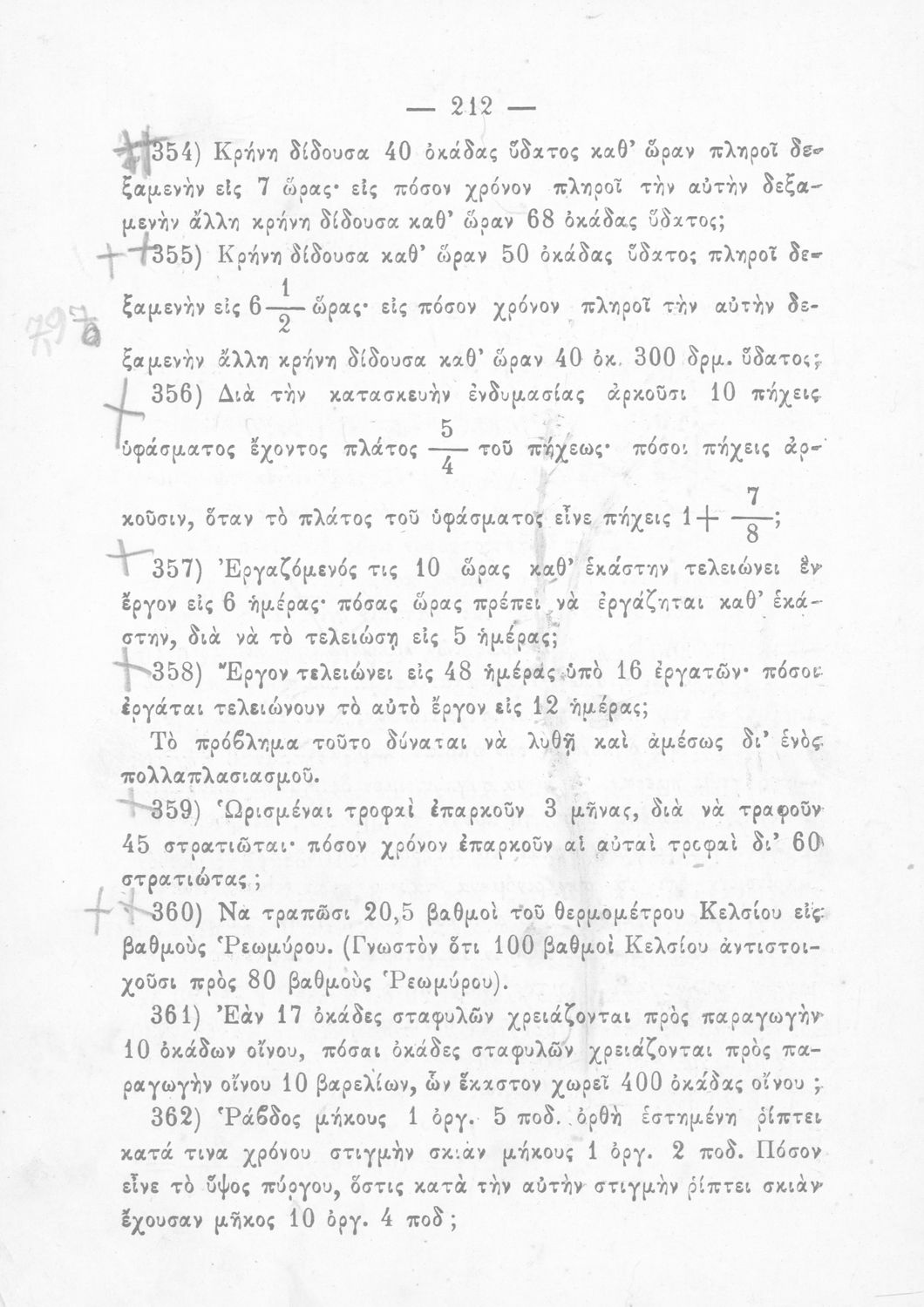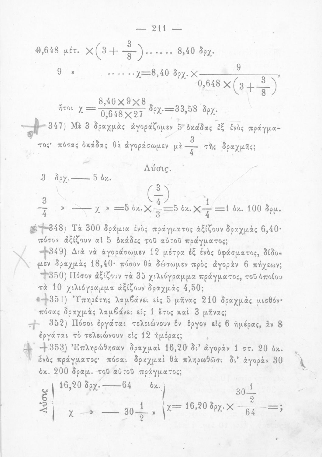 Σχολικό εγχειρίδιο Αριθμητικής για τα Ελληνικά και Αστικά Σχολεία και τα Παρθεναγωγεία που εστιάζει στις αριθμητικές πράξεις, τα κλάσματα, τους δεκαδικούς και συμμιγείς αριθμούς, και τις δυνάμεις. Περιέχει και