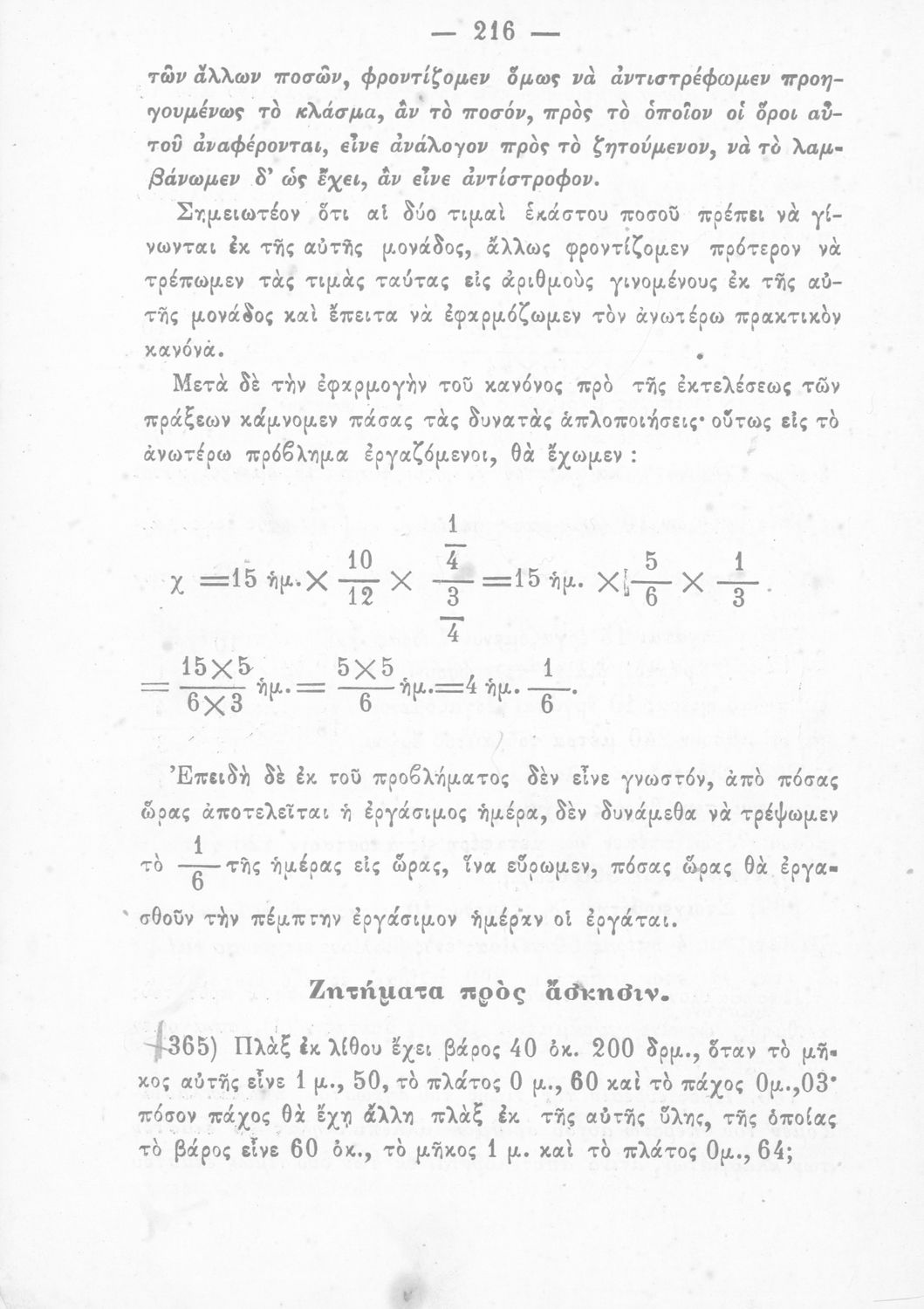 Σχολικό εγχειρίδιο Αριθμητικής για τα Ελληνικά και Αστικά Σχολεία και τα Παρθεναγωγεία που εστιάζει στις αριθμητικές πράξεις, τα κλάσματα, τους δεκαδικούς και συμμιγείς αριθμούς, τα ανάλογα ποσά και τις ...