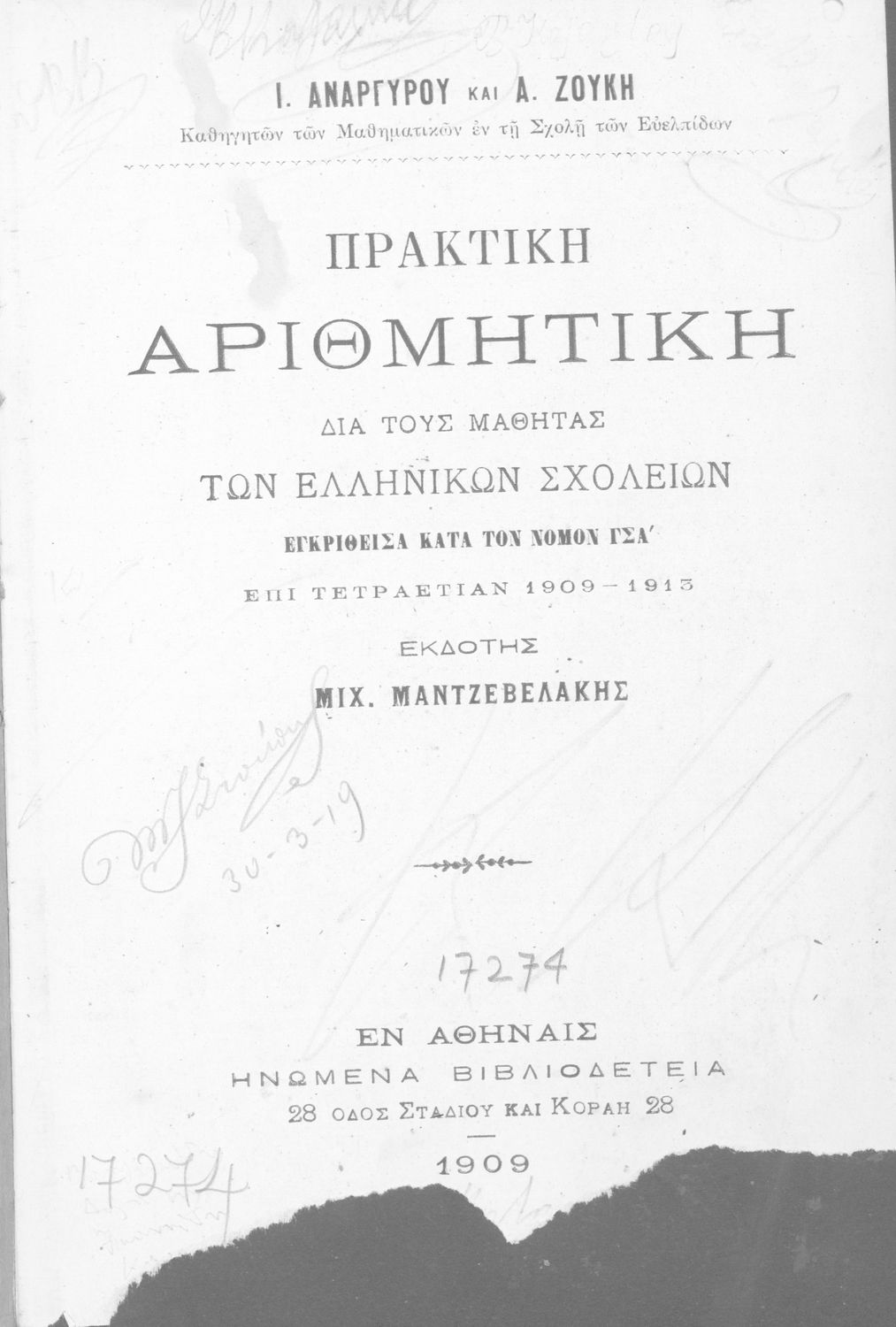 Πρακτική αριθμητική δια τους μαθητάς των Ελληνικών Σχολείων