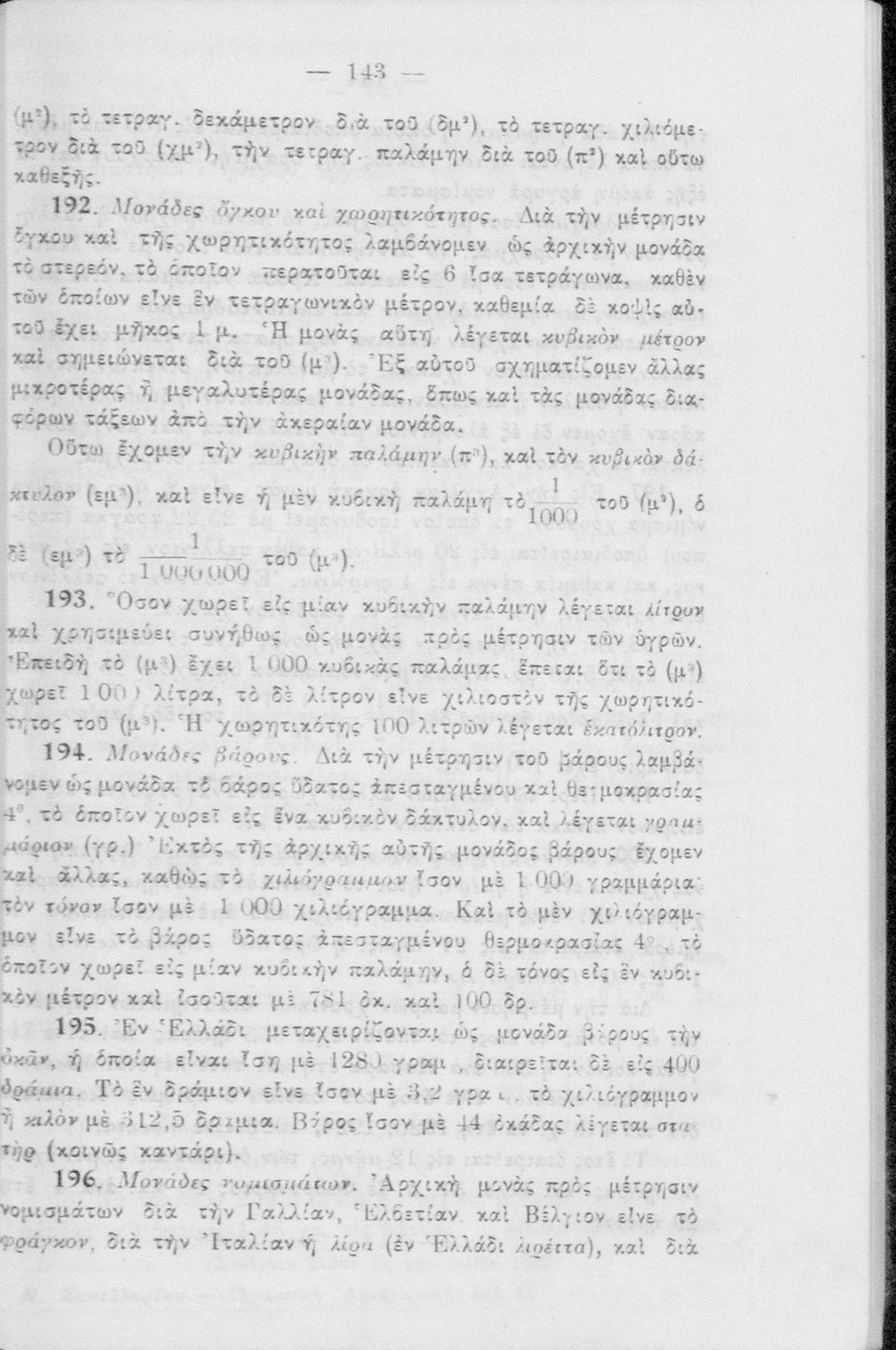 Σχολικό εγχειρίδιο Γεωμετρίας Γυμνασίων και Αστικών Σχολείων χωρισμένο σε Επιπεδομετρία και Στερεομετρία. Περιλαμβάνει και στοιχεία Χωρομετρίας.
