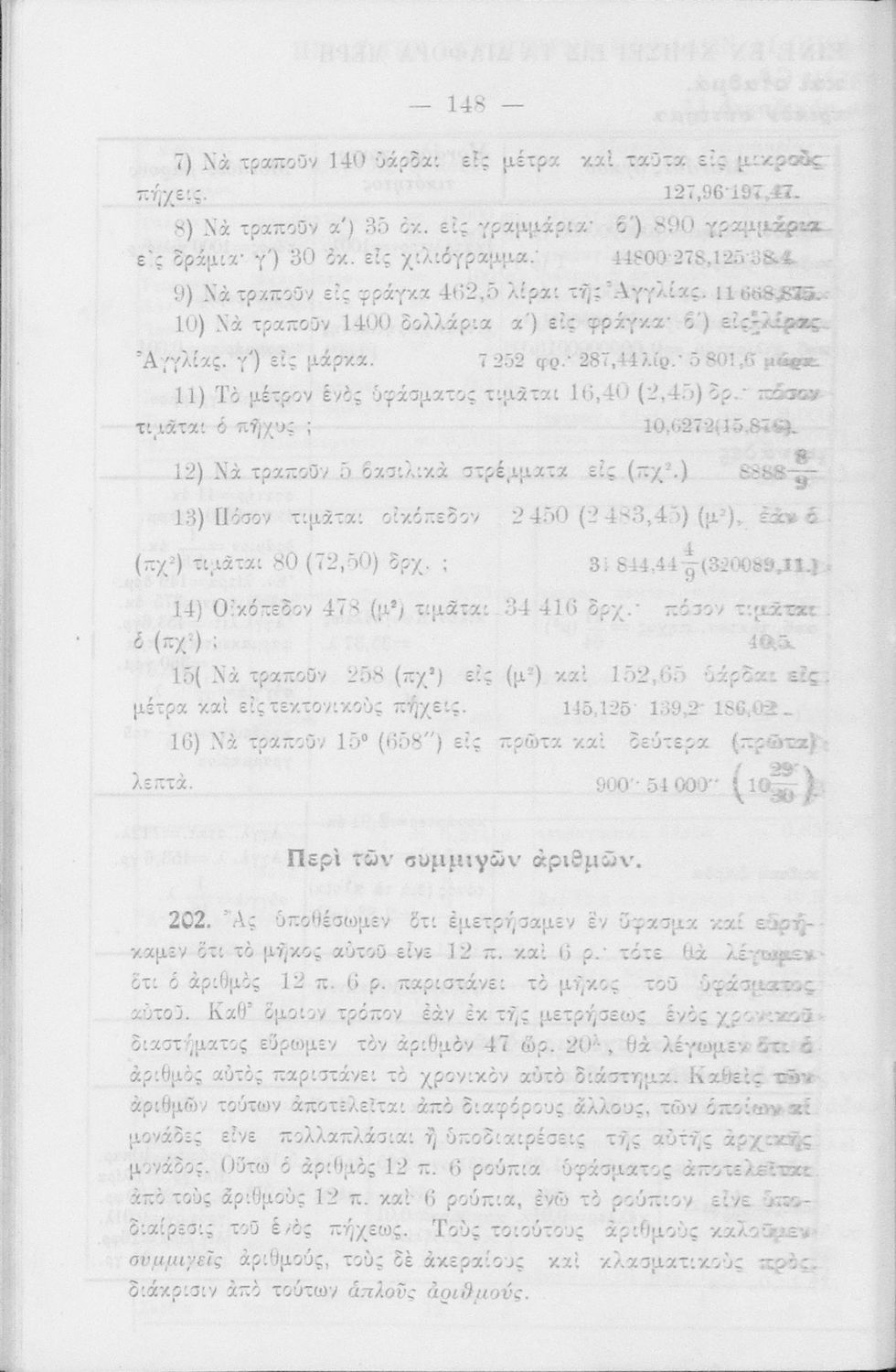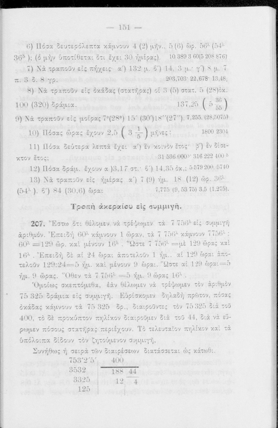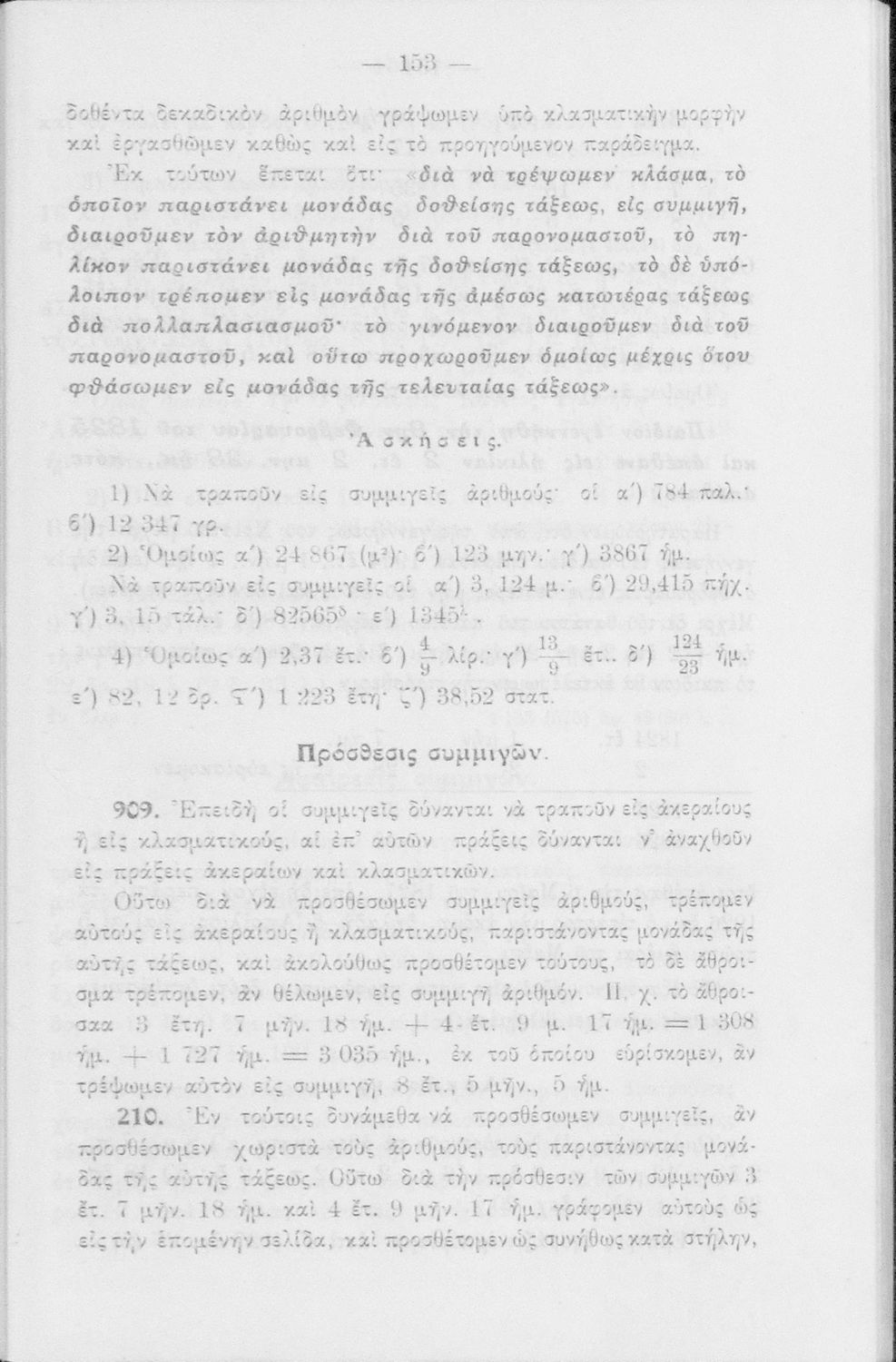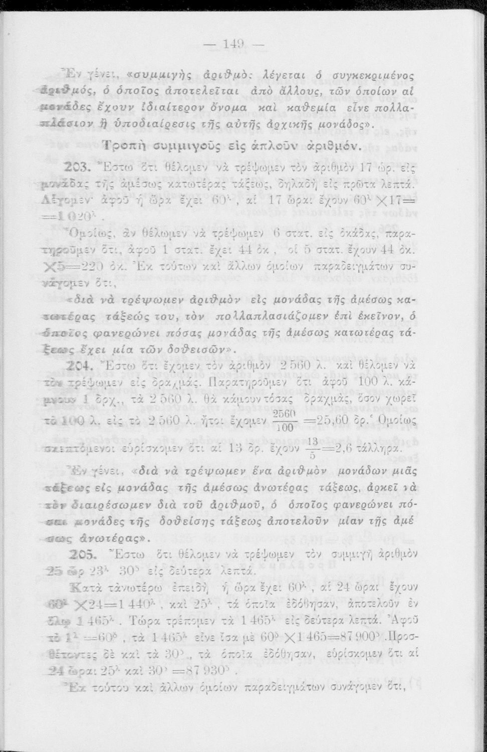 Παρουσίαση περιεχομένου: Σχολικό εγχειρίδιο Αριθμητικής για τα Ημιγυμνάσια και Γυμνάσια χωρισμένο σε θεωρία και ασκήσεις. Περιλαμβάνει και στοιχεία λογιστικής και καταστιχογραφίας. Ο συγγραφέας ήταν καθηγητής στο Πανεπιστήμιο Αθηνών.