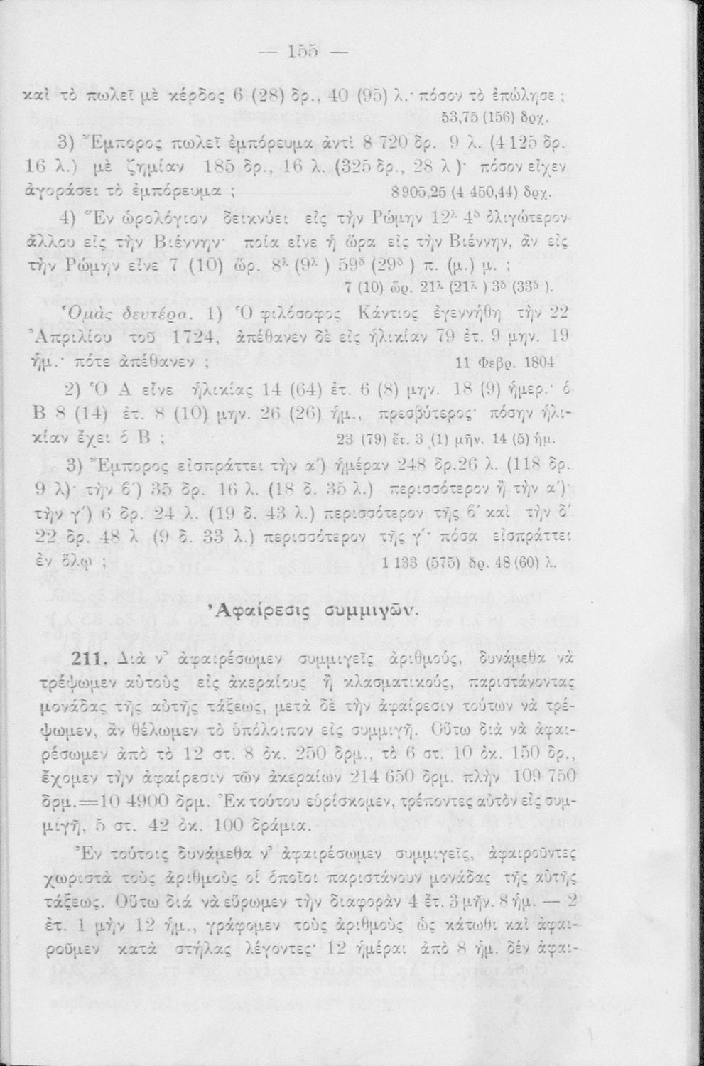 Σχολικό εγχειρίδιο Αριθμητικής για τα Γυμνάσια και τα Αστικά σχολεία που είναι χωρισμένο σε θεωρία και ασκήσεις με έντονο επιχειρηματικό προσανατολισμό. Περιλαμβάνει στοιχεία Θεωρητικής Αριθμητικής.