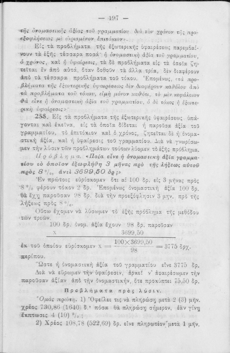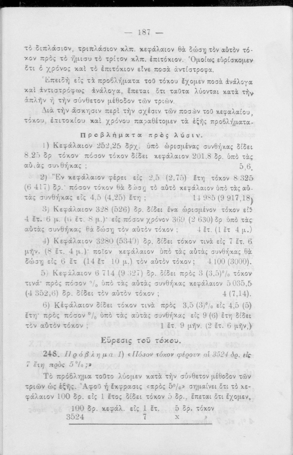 Σχολικό εγχειρίδιο Αριθμητικής για τα Γυμνάσια και τα Αστικά σχολεία που είναι χωρισμένο σε θεωρία και ασκήσεις με έντονο επιχειρηματικό προσανατολισμό. Περιλαμβάνει στοιχεία Θεωρητικής Αριθμητικής.
