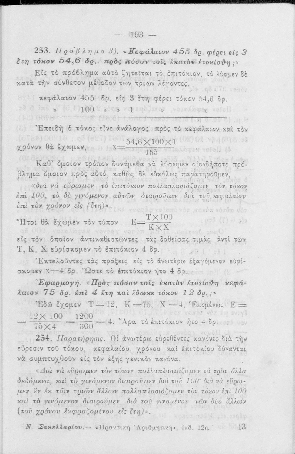 Σχολικό εγχειρίδιο Αριθμητικής για τα Ημιγυμνάσια και Γυμνάσια χωρισμένο σε θεωρία και ασκήσεις. Περιλαμβάνει και στοιχεία λογιστικής και καταστιχογραφίας. Ο συγγραφέας ήταν καθηγητής στο Πανεπιστήμιο Αθηνών.