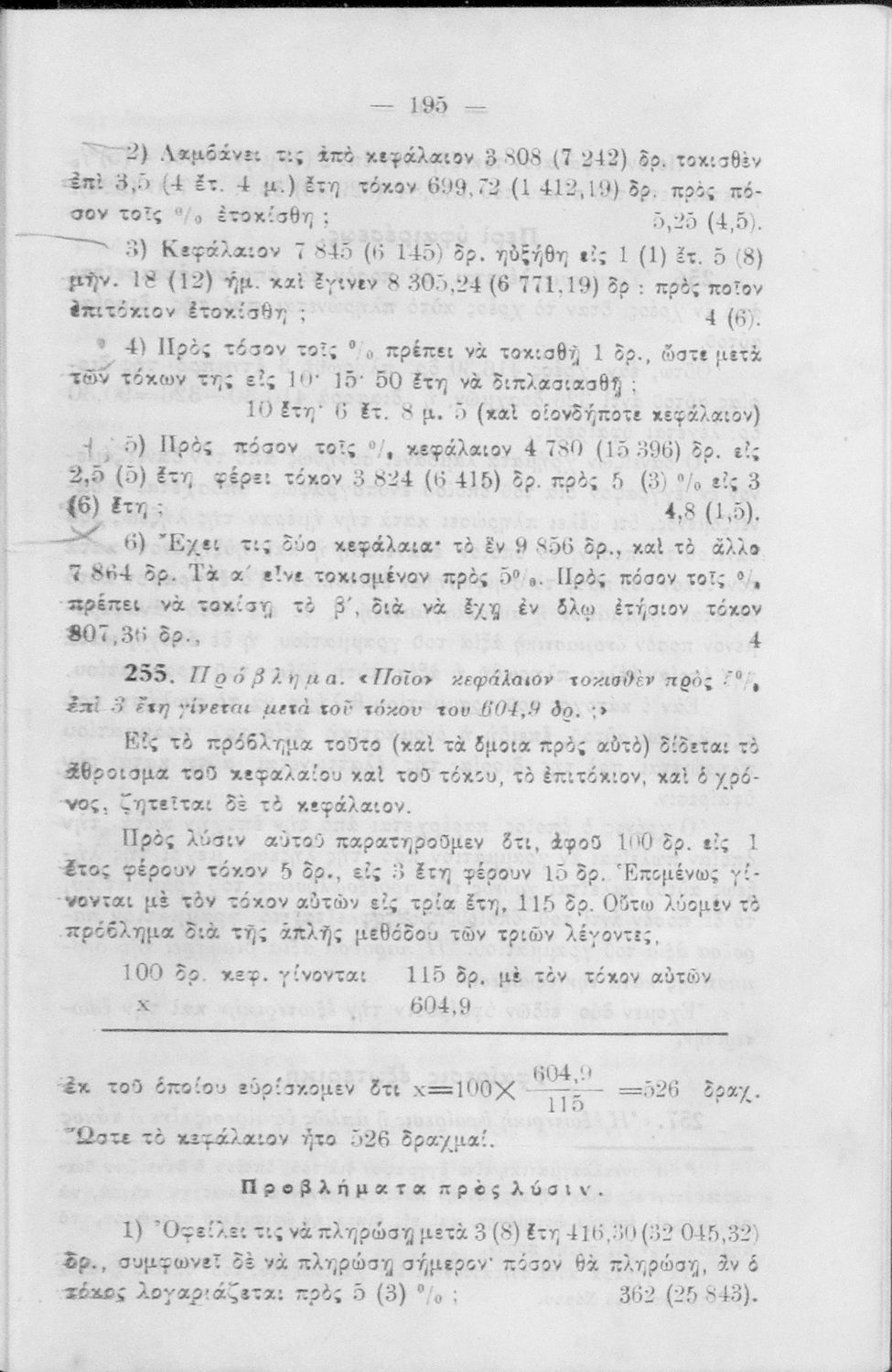 Σχολικό εγχειρίδιο Αριθμητικής για τα Γυμνάσια και Αστικά Σχολεία που είναι χωρισμένο σε θεωρία και ασκήσεις με έντονο επιχειρηματικό προσανατολισμό. Περιλαμβάνει στοιχεία Θεωρητικής Αριθμητικής.