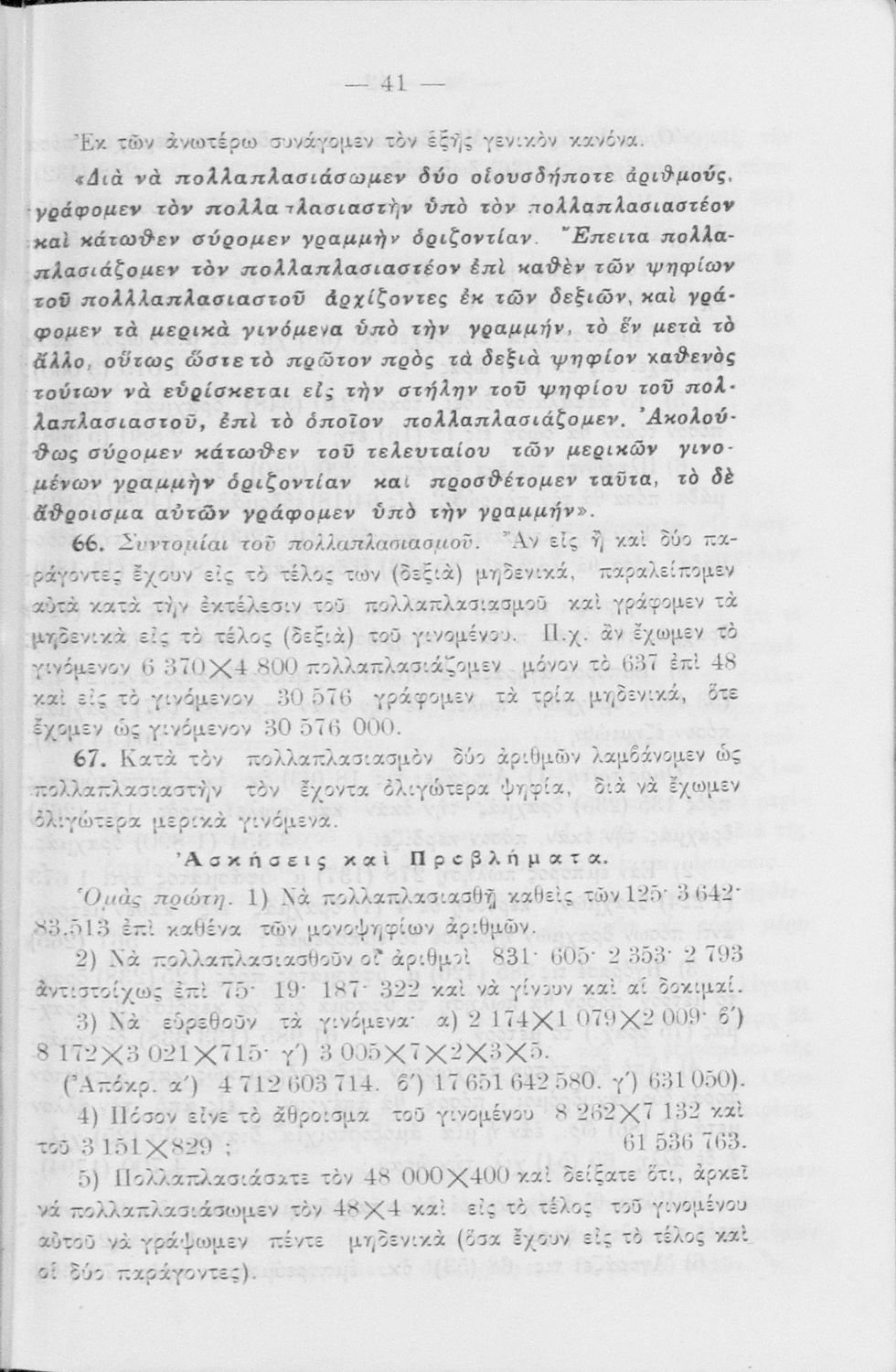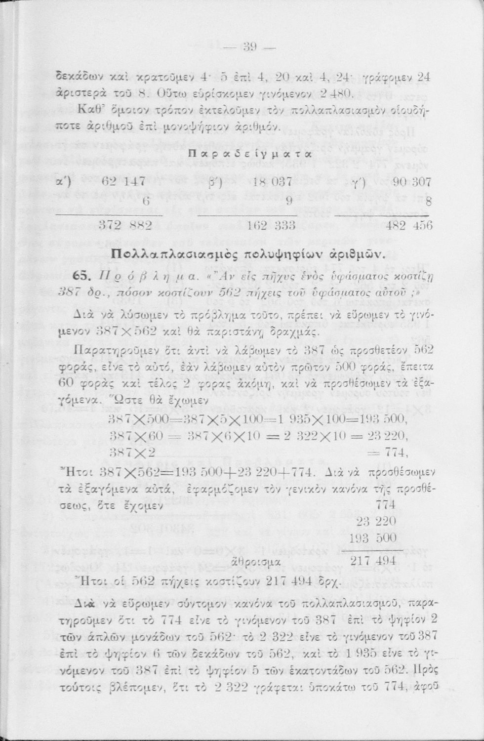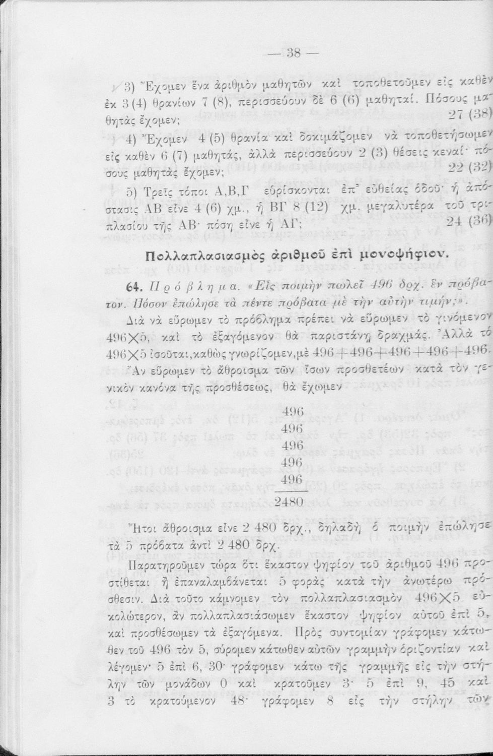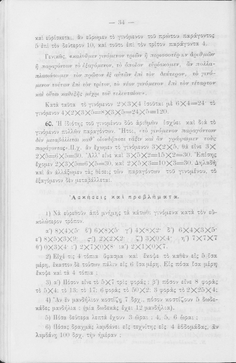 Σχολικό εγχειρίδιο Αριθμητικής για τα Γυμνάσια και τα Αστικά σχολεία που είναι χωρισμένο σε θεωρία και ασκήσεις με έντονο επιχειρηματικό προσανατολισμό. Περιλαμβάνει στοιχεία Θεωρητικής Αριθμητικής.