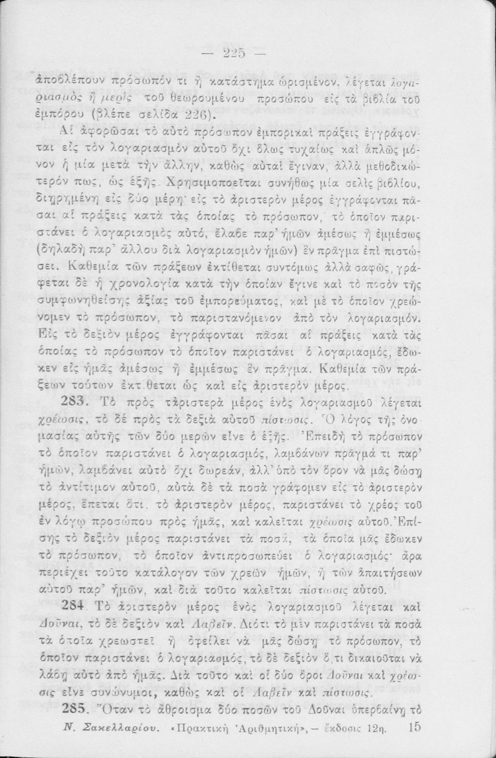 Σχολικό εγχειρίδιο Αριθμητικής για τα Ημιγυμνάσια και Γυμνάσια χωρισμένο σε θεωρία και ασκήσεις. Περιλαμβάνει και στοιχεία λογιστικής και καταστιχογραφίας. Ο συγγραφέας ήταν καθηγητής στο Πανεπιστήμιο Αθηνών.