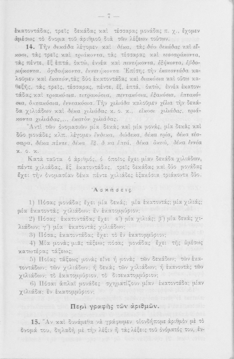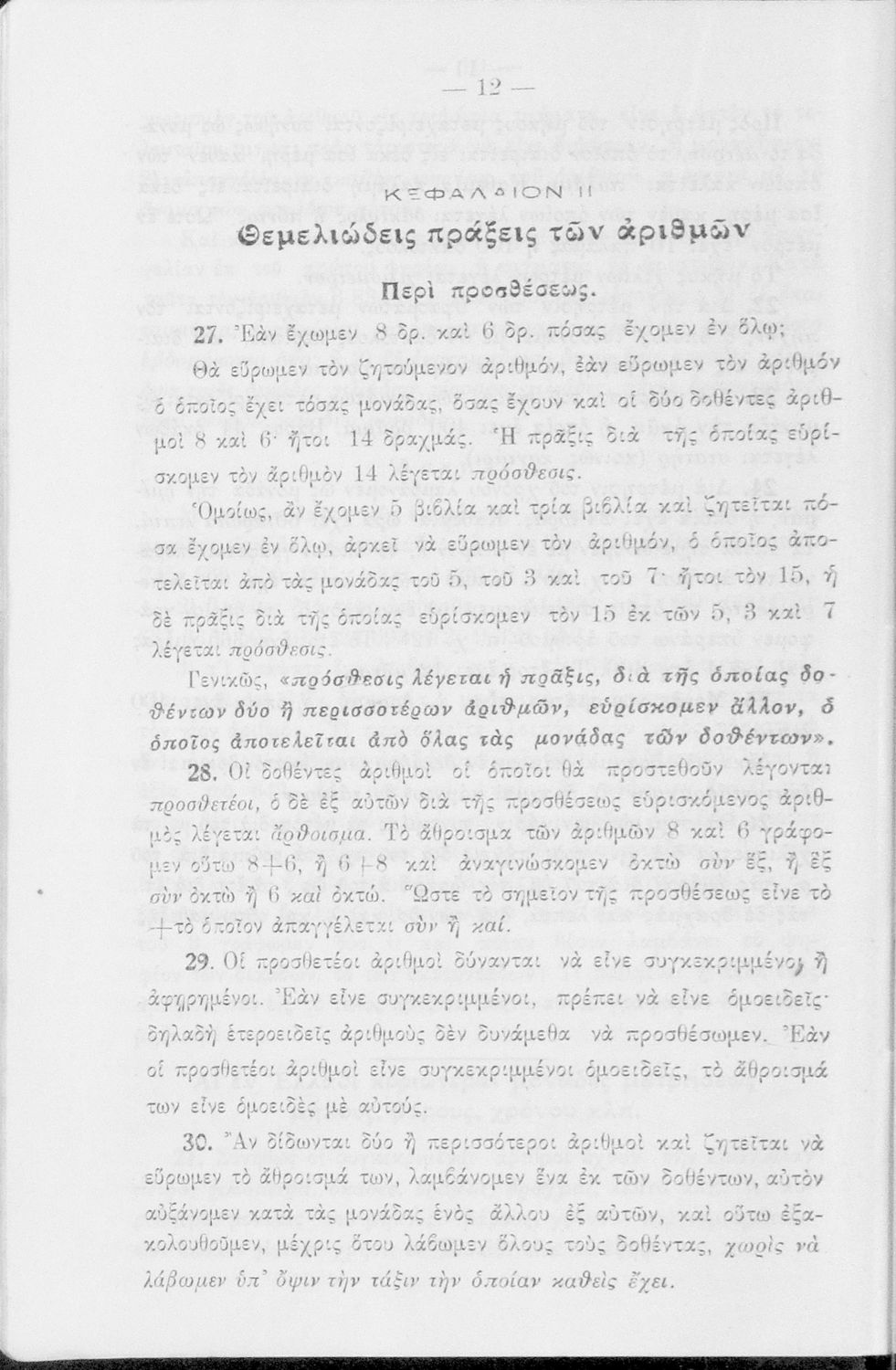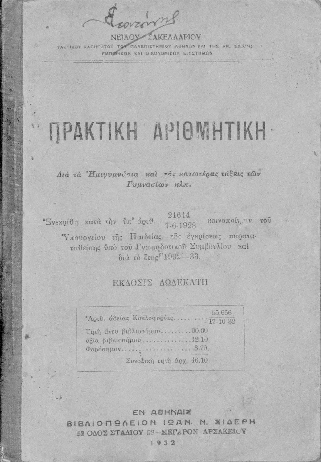 Σχολικό εγχειρίδιο Αριθμητικής για τα Γυμνάσια και τα Αστικά σχολεία που είναι χωρισμένο σε θεωρία και ασκήσεις με έντονο επιχειρηματικό προσανατολισμό. Περιλαμβάνει στοιχεία Θεωρητικής Αριθμητικής.