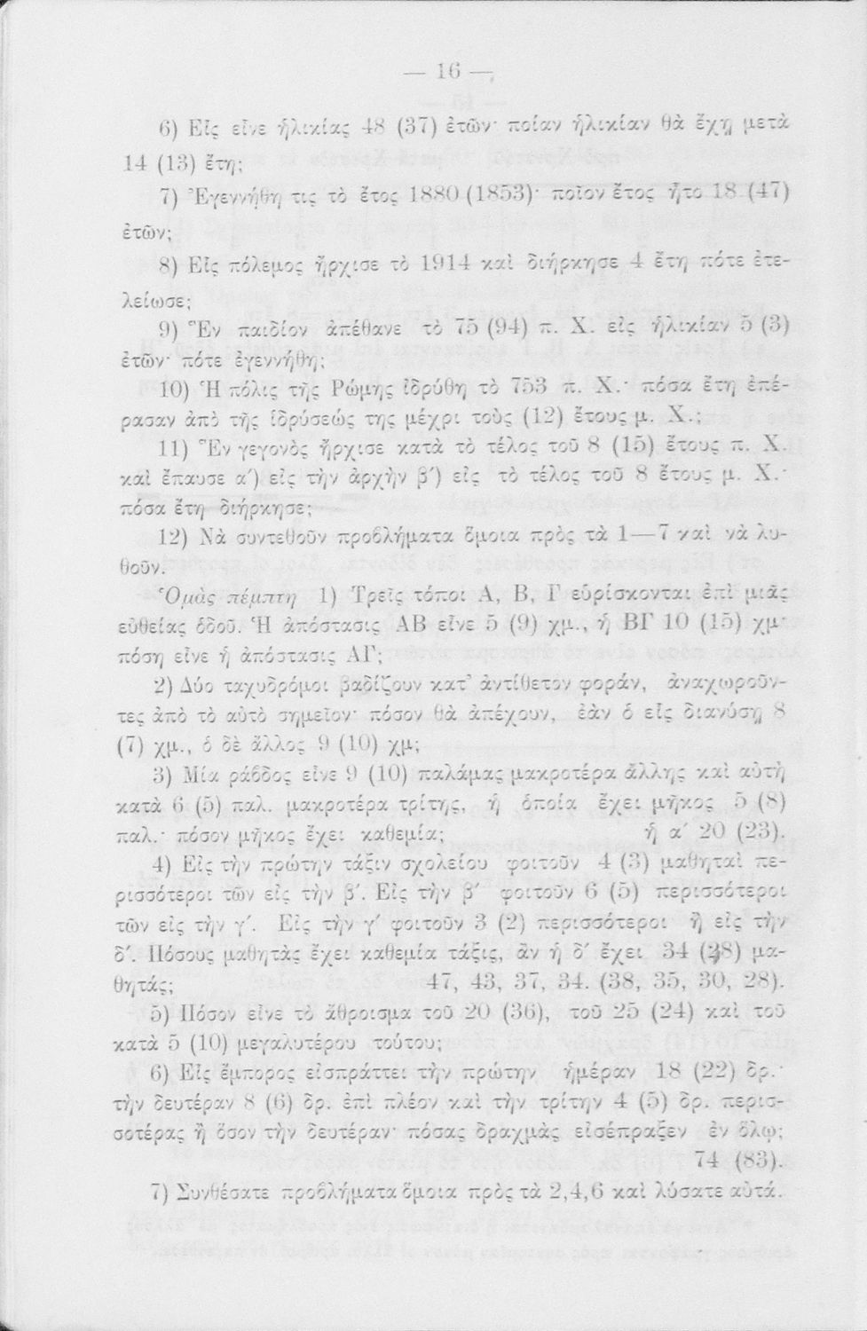 Τάξη:  Οκτατάξιο Γυμνάσιο / Πεντατάξιο Προγυμνάσιο / Αστικό Σχολείο