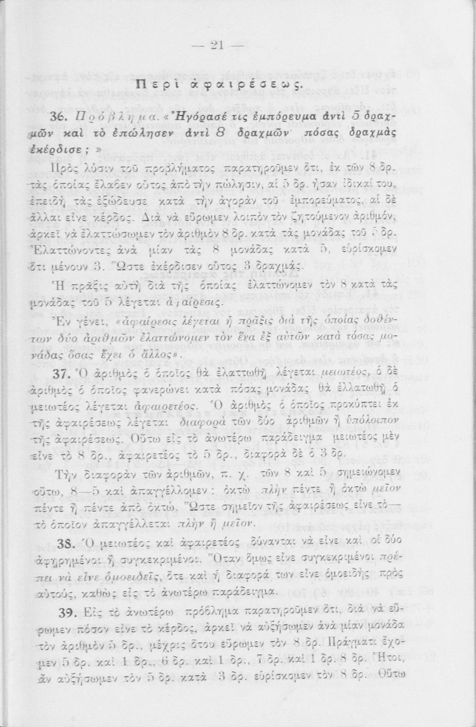 Σχολικό εγχειρίδιο Αριθμητικής για τα Γυμνάσια και Αστικά Σχολεία που είναι χωρισμένο σε θεωρία και ασκήσεις με έντονο επιχειρηματικό προσανατολισμό. Περιλαμβάνει στοιχεία Θεωρητικής Αριθμητικής.