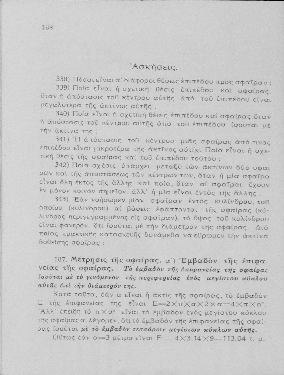 Σχολικό εγχειρίδιο Γεωμετρίας Γυμνασίων και Αστικών Σχολείων χωρισμένο σε Επιπεδομετρία και Στερεομετρία. Περιλαμβάνει και στοιχεία Χωρομετρίας.
