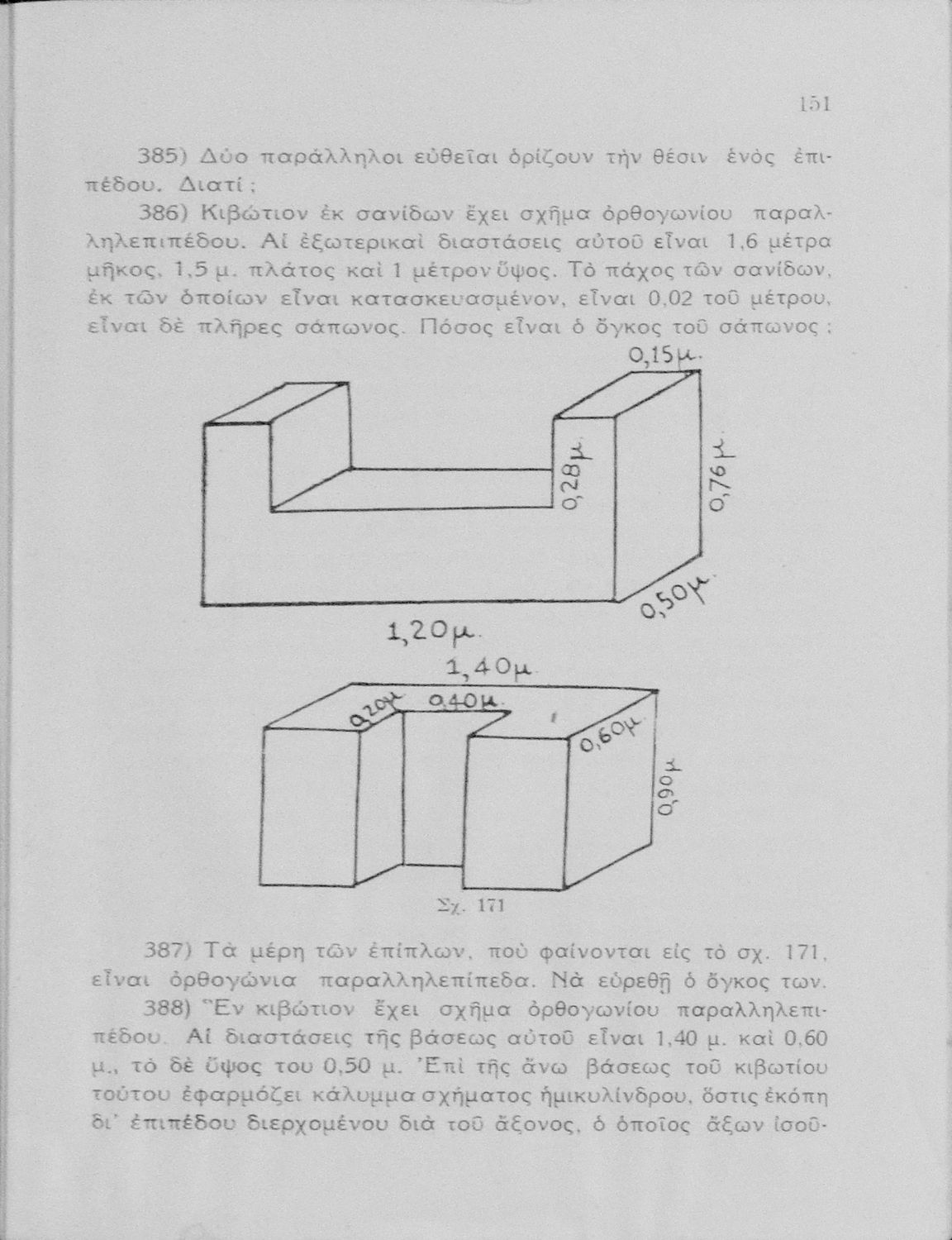 Σχολικό εγχειρίδιο Γεωμετρίας για τα Γυμνάσια και Αστικά Σχολεία που περιλαμβάνει θεωρία και ασκήσεις και είναι χωρισμένο σε Επιπεδομετρία και Στερεομετρία.